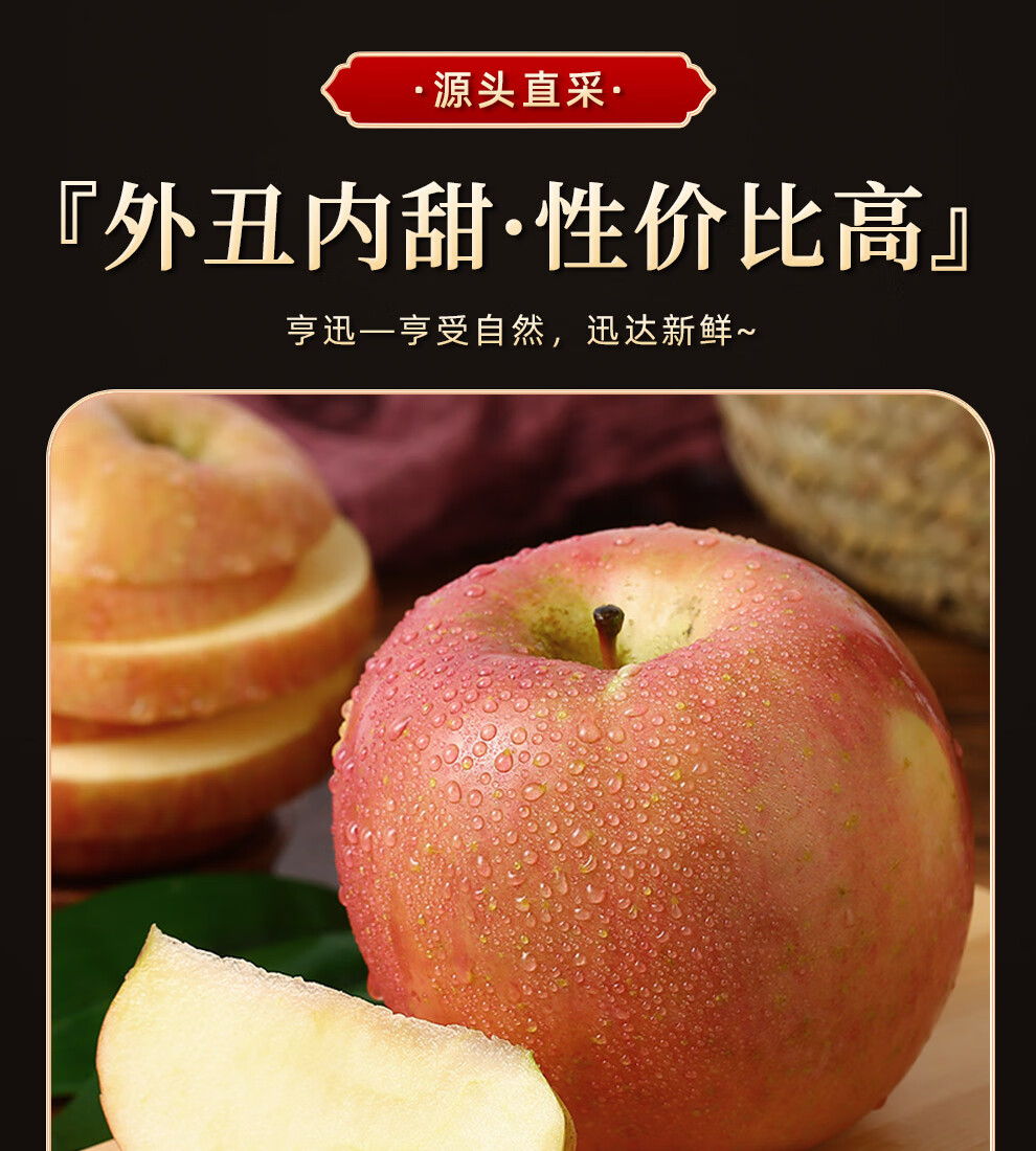 Hengxun Shaanxi Red Fuji Apple Fruit Crispy Sweet Ugly Apple Flat Fruit Rock Candy Heart Apple Fresh Fruit Fresh 5kg Preferred Pack Net Weight 4.5kg