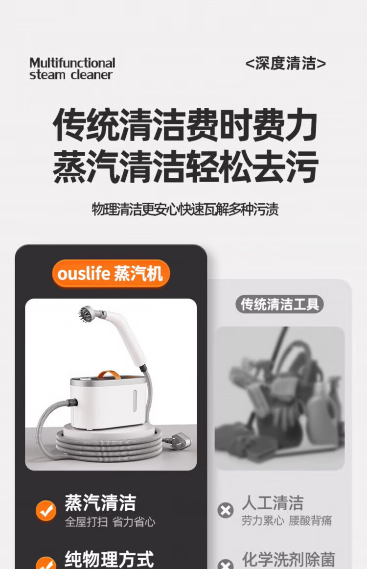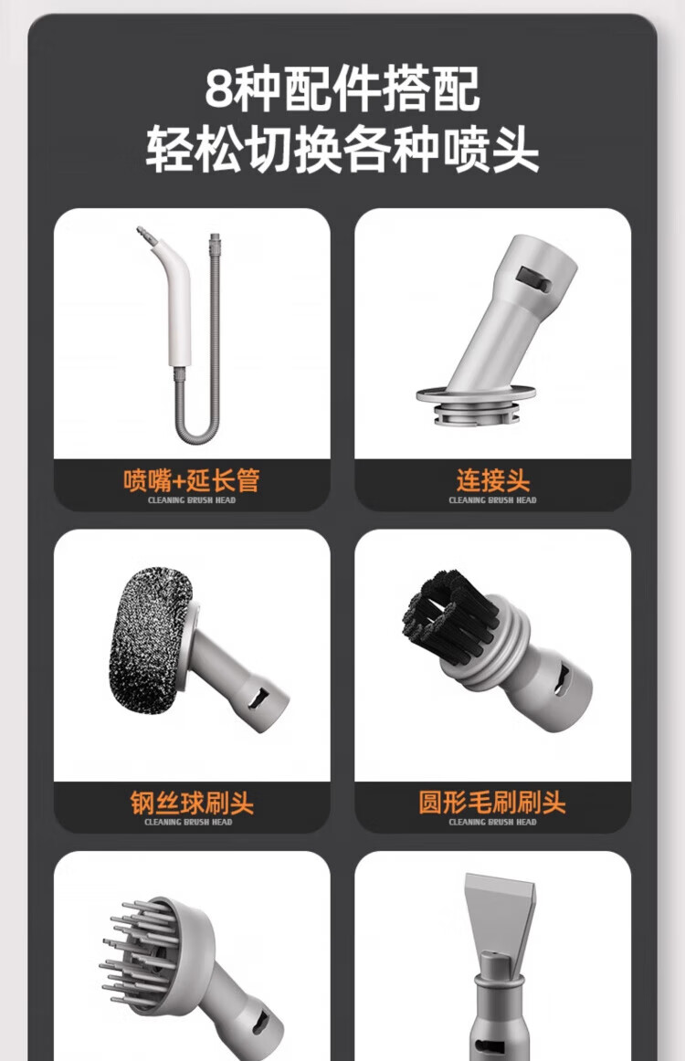 CKULH German steam cleaning machine, high temperature and high pressure multifunctional sterilization and mite removal cleaning machine, kitchen degreasing all-in-one machine, whole house cleaning and decontamination machine, range hood washing machine, kitchen wiper machine, imported motor whole house cleaning/120, high temperature steam to send 12-piece set