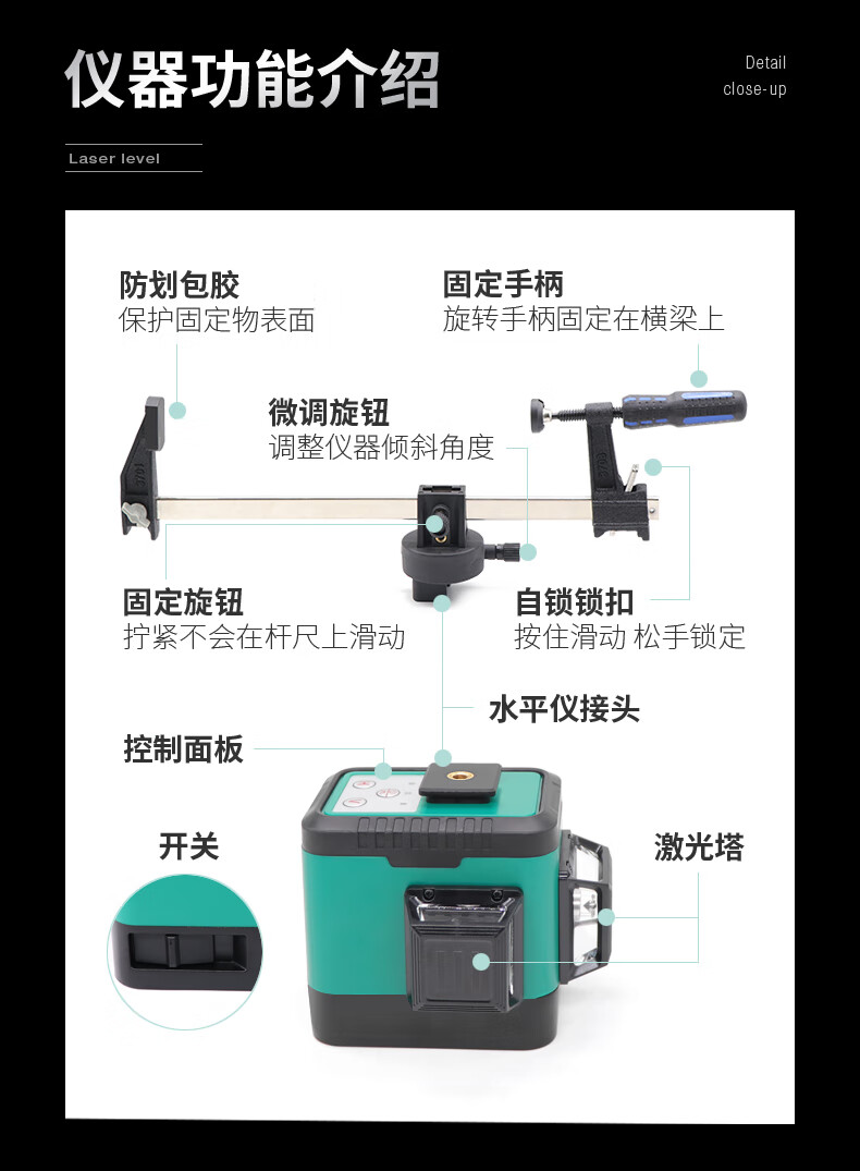 DOVOH infrared level high-precision strong light laser 8-line red + green light automatic leveling building outdoor special four-line red light W1-360R standard package