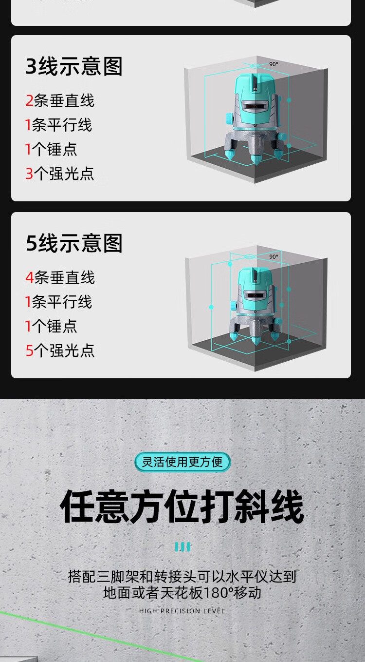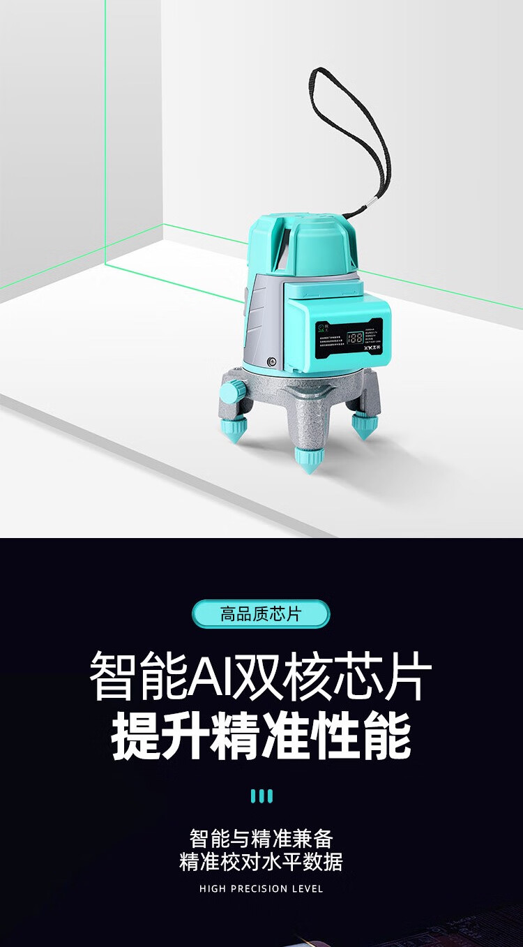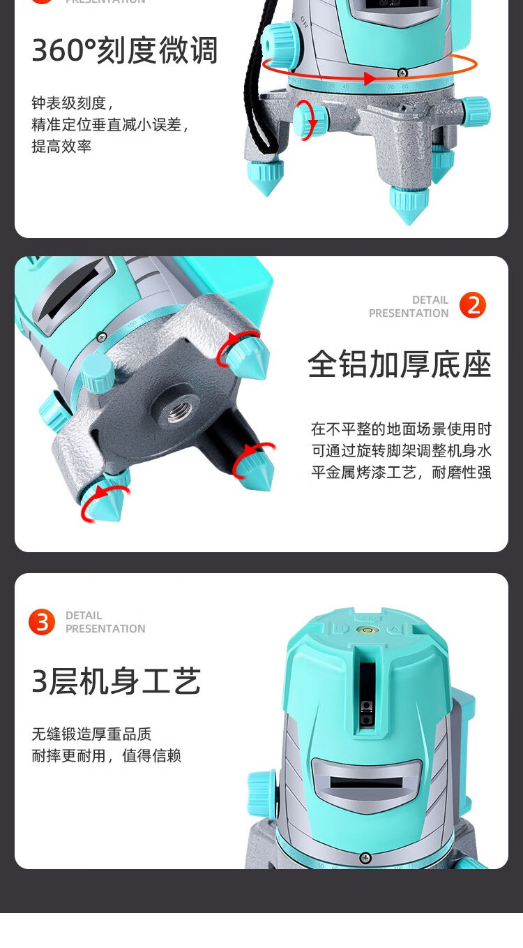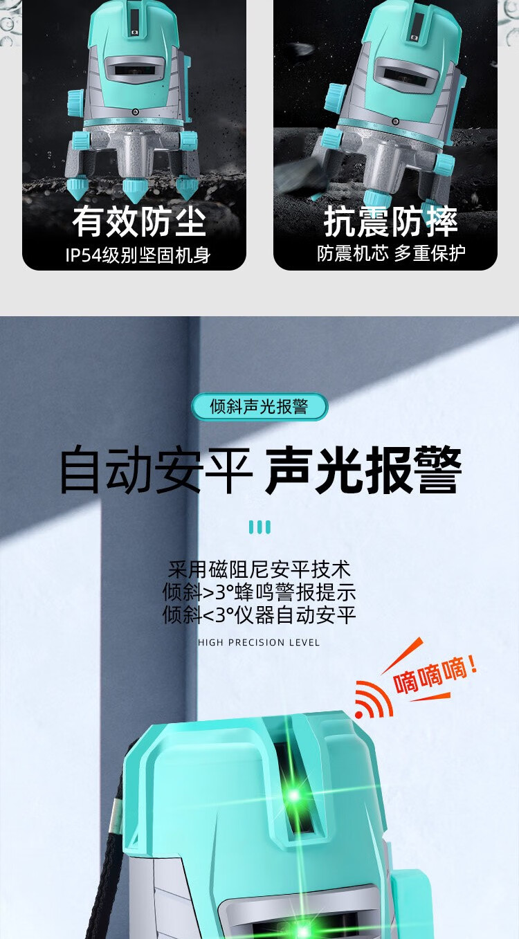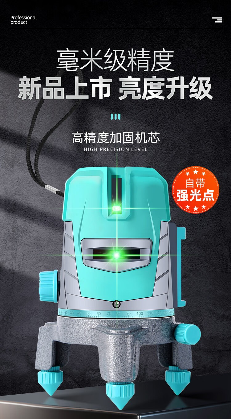 Qingong outdoor special 235-line strong green light point level thin line blue light high-precision automatic leveling sunshine style burst dimming green light 3 lines 4 points single electric