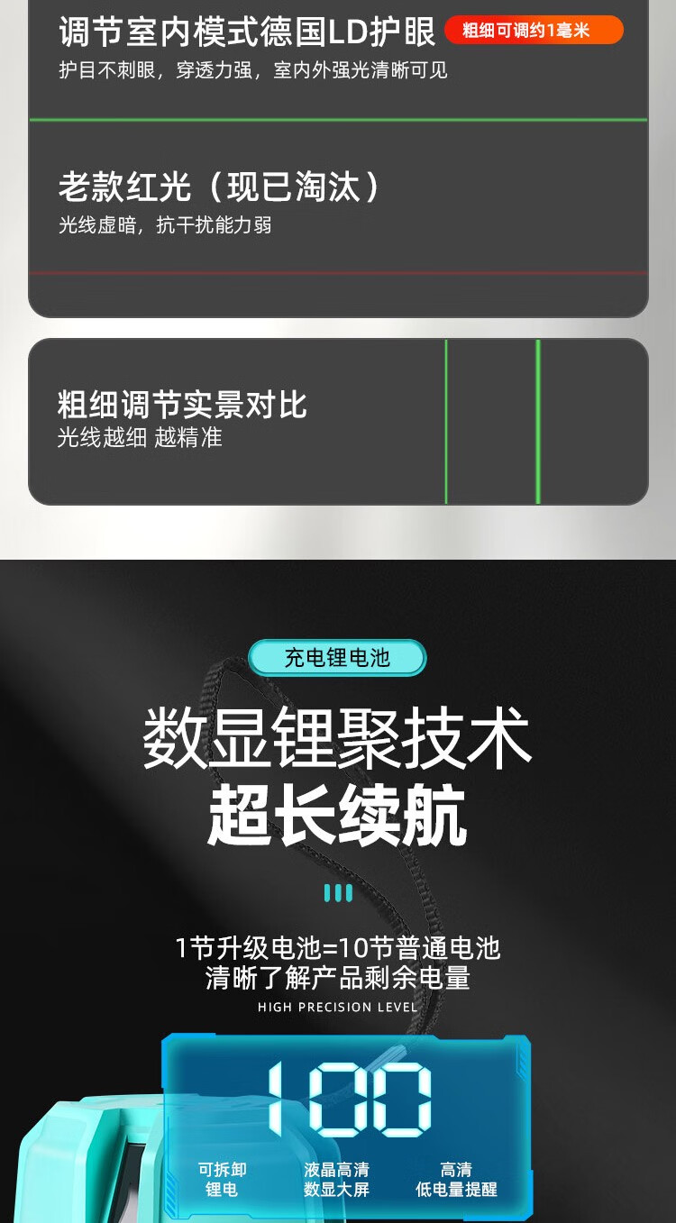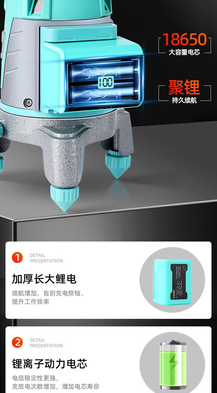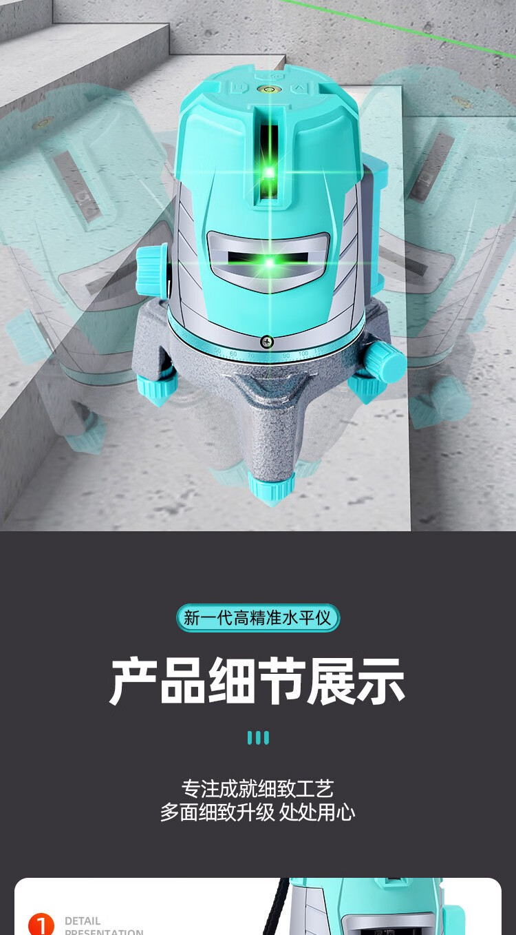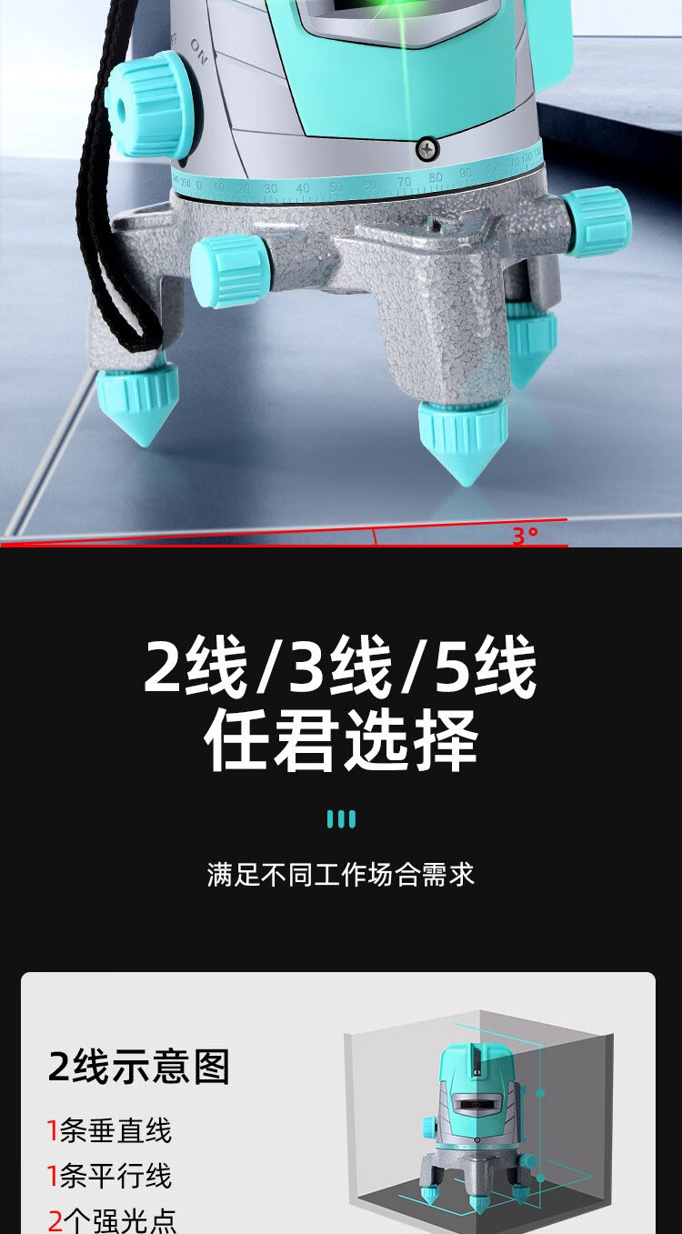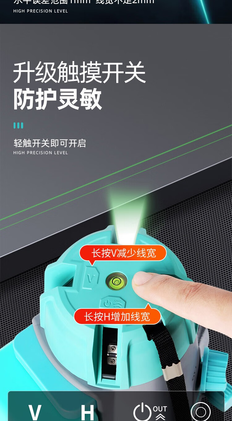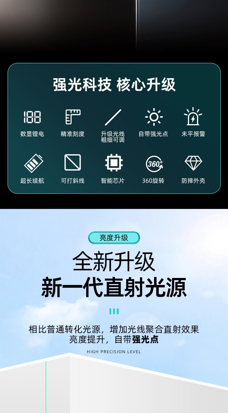 Qingong outdoor special 235-line strong green light point level thin line blue light high-precision automatic leveling sunshine style burst dimming green light 3 lines 4 points single electric
