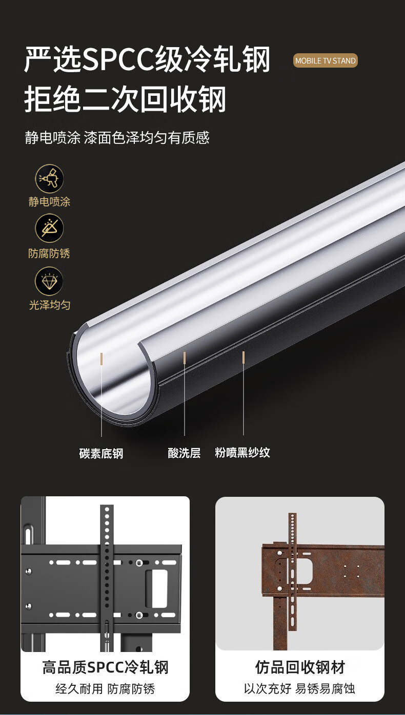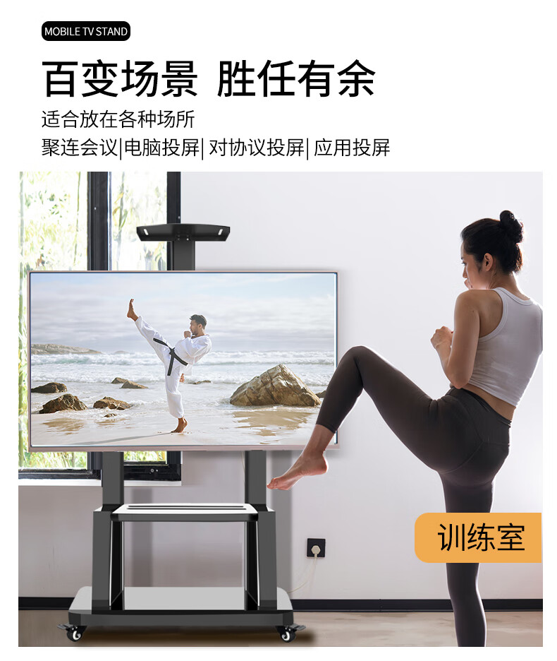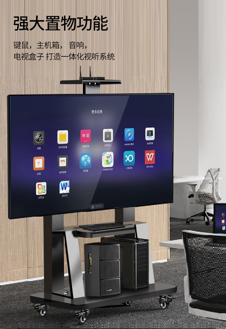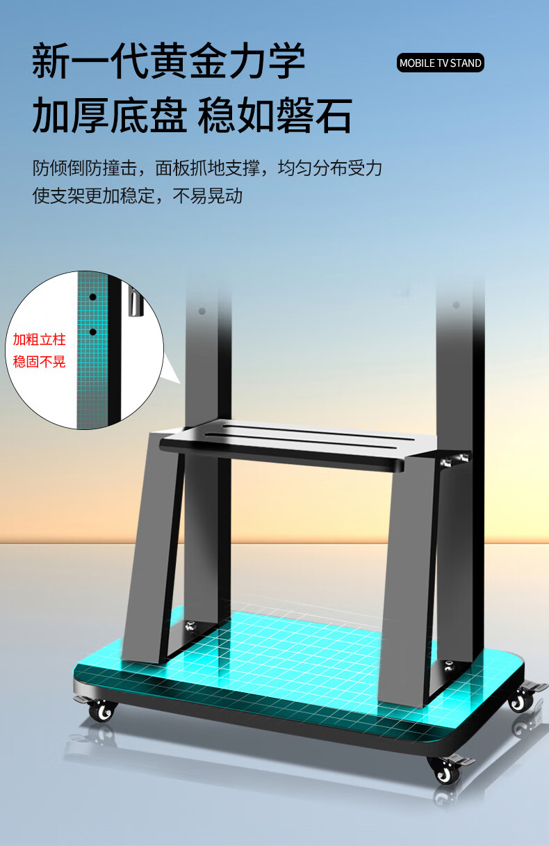 Solid Cool 32-75 inch TV floor stand movable cart stable load-bearing conference tablet all-in-one machine smart screen education exhibition opening adapted for Xiaomi Skyworth TCL Konka 43-75 inch TV mobile stand - thickened version