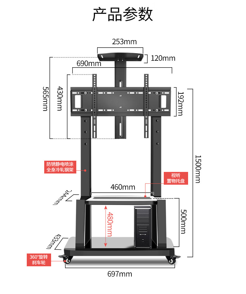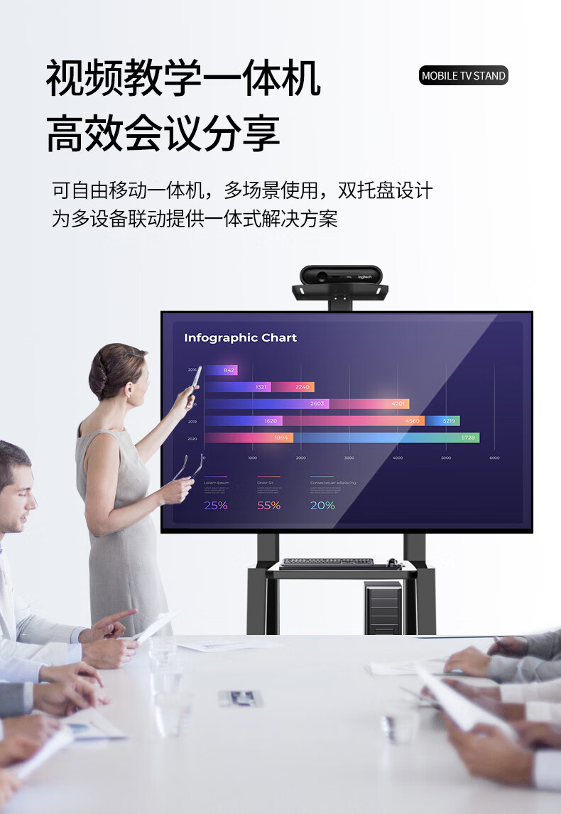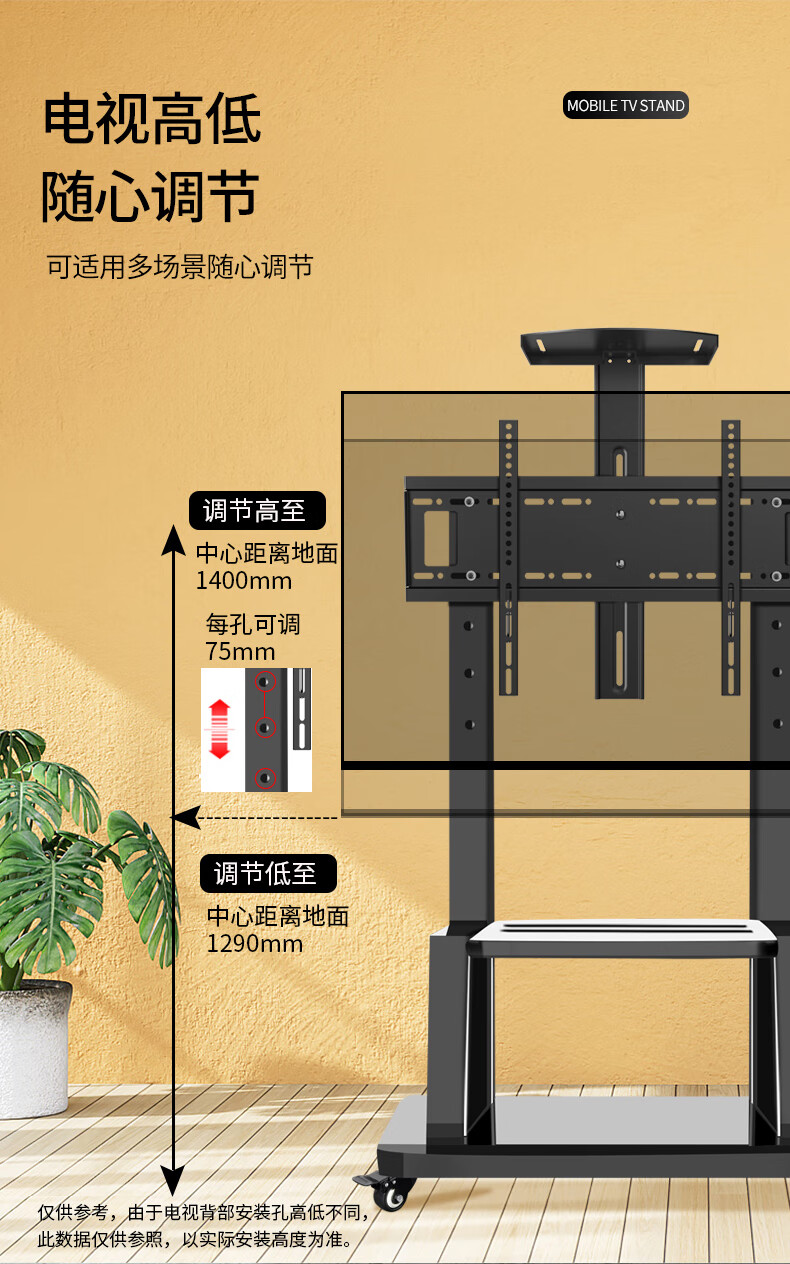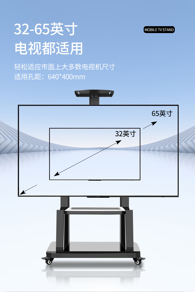 Solid Cool 32-75 inch TV floor stand movable cart stable load-bearing conference tablet all-in-one machine smart screen education exhibition opening adapted for Xiaomi Skyworth TCL Konka 43-75 inch TV mobile stand - thickened version