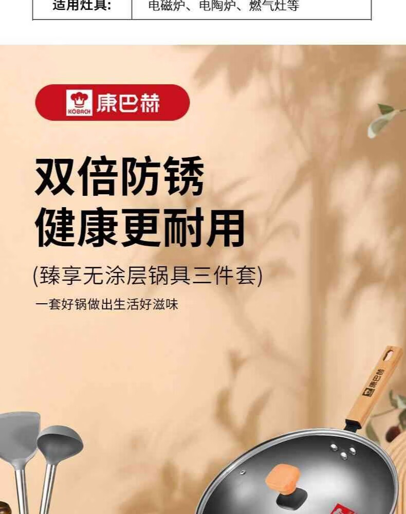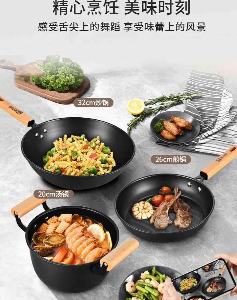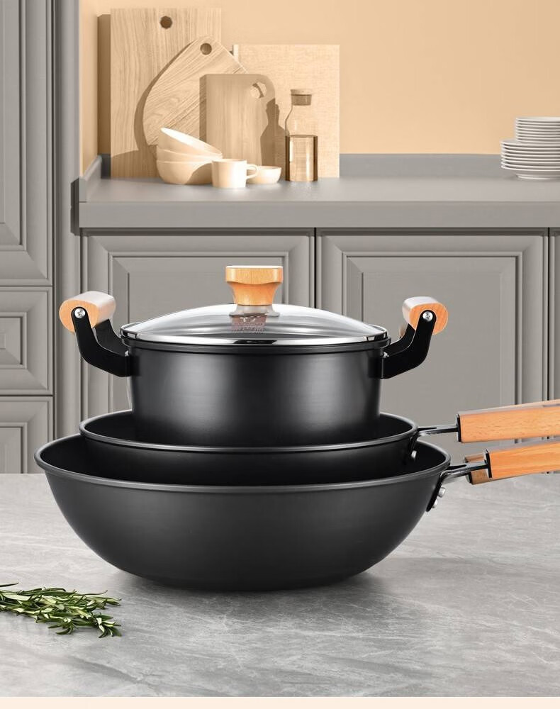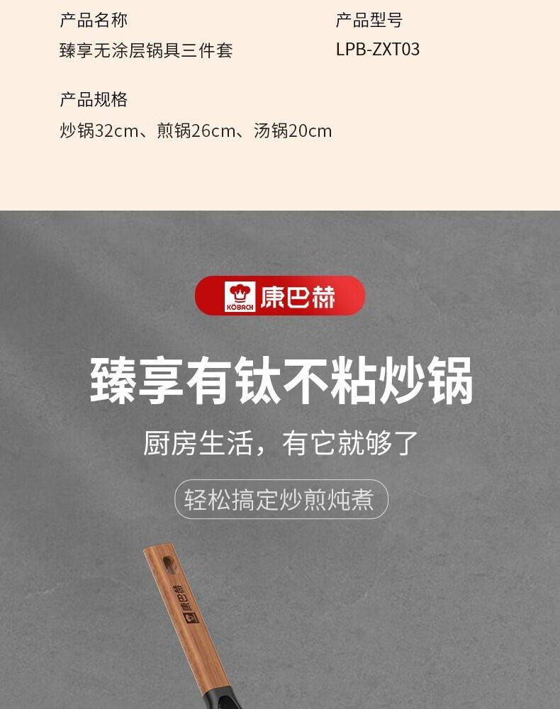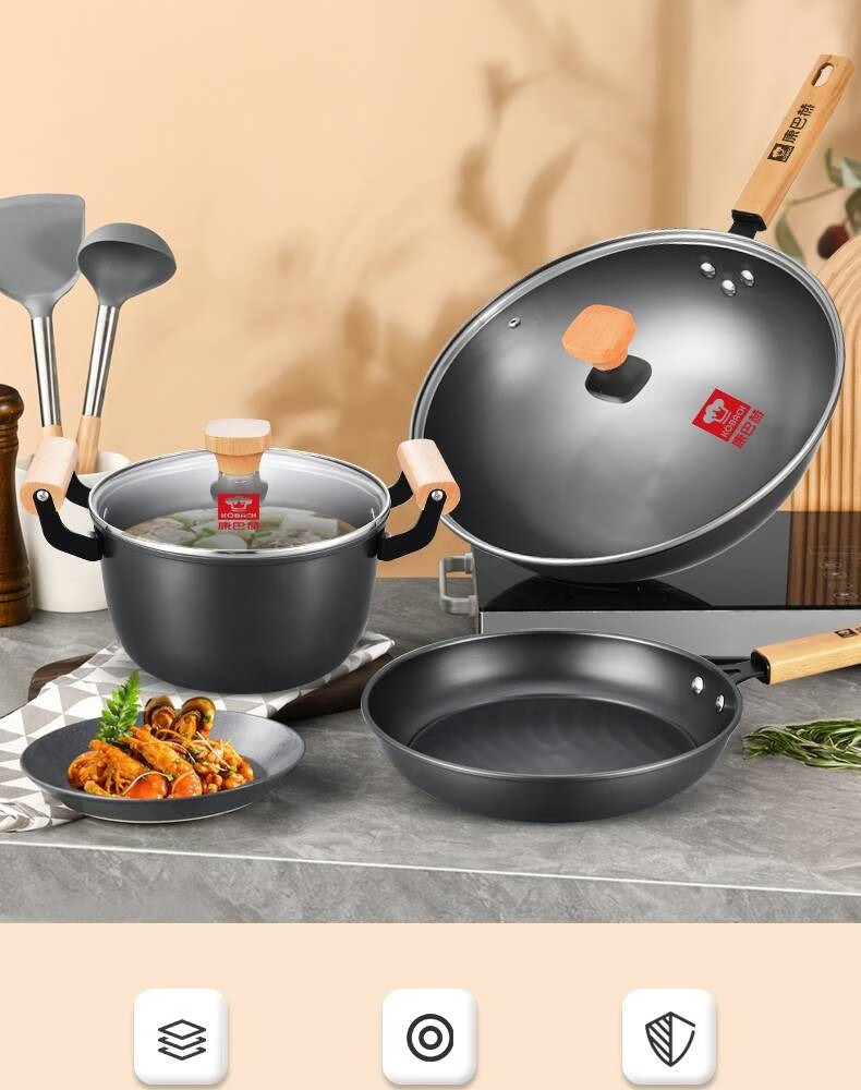 Kangbach uncoated pot set combination wok and steamer three-piece set LPB-ZXT03