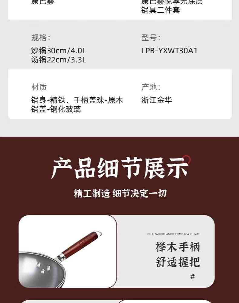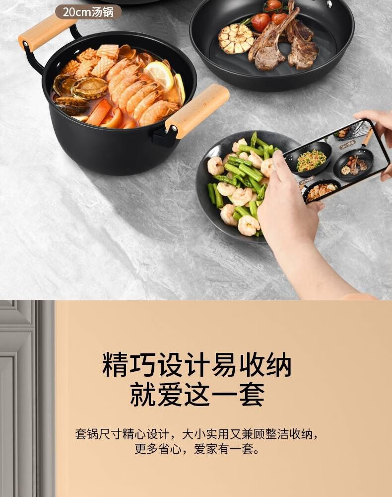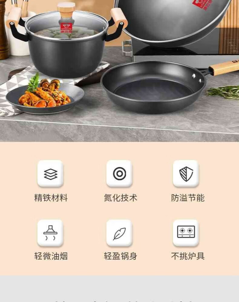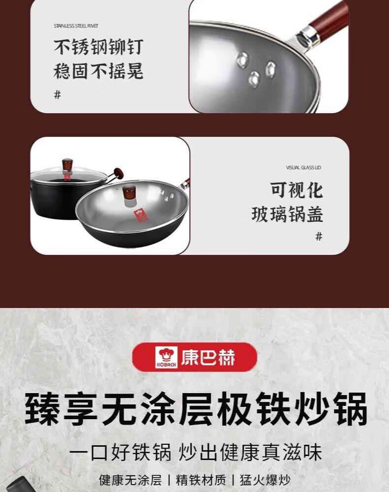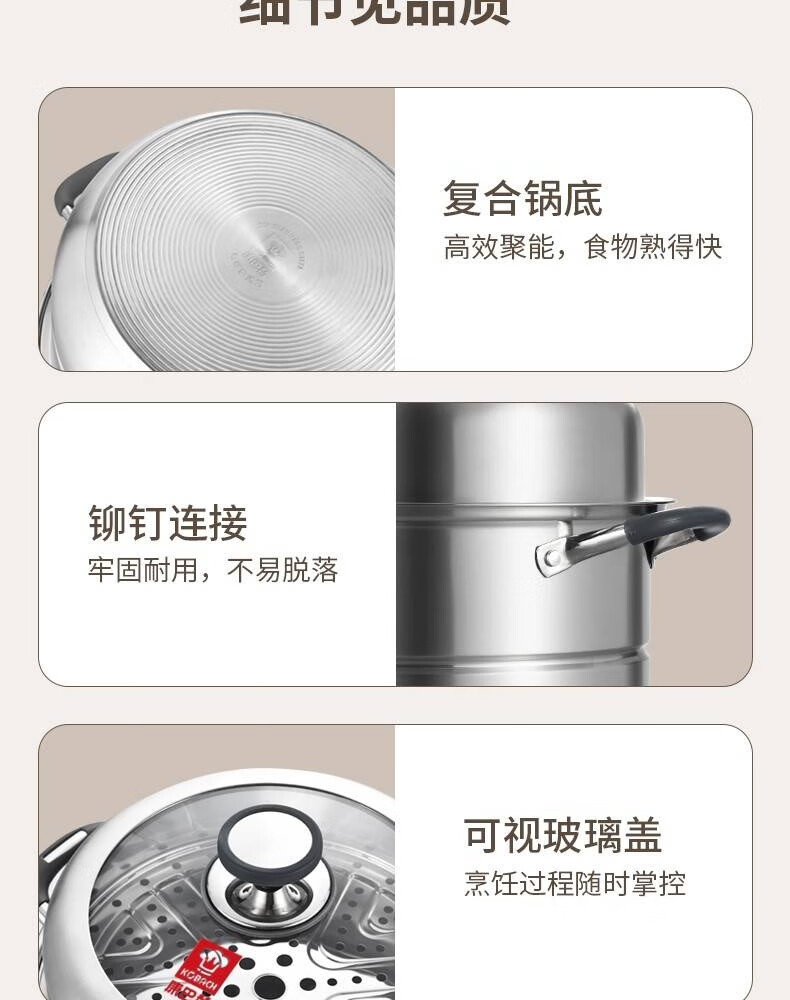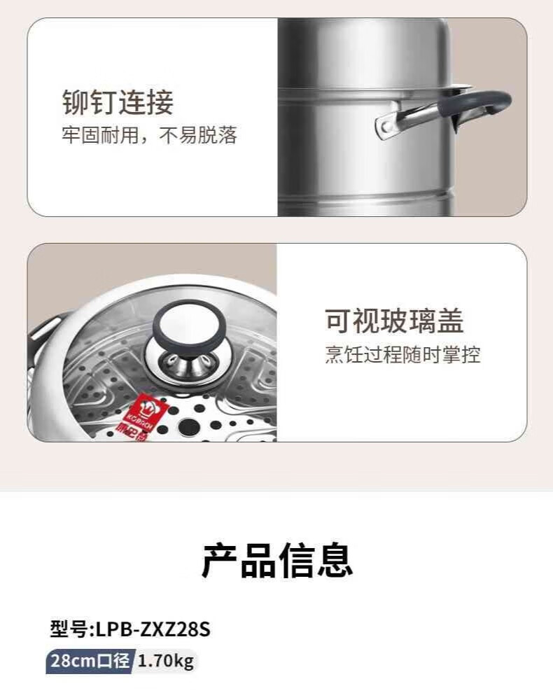 Kangbach uncoated pot set combination wok and steamer three-piece set LPB-ZXT03