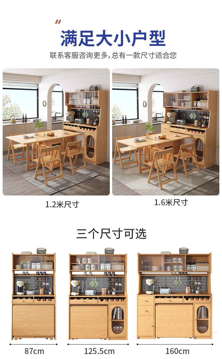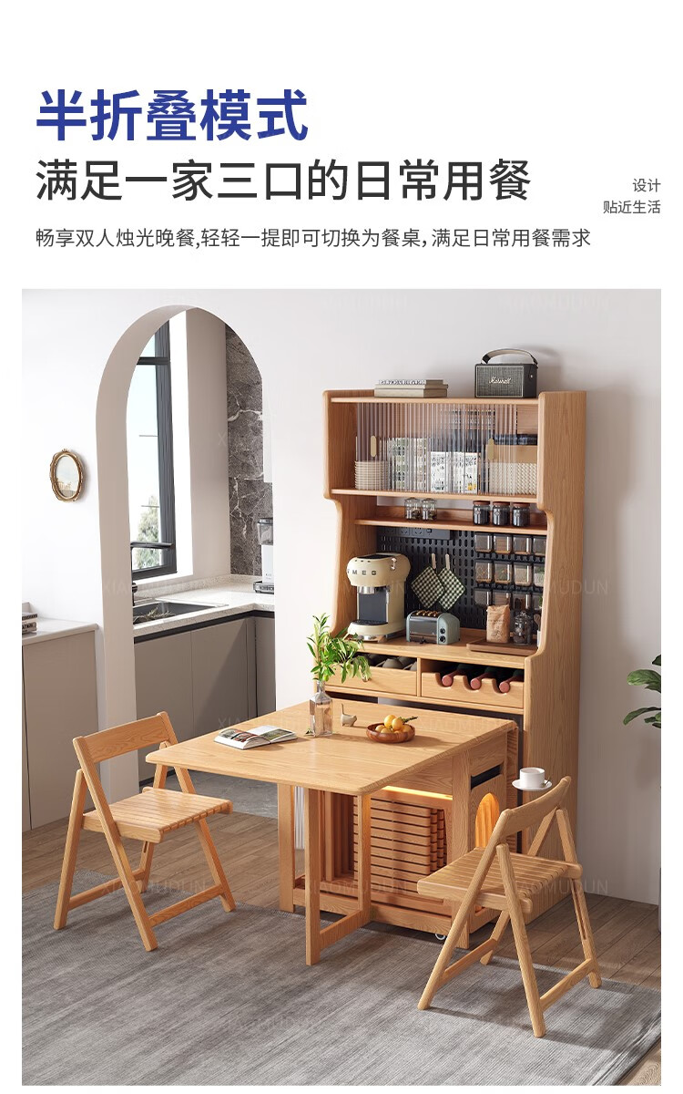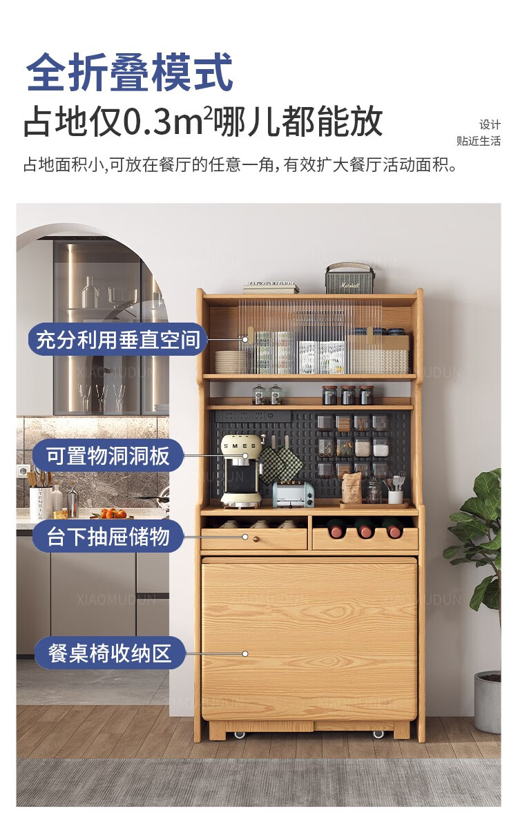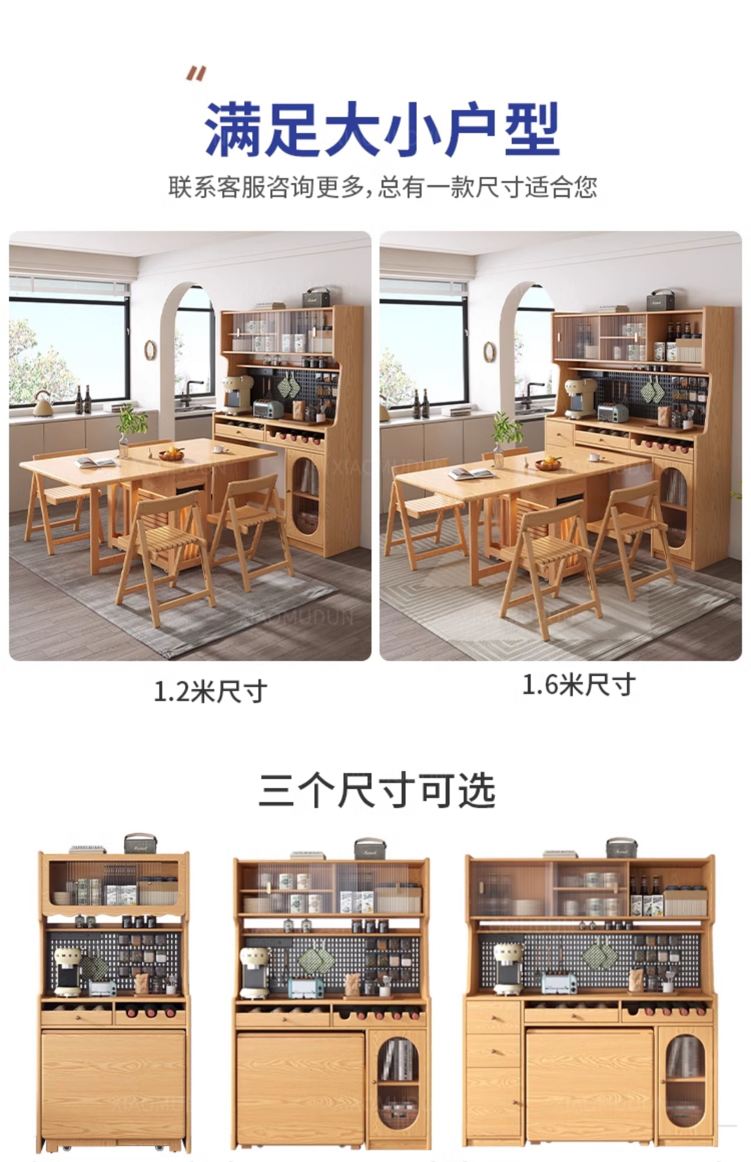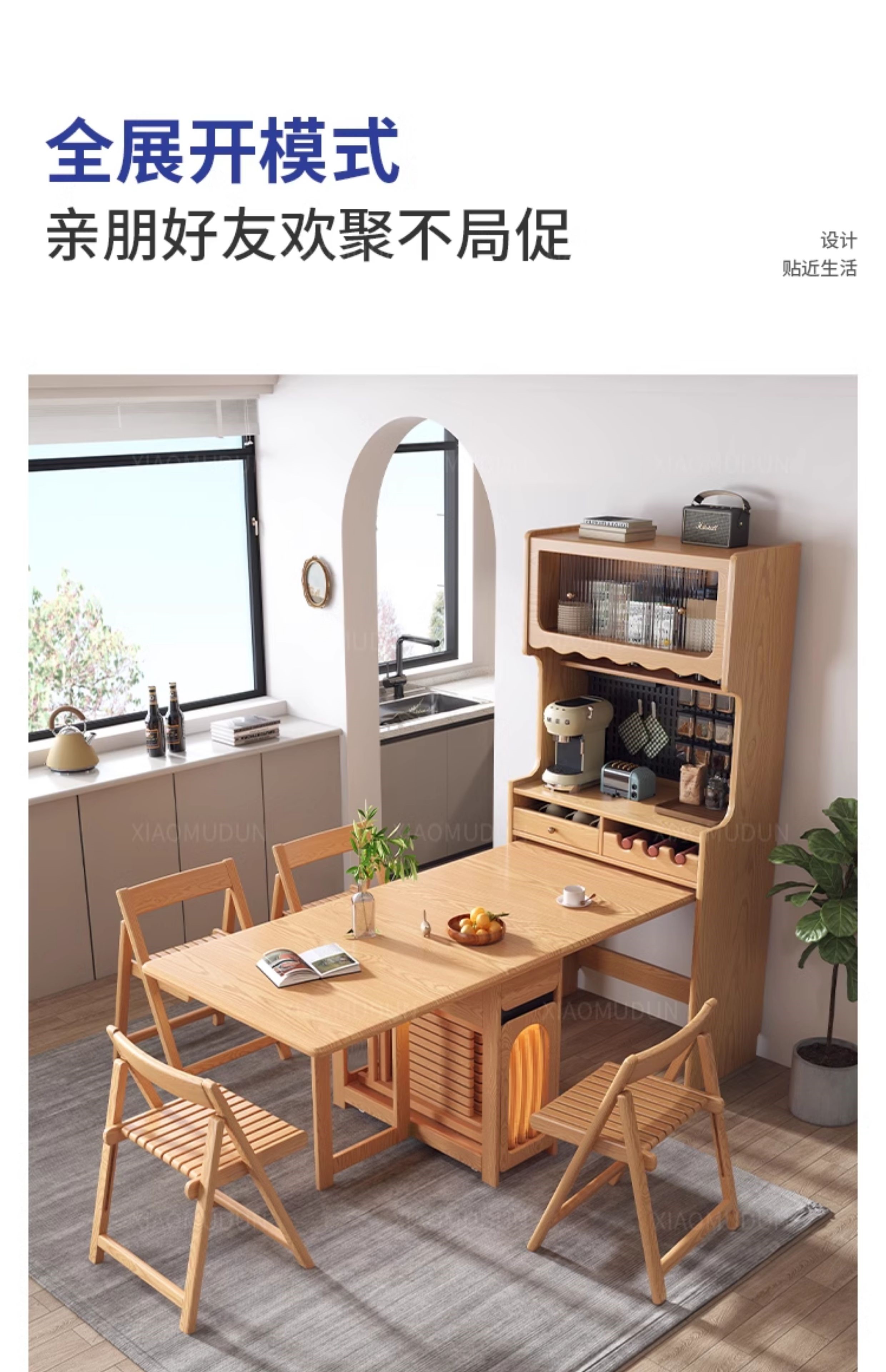 Meike Meijia sideboard dining table integrated solid wood folding dining table sideboard integrated wall dining chair combination original 1.4m all solid wood folding dining table 87x42x184cm