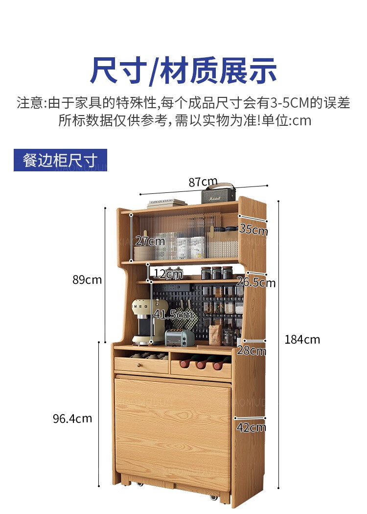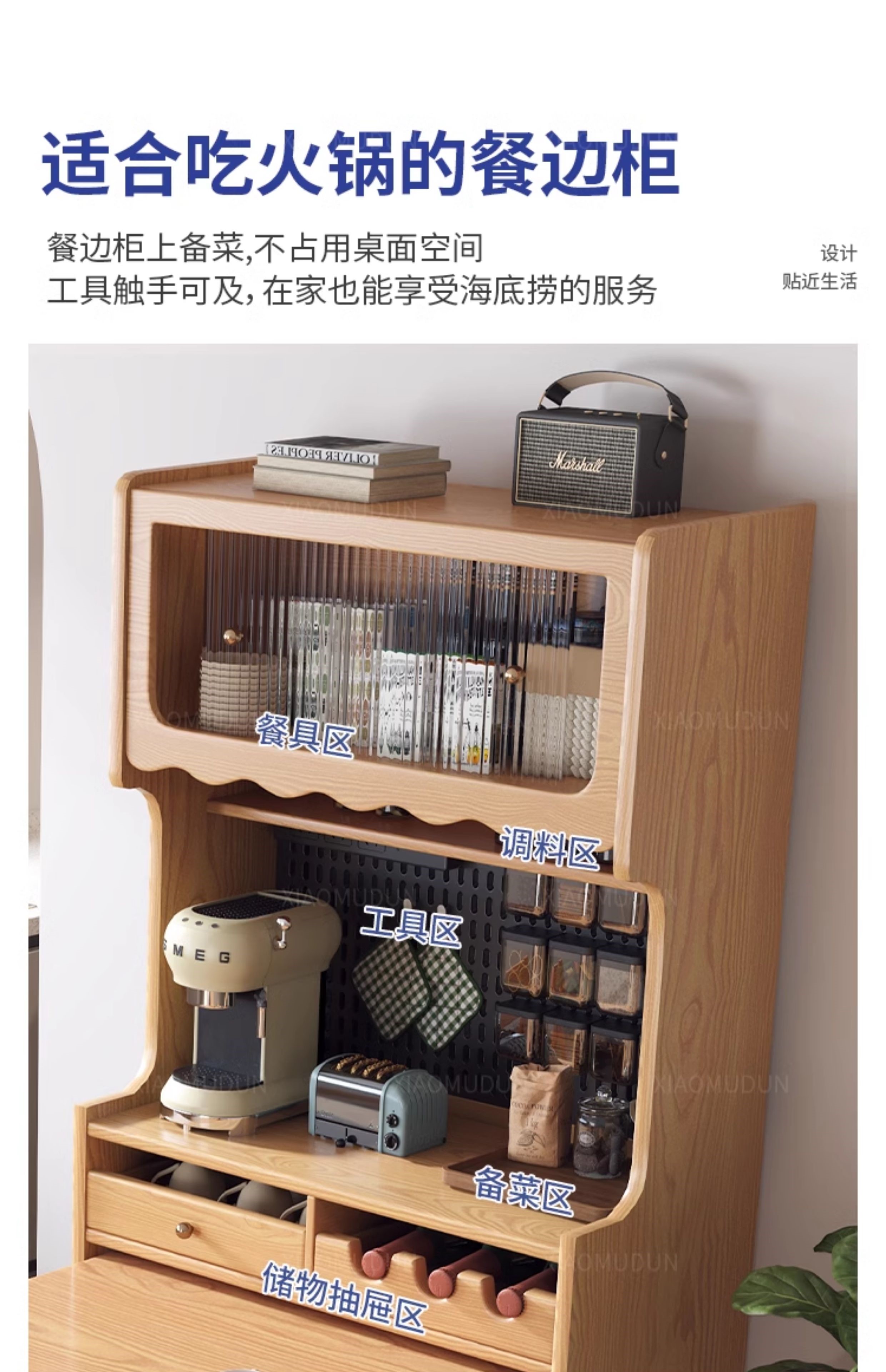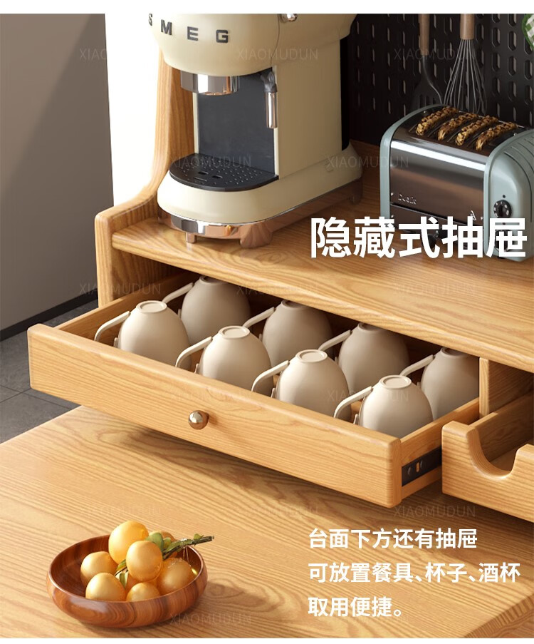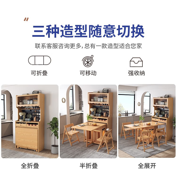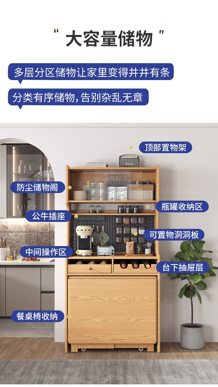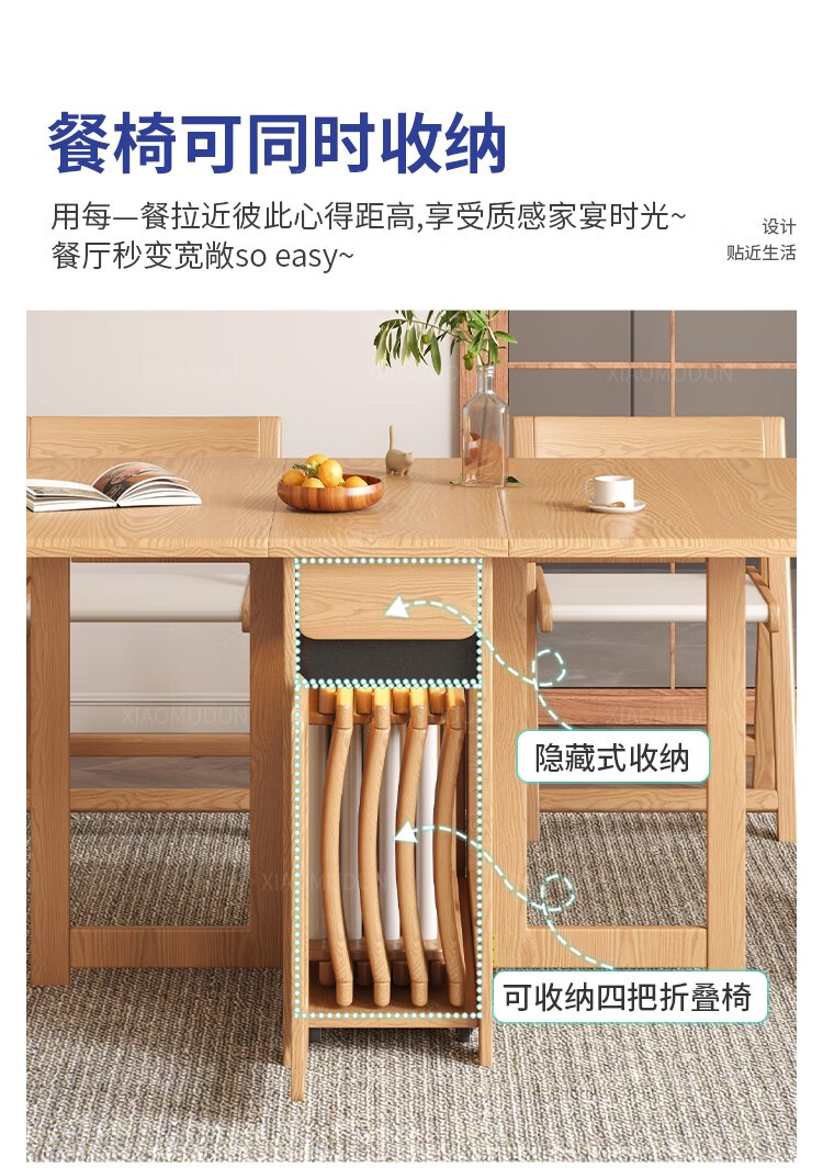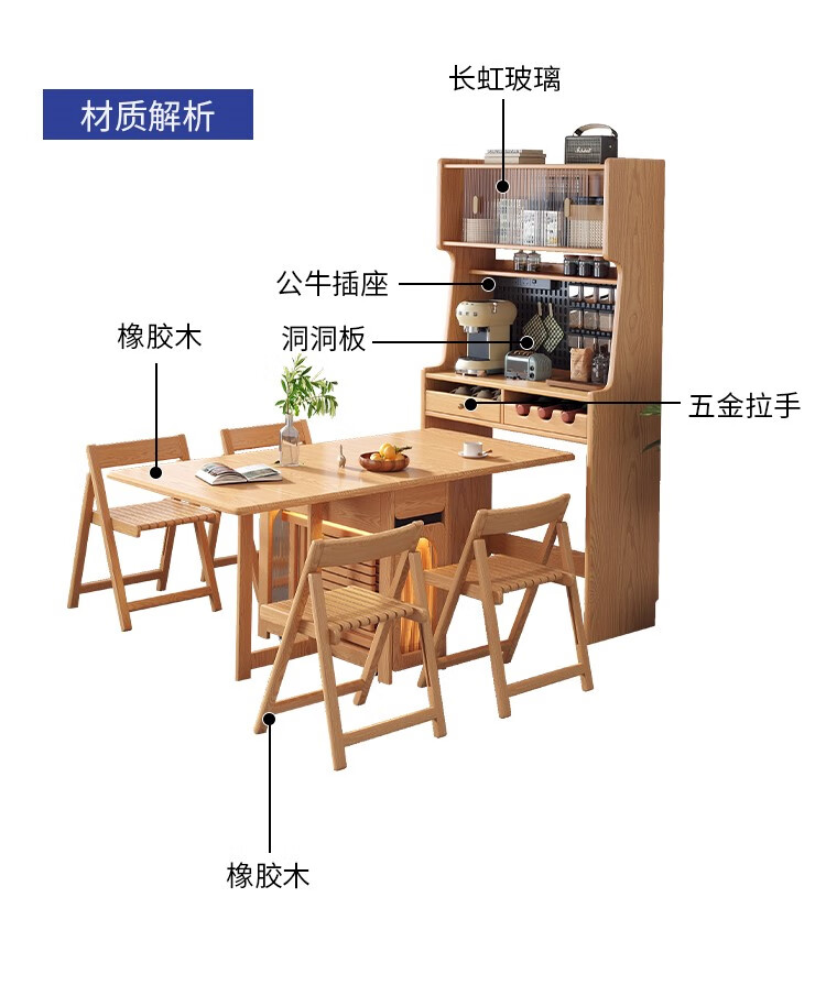 Meike Meijia sideboard dining table integrated solid wood folding dining table sideboard integrated wall dining chair combination original 1.4m all solid wood folding dining table 87x42x184cm
