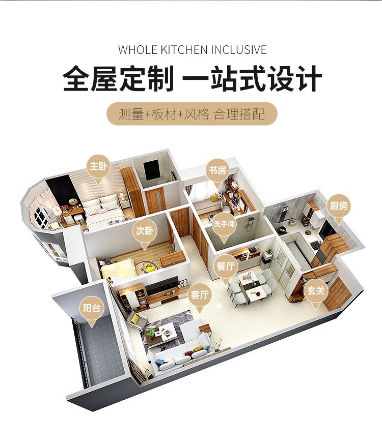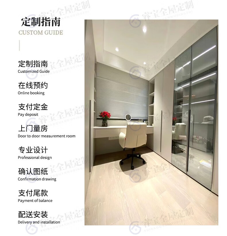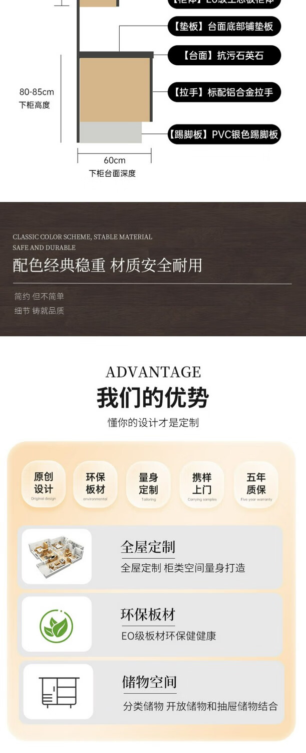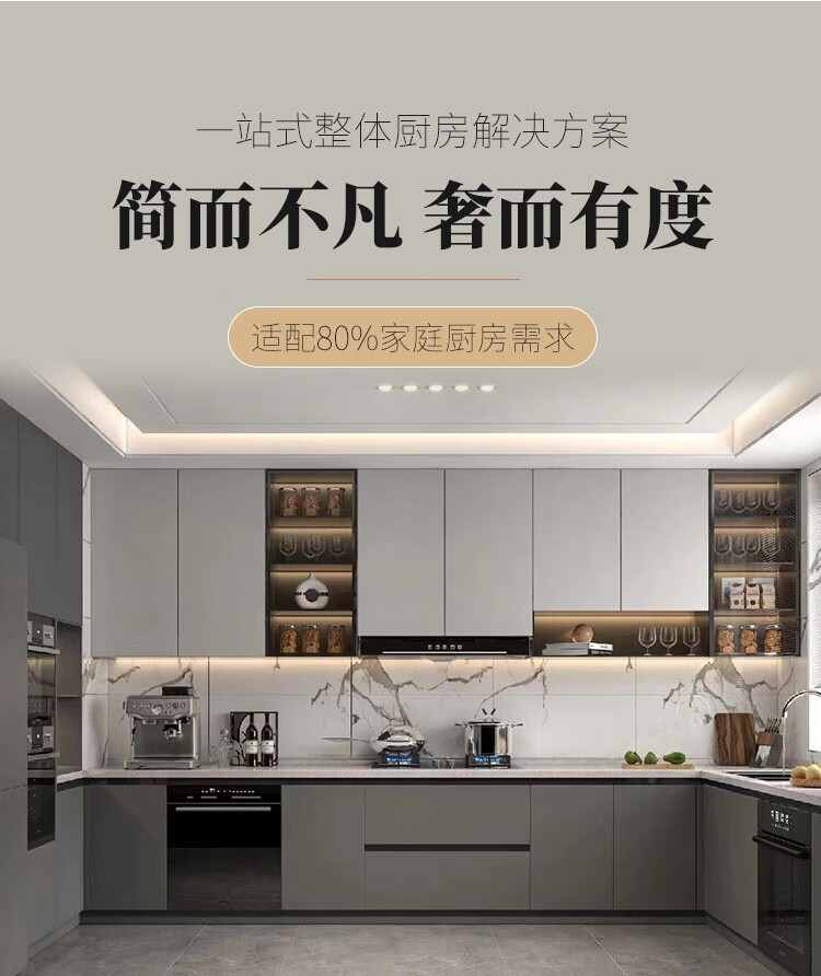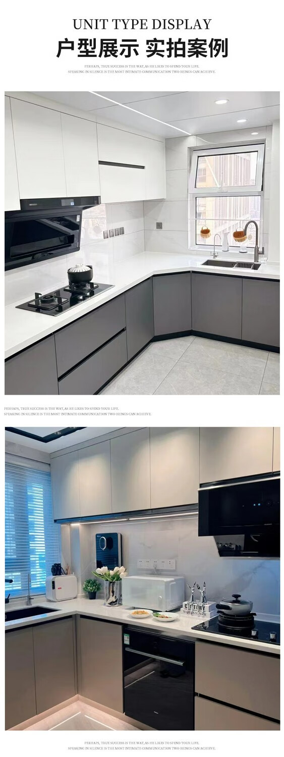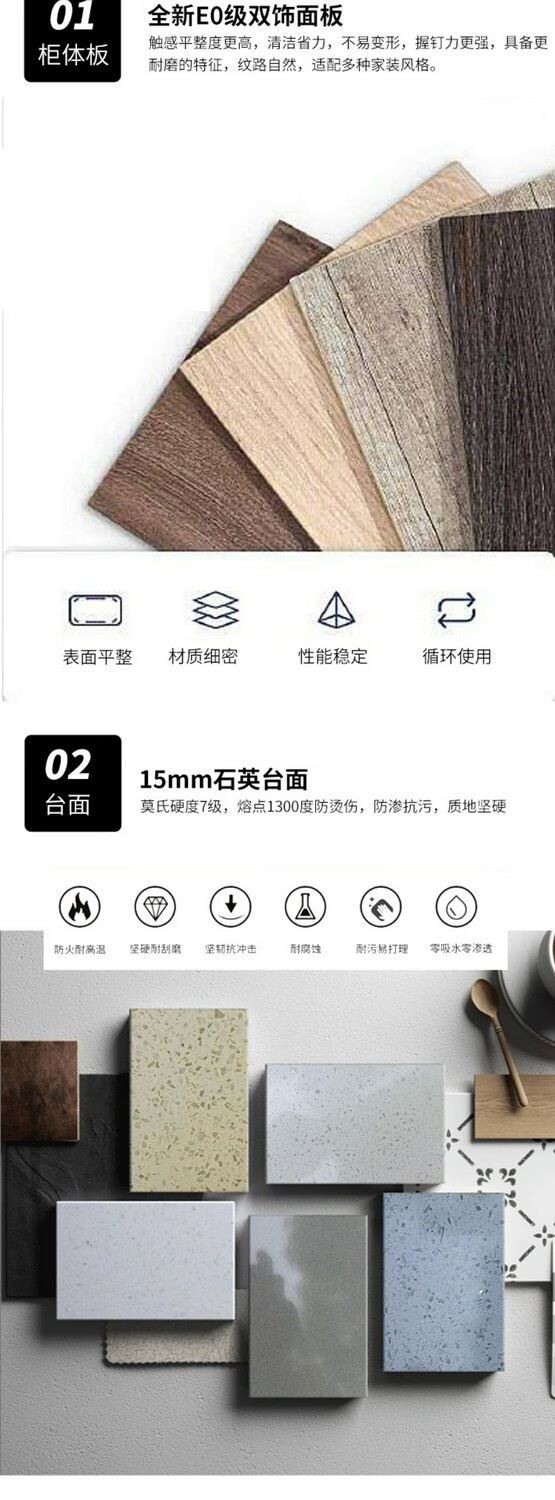 Integrated cabinets, whole house custom style quartz stone countertops, Bunny Soundar pet Eiger plate customization, cabinet door PET white + cabinet ecological board + countertop quartz 1 meter