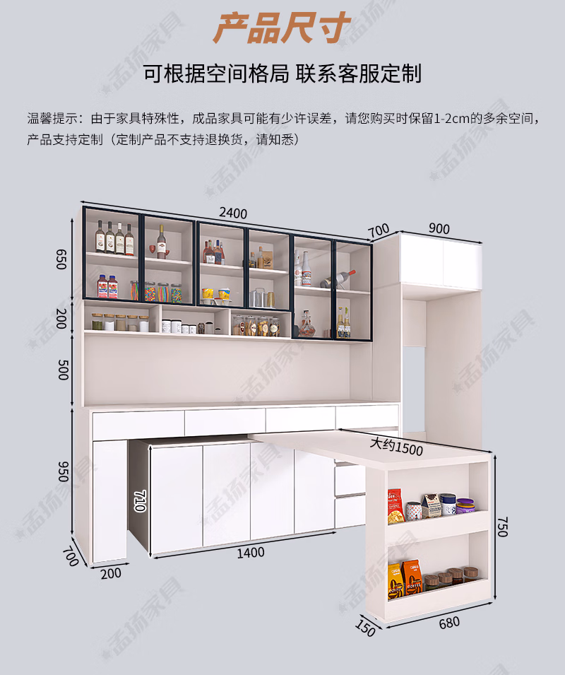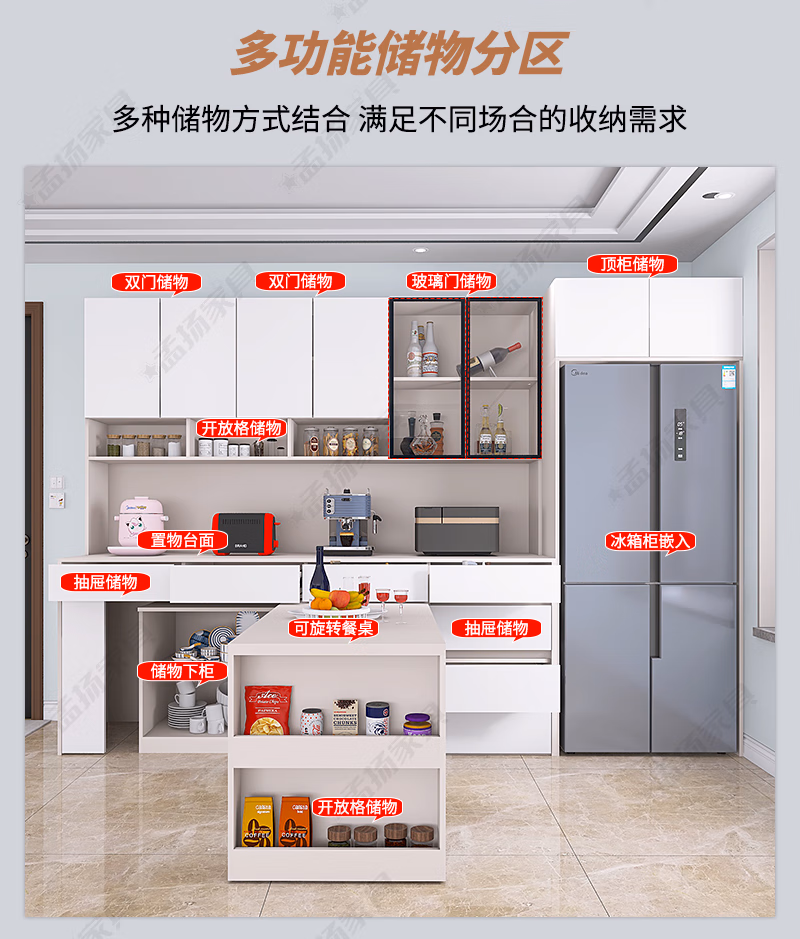 There is a new sideboard dining table integrated small apartment wall-mounted rotatable refrigerator cabinet living room home kitchen storage style 1 2500*700*2300mm