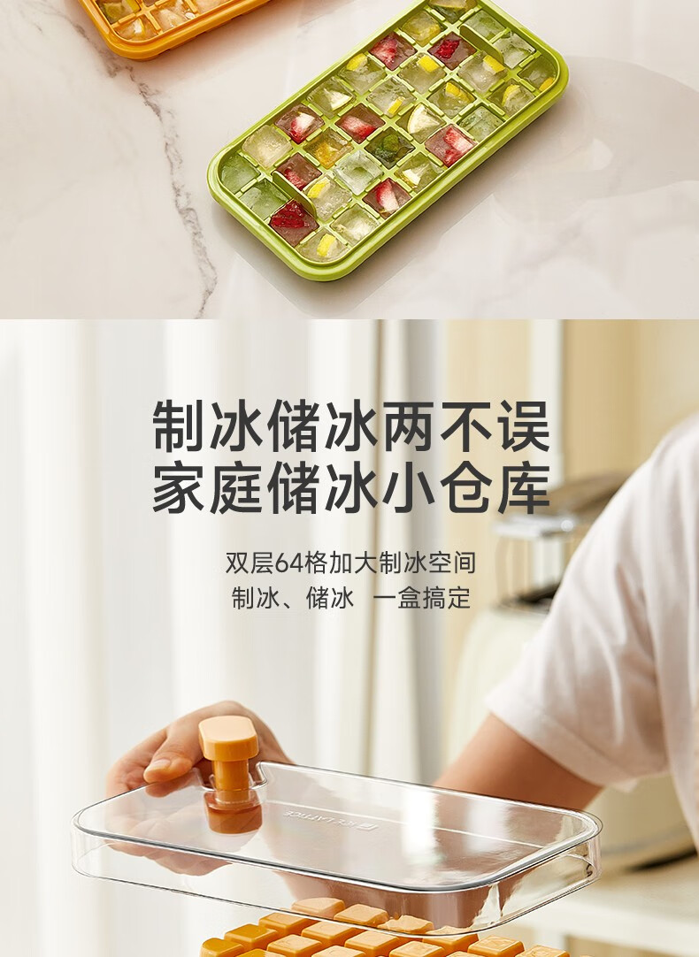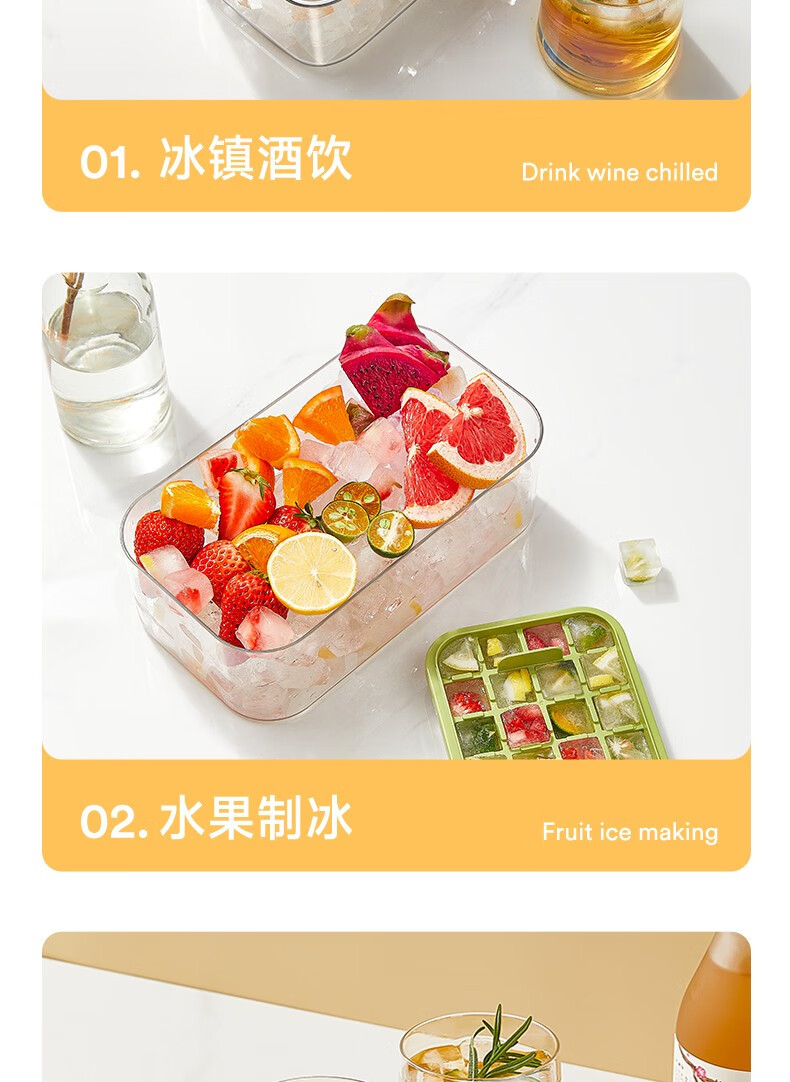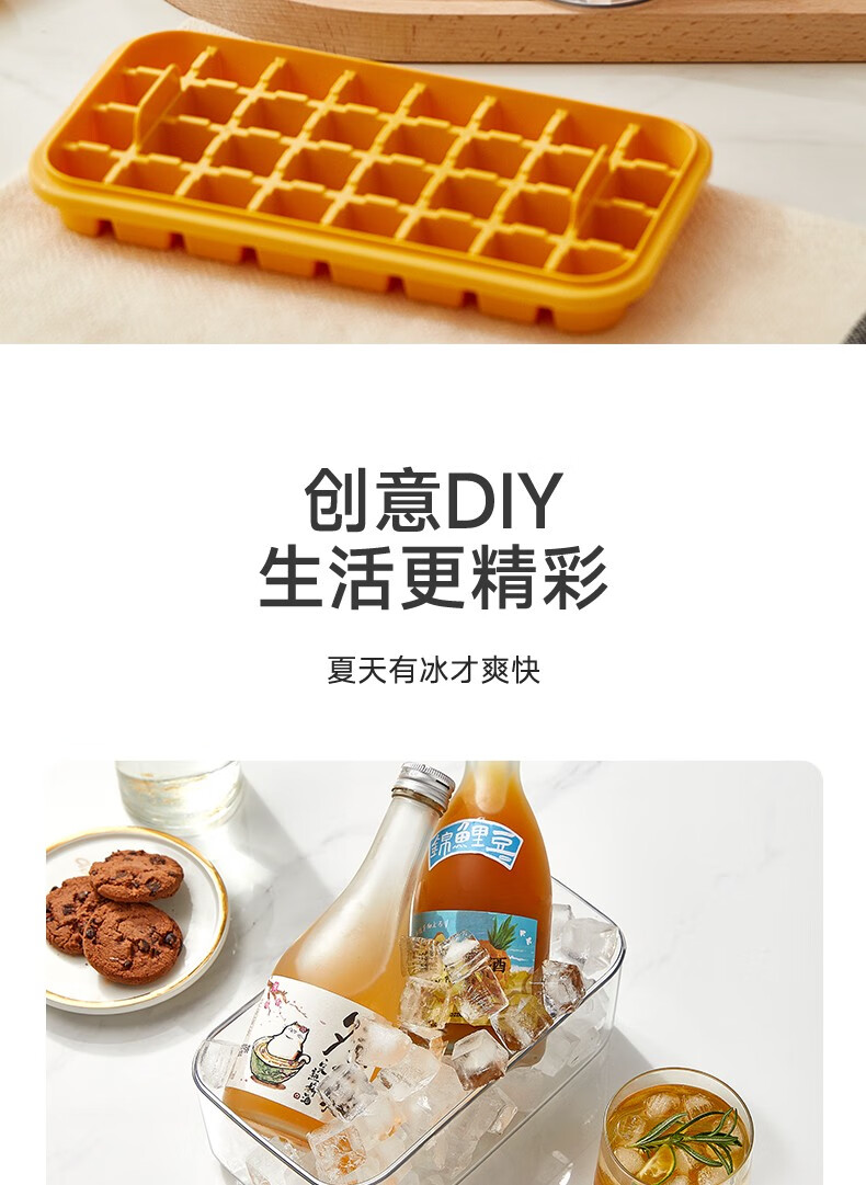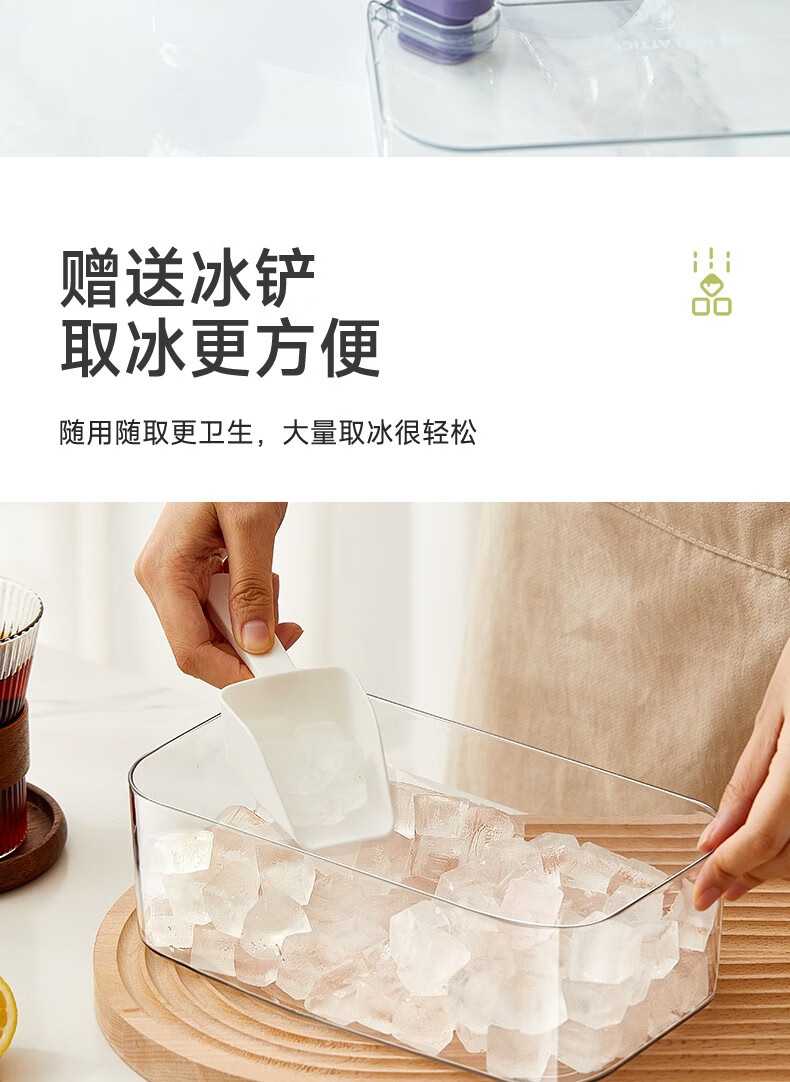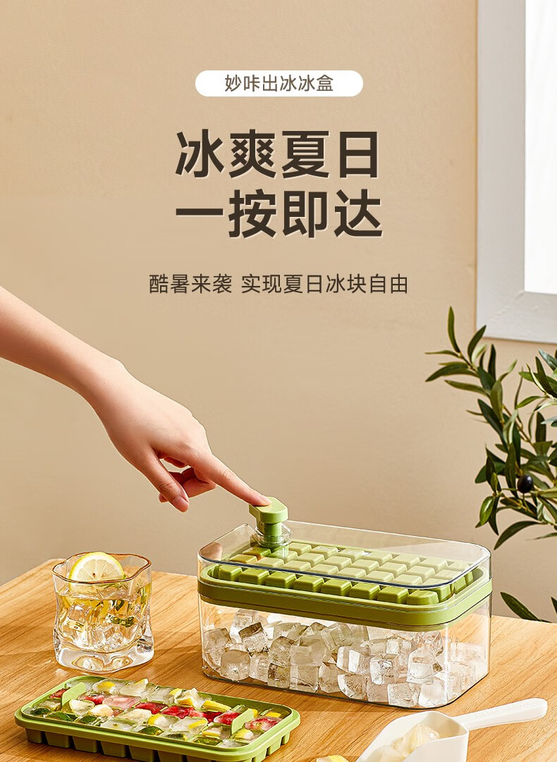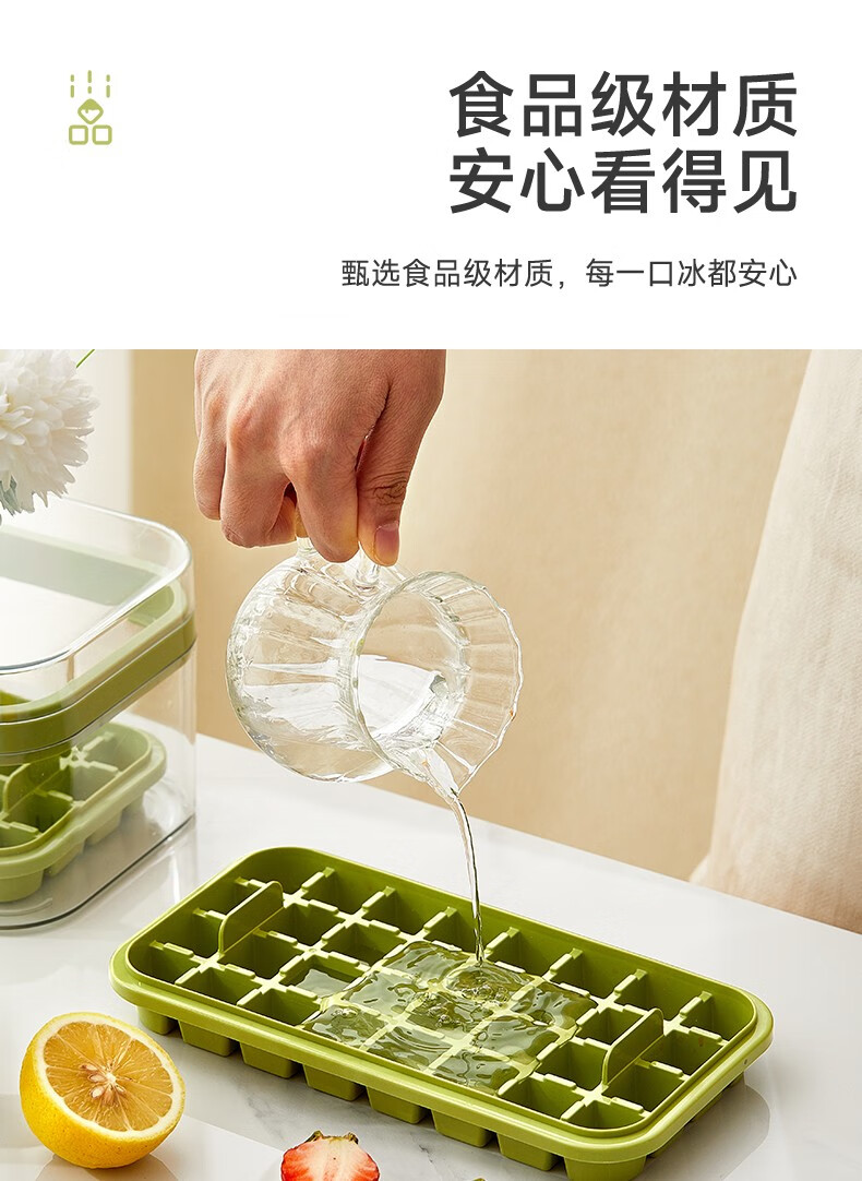 Bingyuanqi ice cube mold ice making box food grade press ice tray ice cube storage box homemade frozen ice cube ice making artifact food grade 32 grids green single layer (with ice shovel)