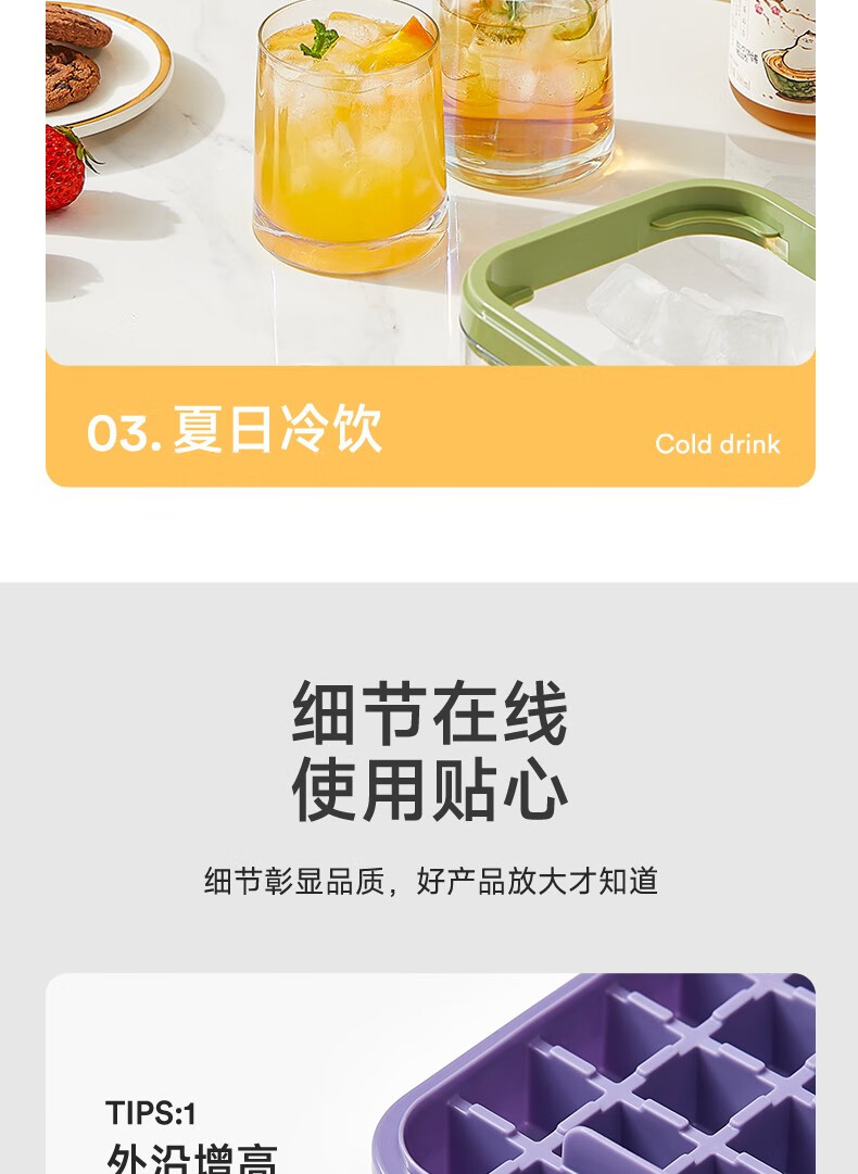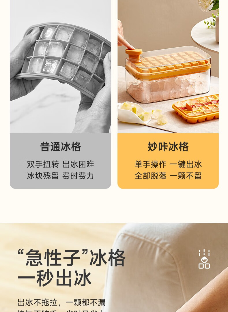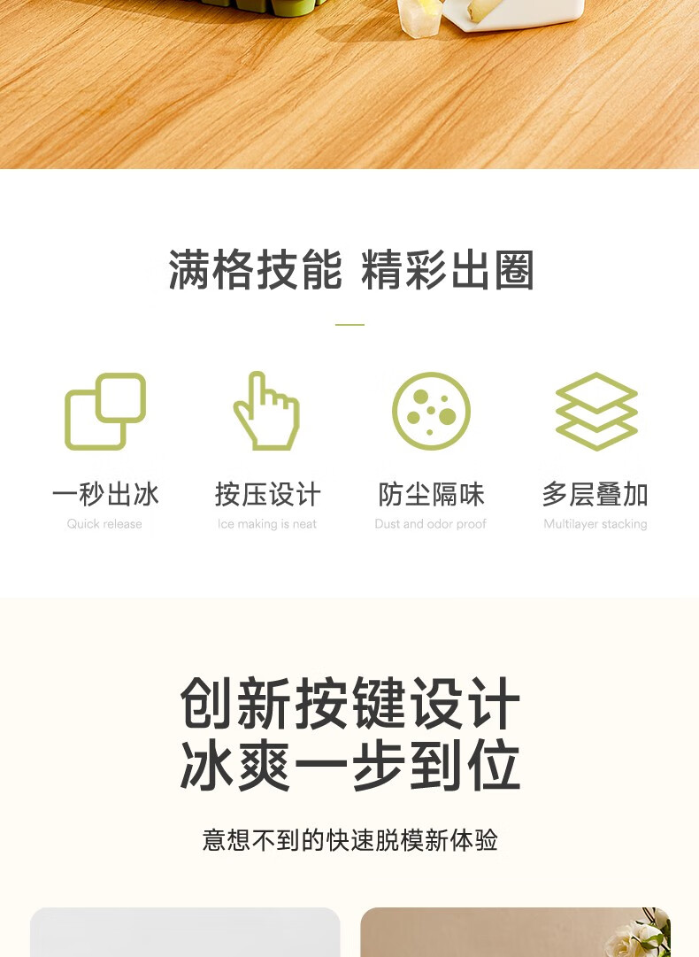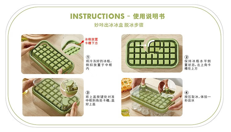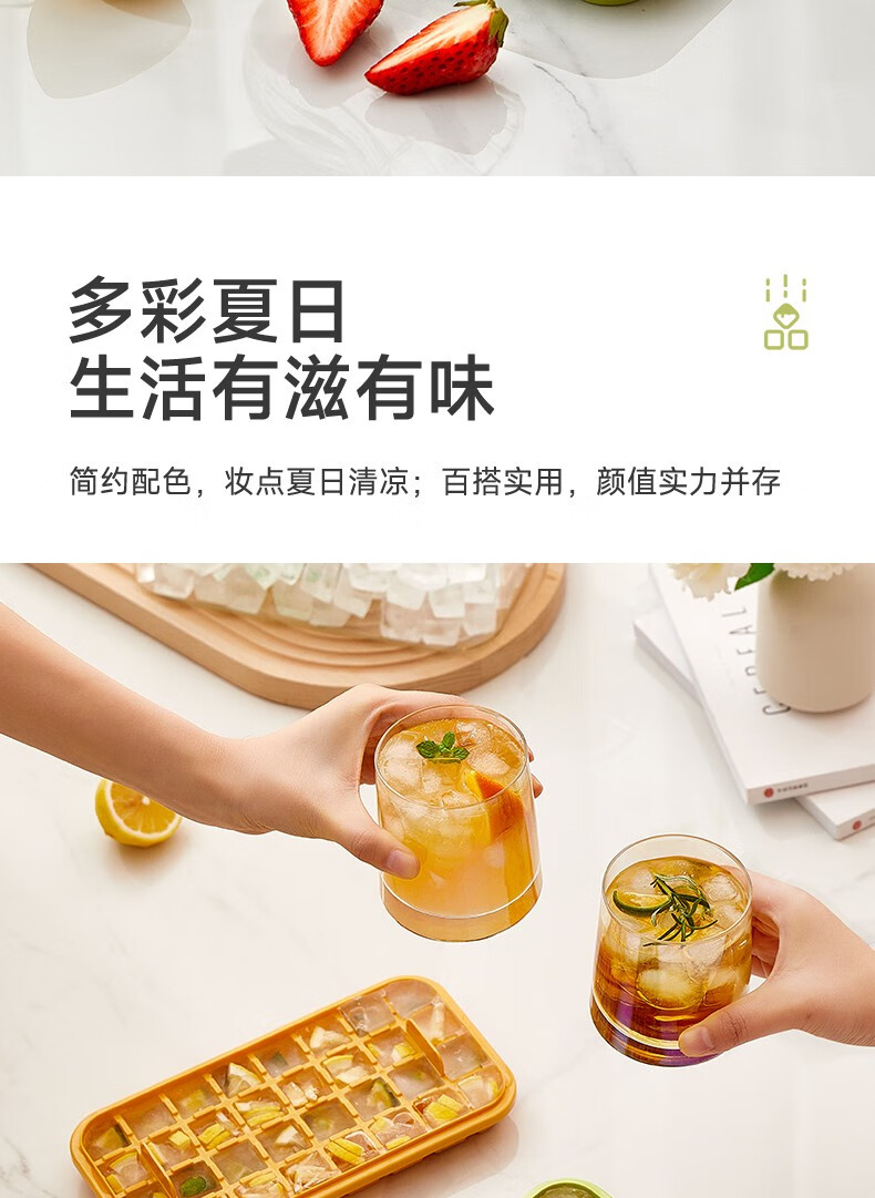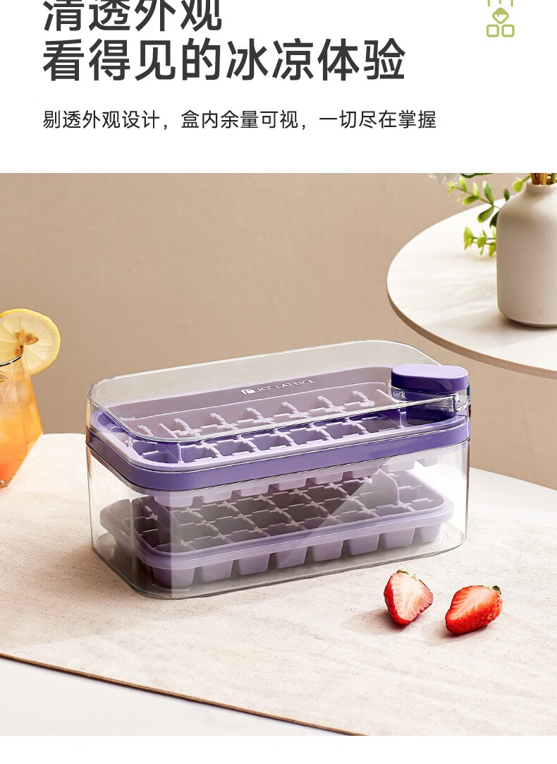 Bingyuanqi ice cube mold ice making box food grade press ice tray ice cube storage box homemade frozen ice cube ice making artifact food grade 32 grids green single layer (with ice shovel)