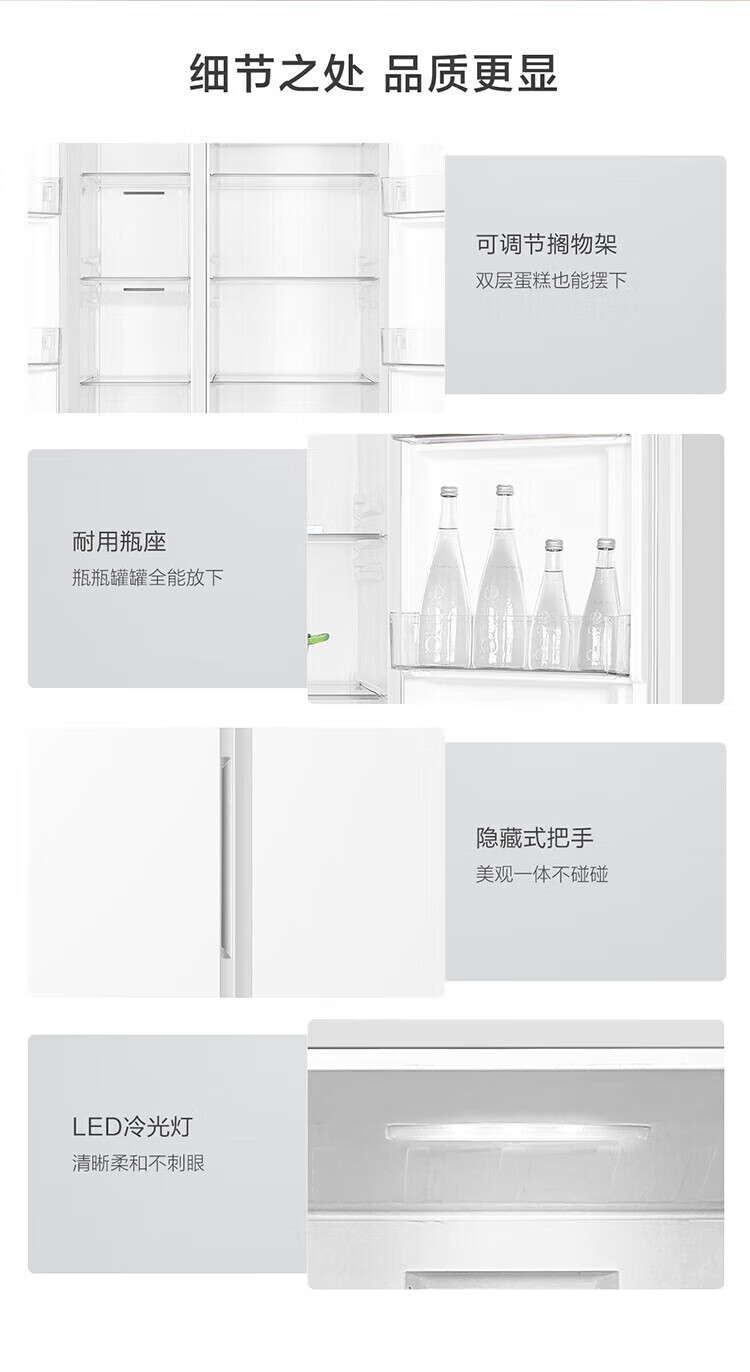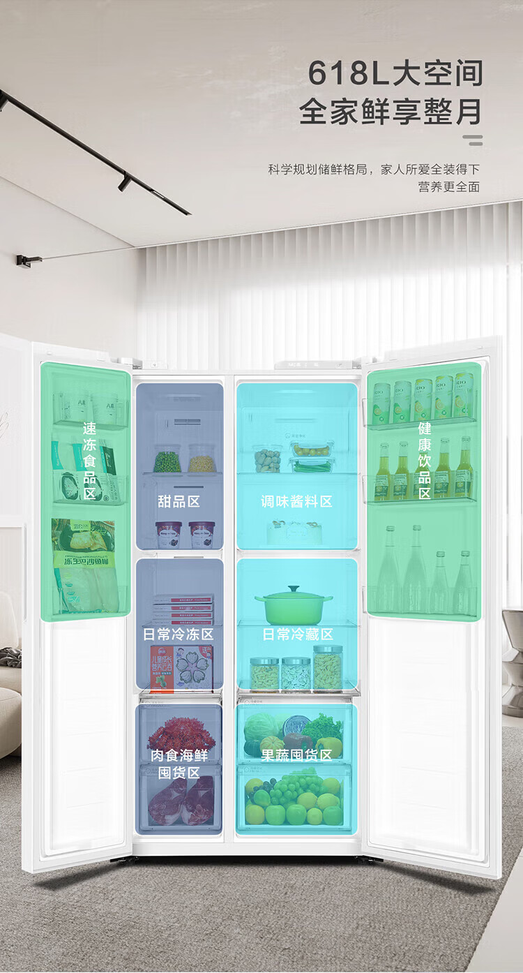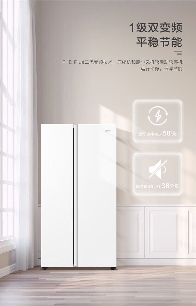 Leader refrigerator produced by Haier 618L side-by-side double-door air-cooled frost-free first-class energy efficiency inverter household large-capacity white refrigerator Leader 618L ice white + first-class dual inverter + black gold purification and antibacterial