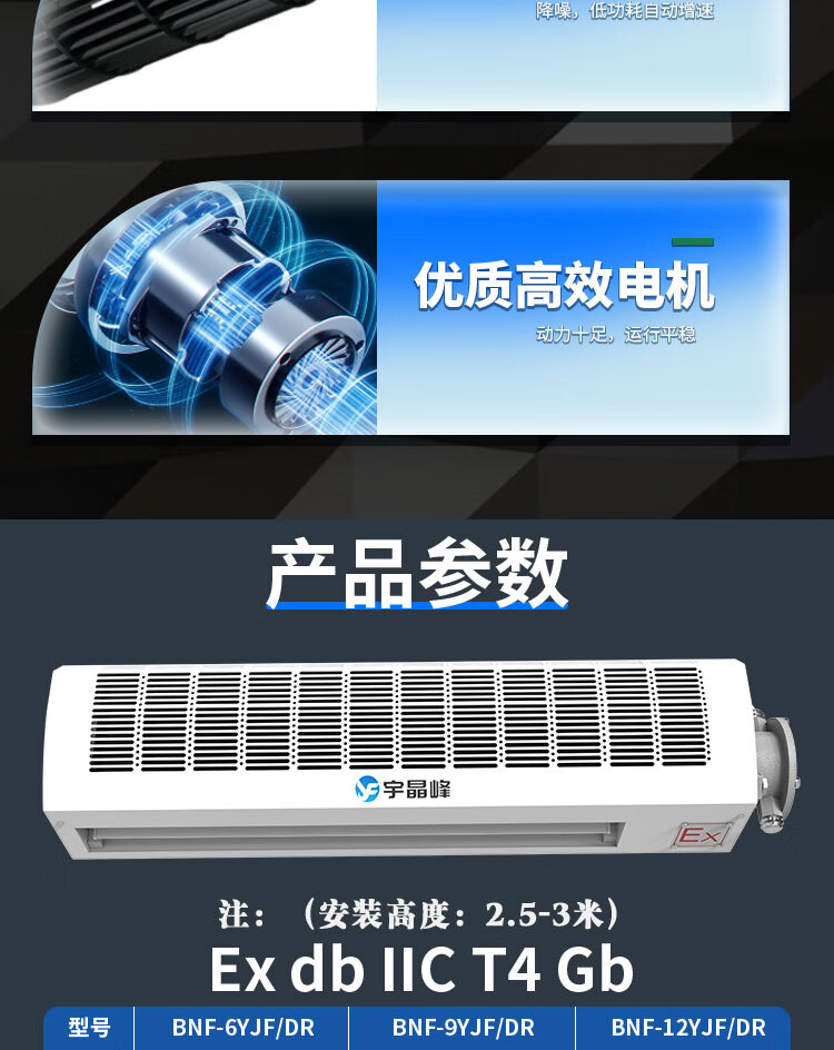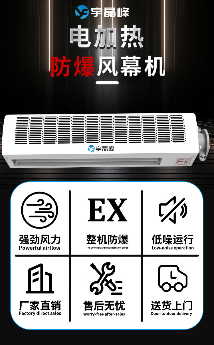 Yujingfeng explosion-proof air curtain electromechanical heating DR type industrial cooling and heating door air curtain laboratory air curtain machine cold storage door special air damper custom commercial air isolator household oil explosion-proof air curtain electromechanical heating DR type customized gold