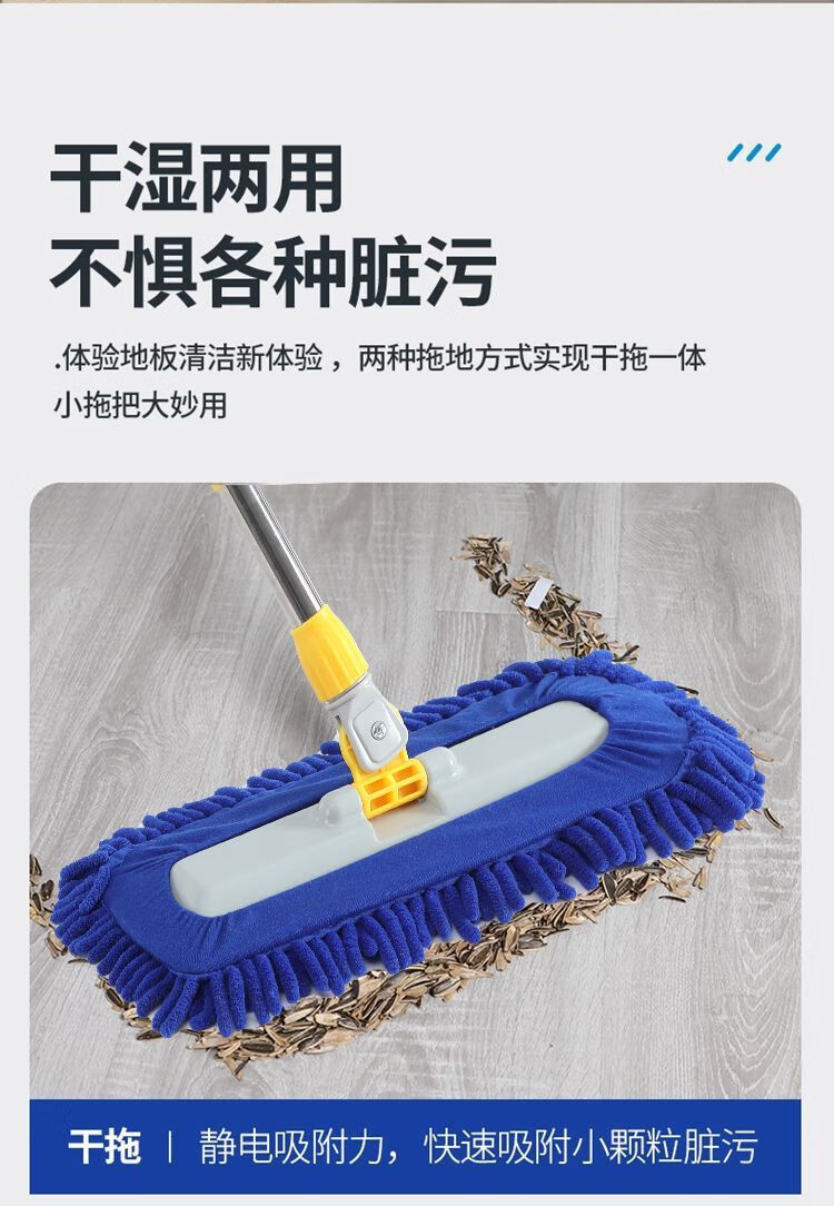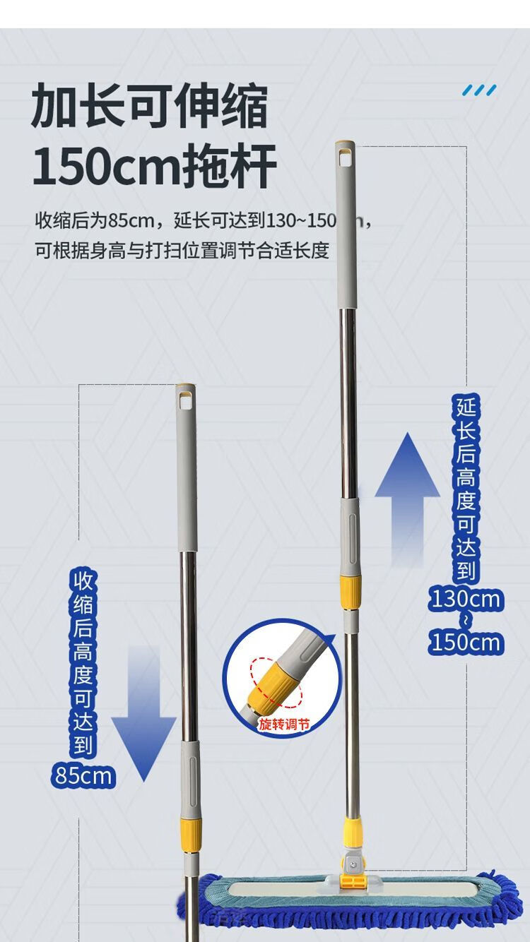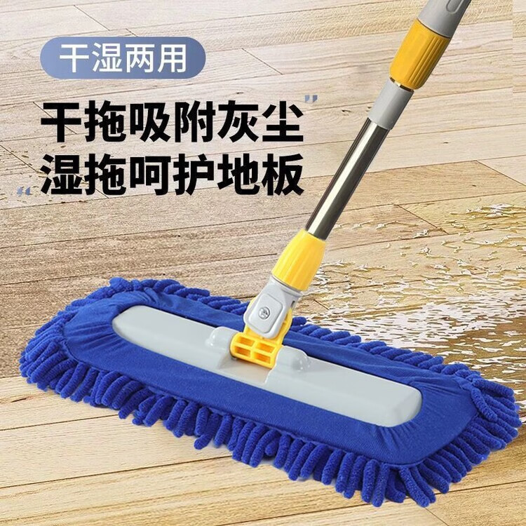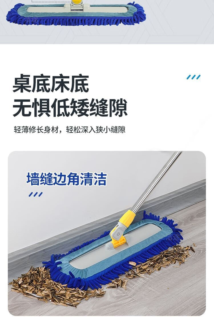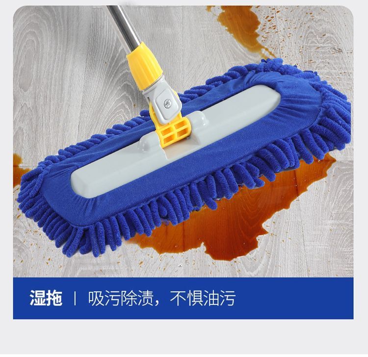 Caterpillar mop chenille flat household water-absorbent large one-mop wooden floor tile wet mopping artifact blue Say goodbye to bending down and laborious. 50CM easy and labor-saving 150CM telescopic rod + one cloth