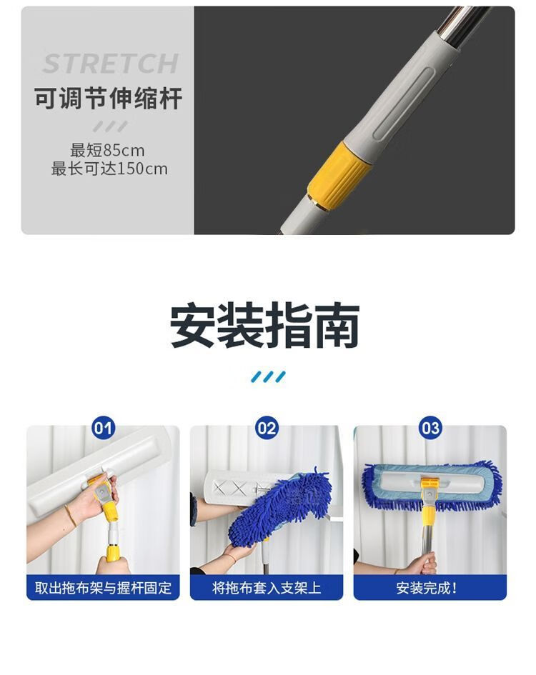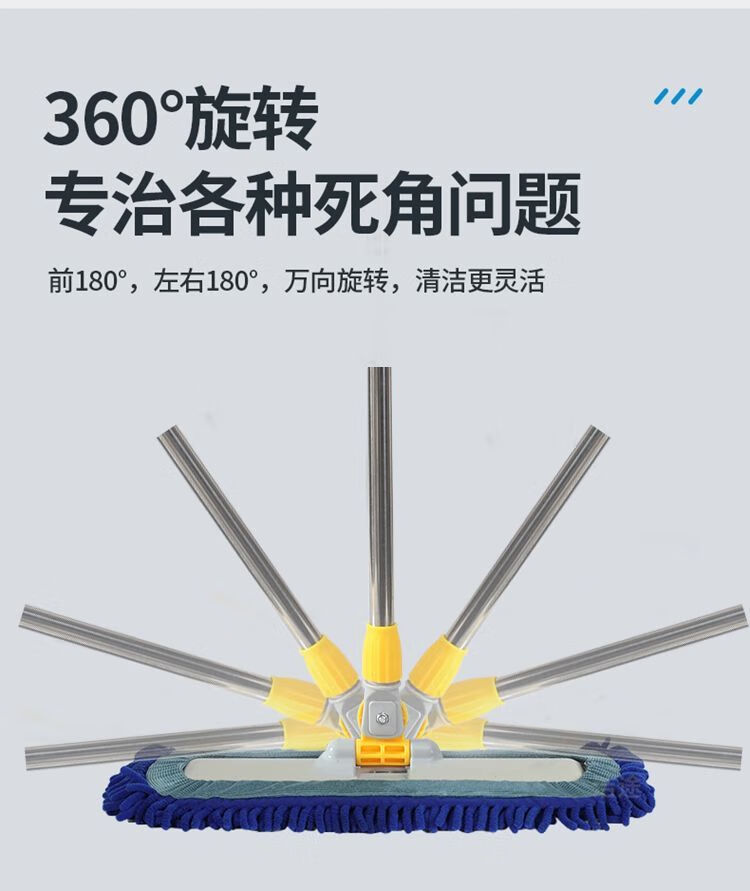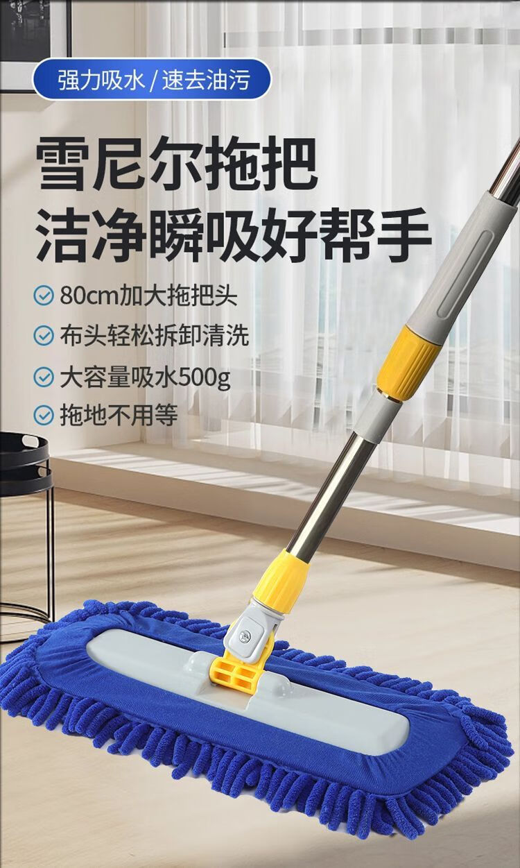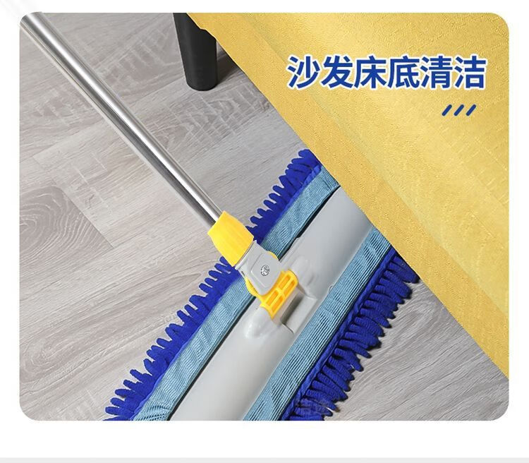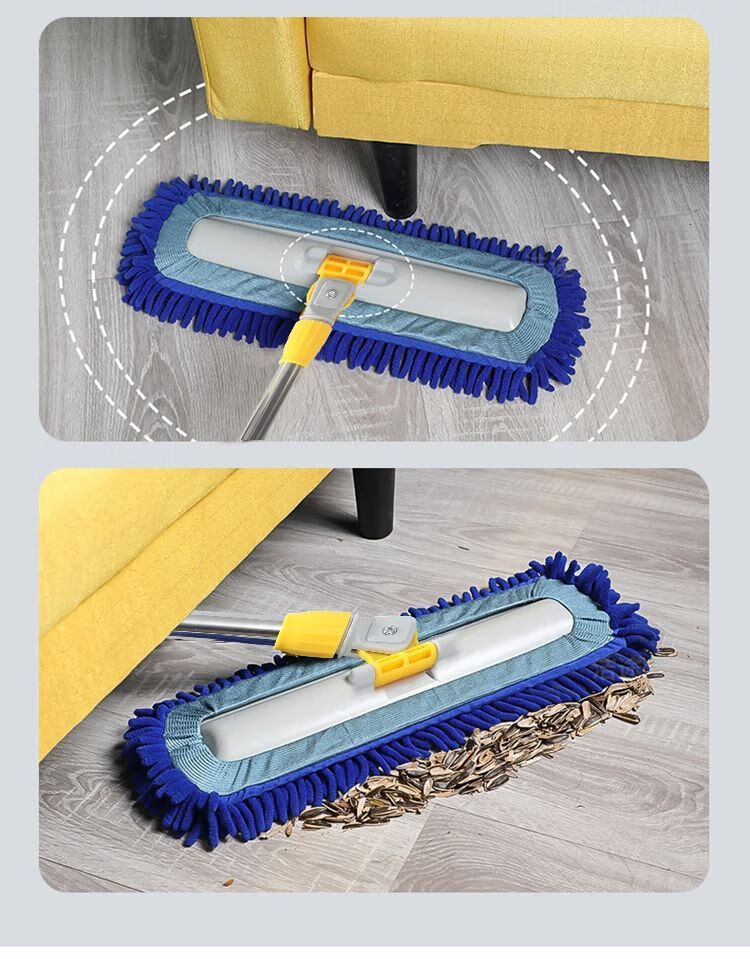 Caterpillar mop chenille flat household water-absorbent large one-mop wooden floor tile wet mopping artifact blue Say goodbye to bending down and laborious. 50CM easy and labor-saving 150CM telescopic rod + one cloth