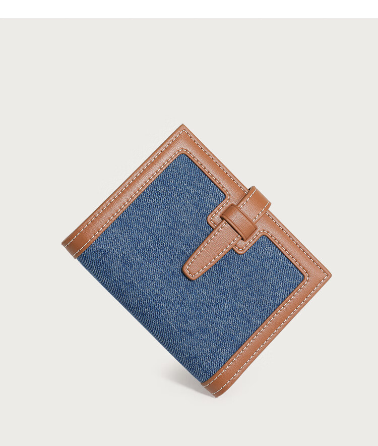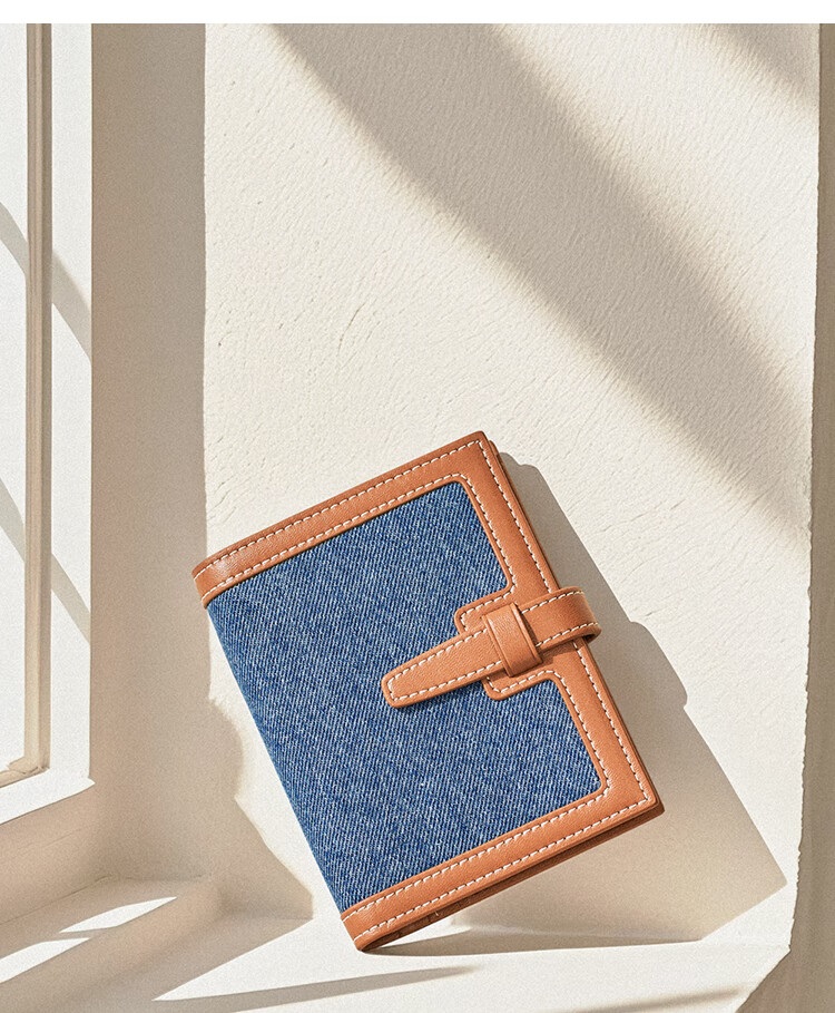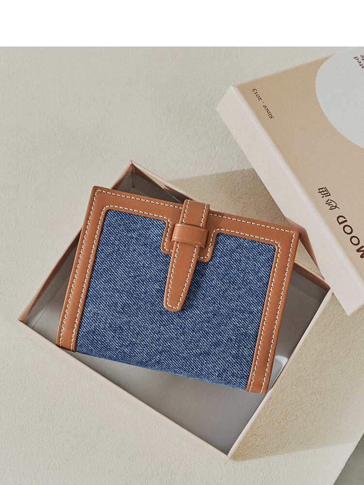 Miaodi Folding Multi-card Slot Denim Denim Storage Coin Purse Niche Simple Large Bill Slot Card Holder Women's Denim Blue