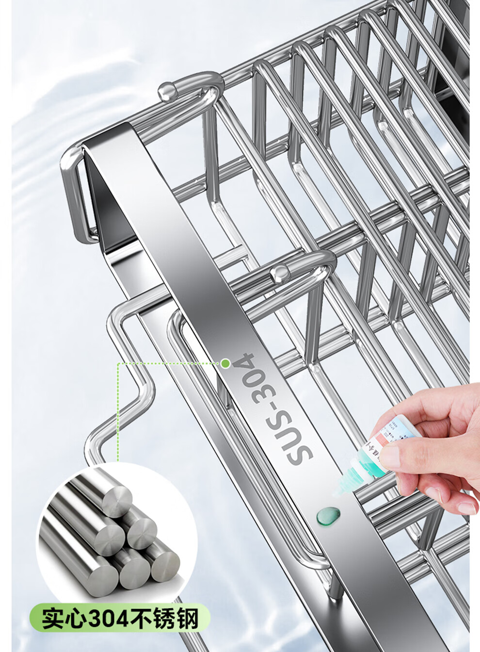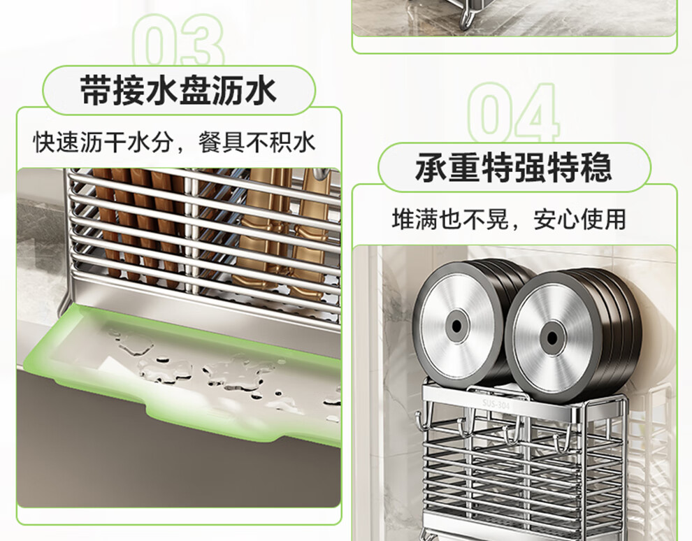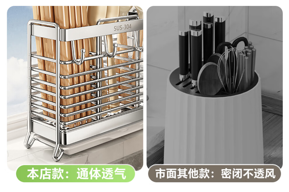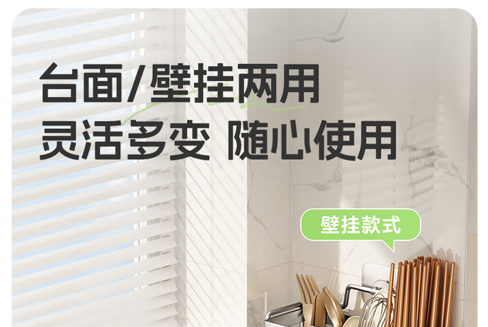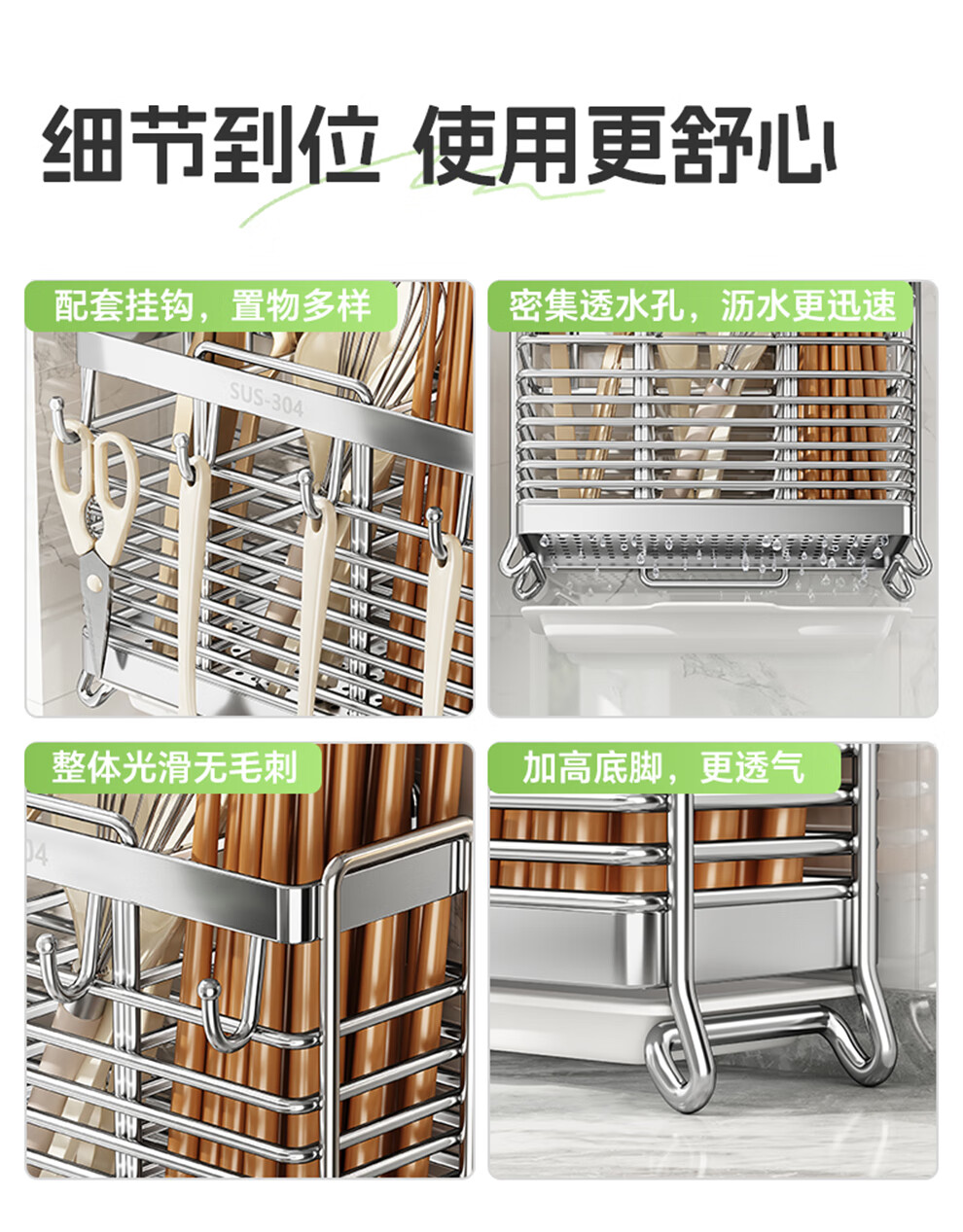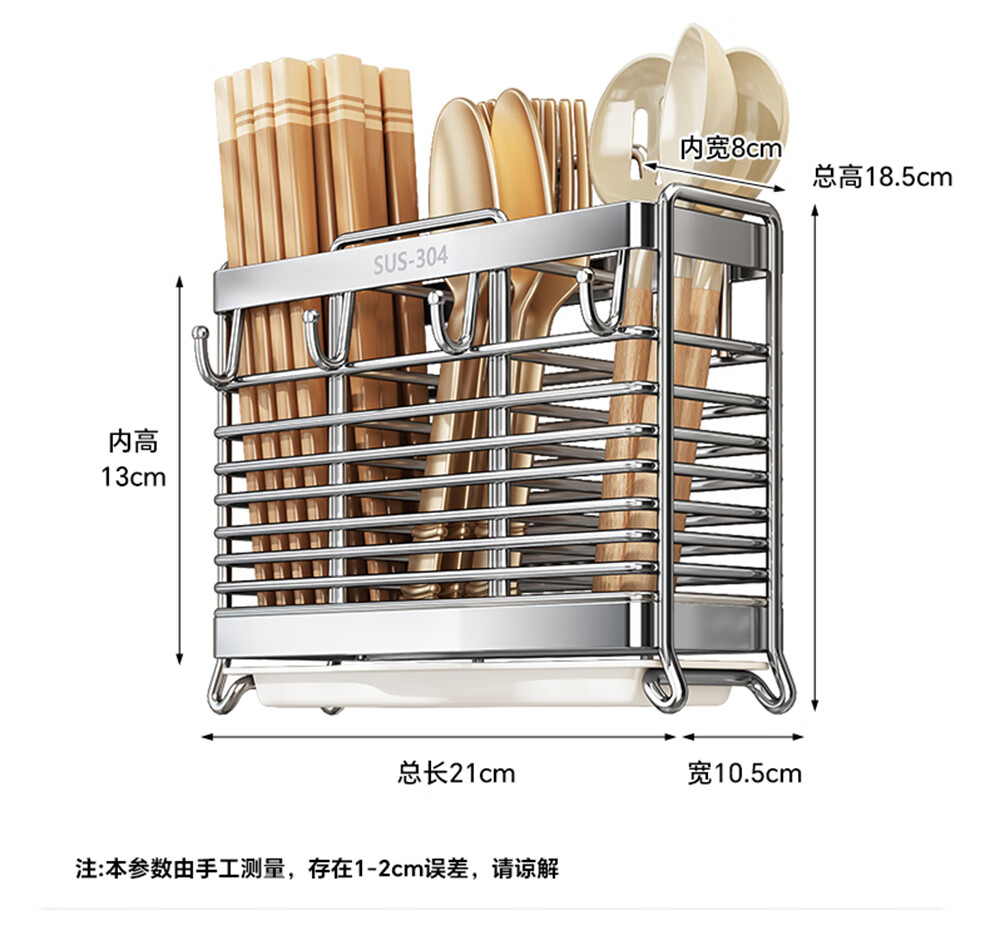 Shuaishi kitchen rack 304 stainless steel chopstick storage box wall-mounted chopstick barrel free punching and draining chopstick cage rack upgraded solid 304 3 compartments storage + 4 hooks