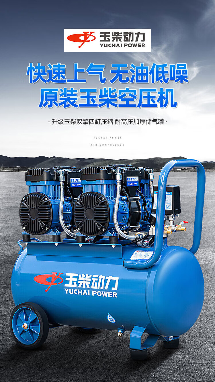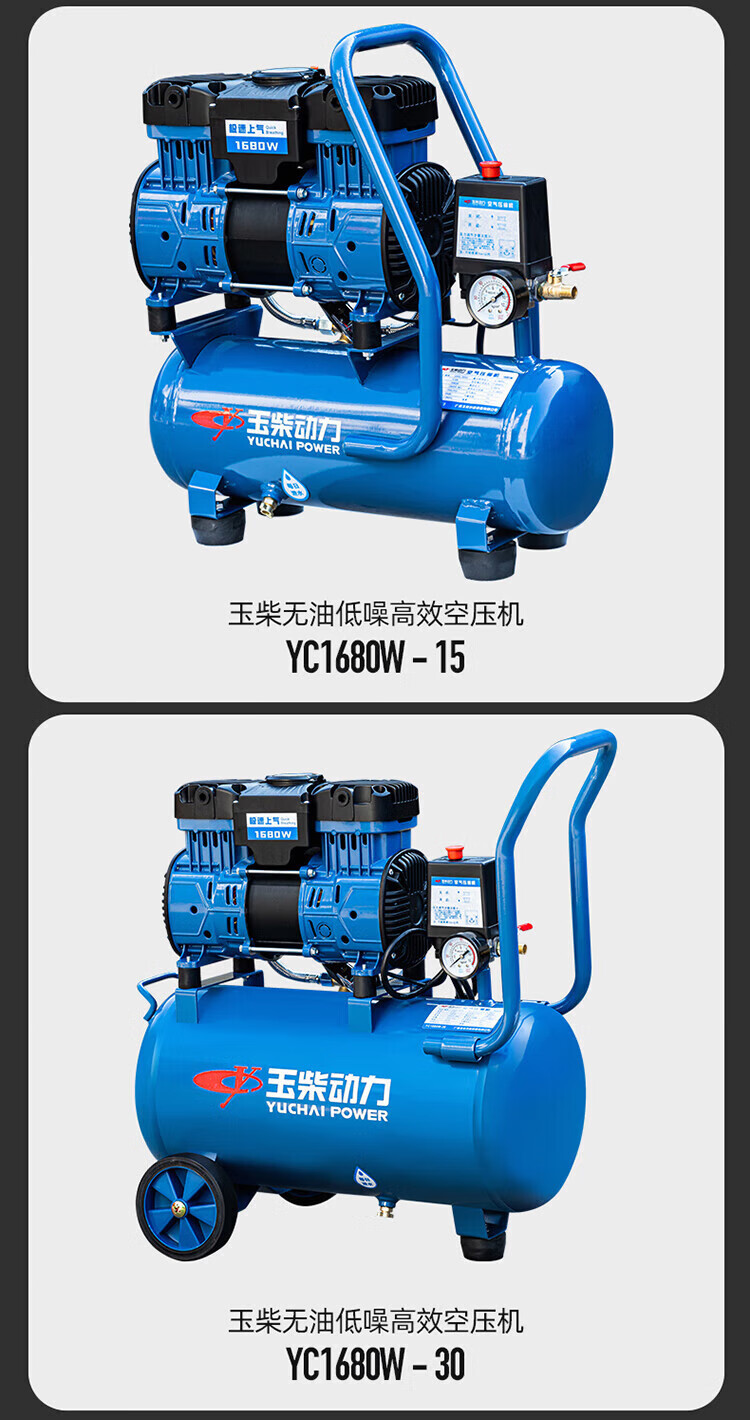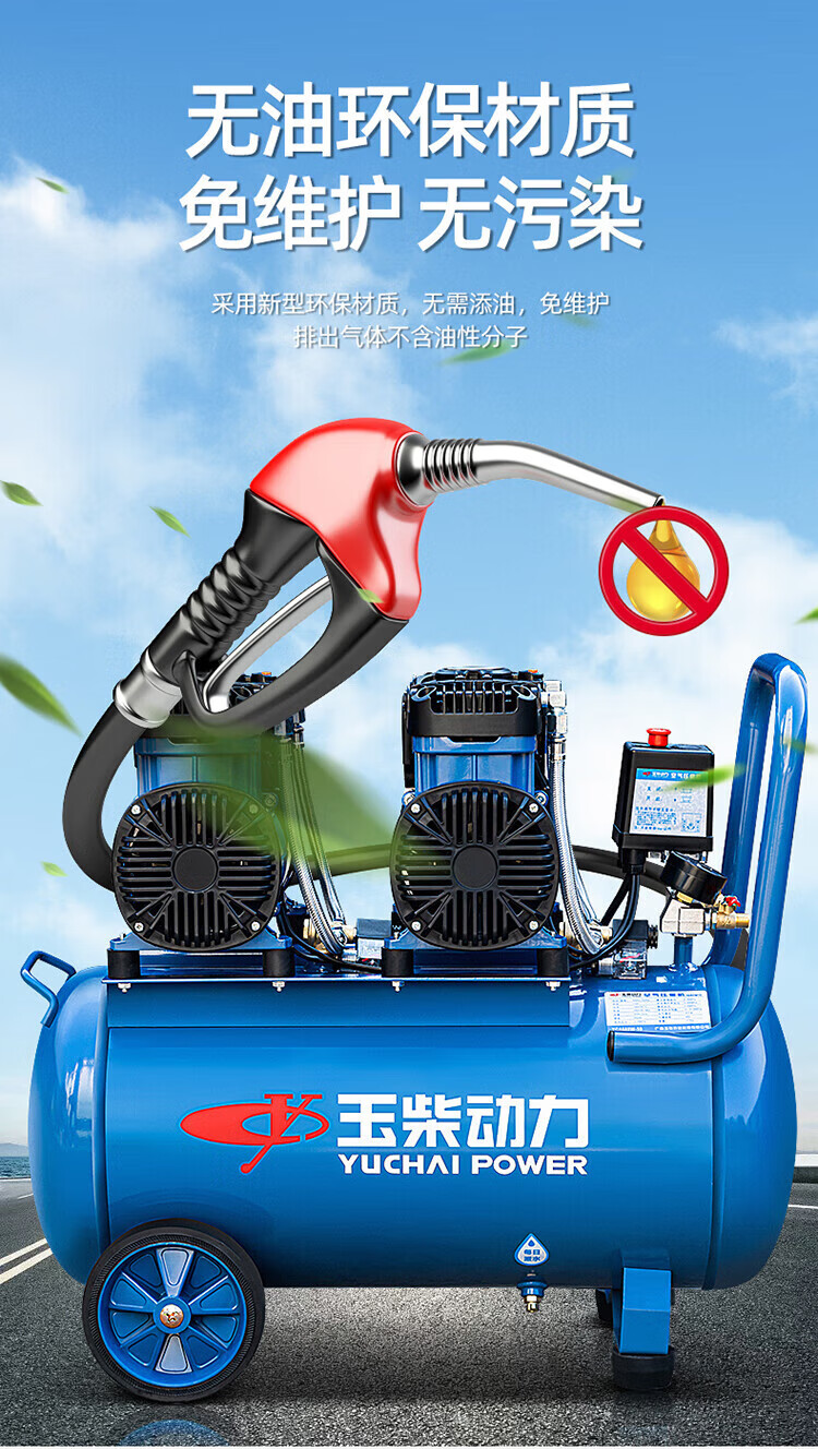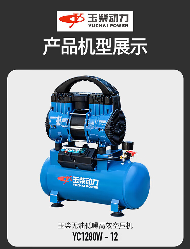 Yuchai Power (YUCHAI POWER) Yuchai air compressor bass oil-free small air pump industrial grade air Yuchai bass oil-free air compressor 12L