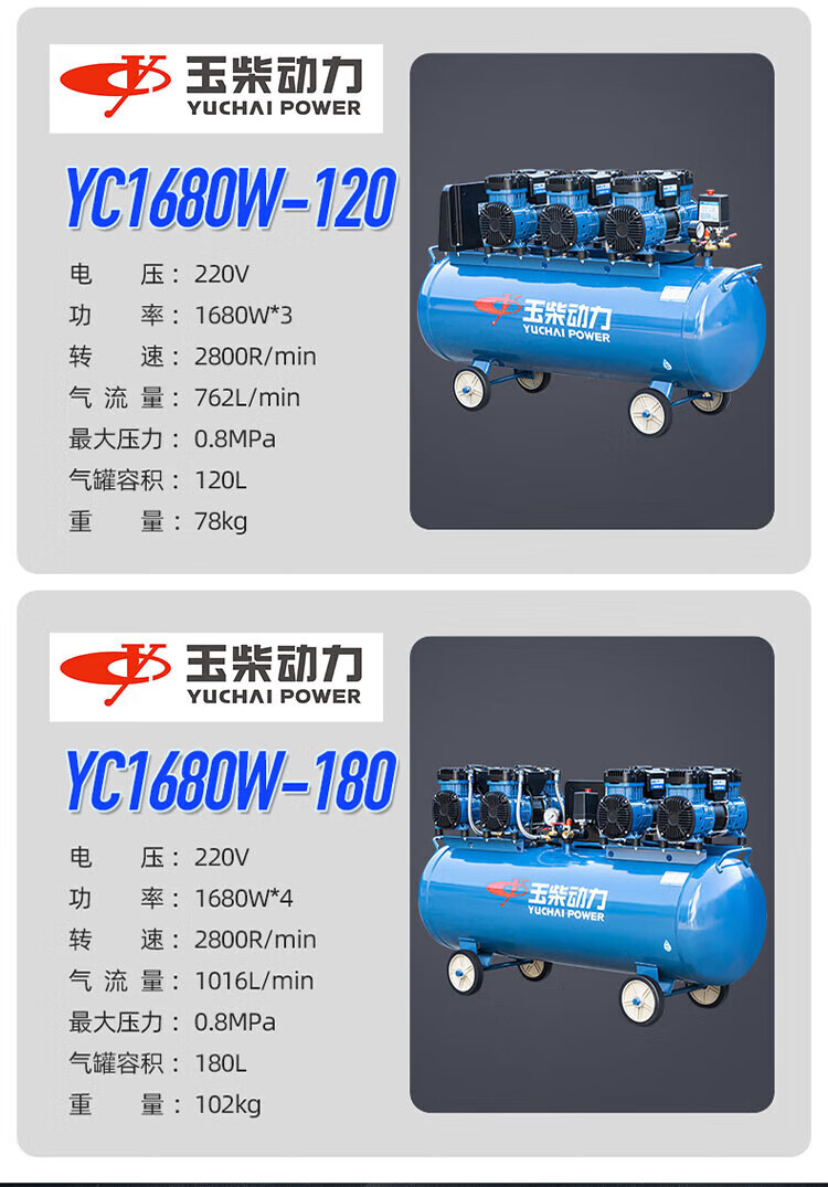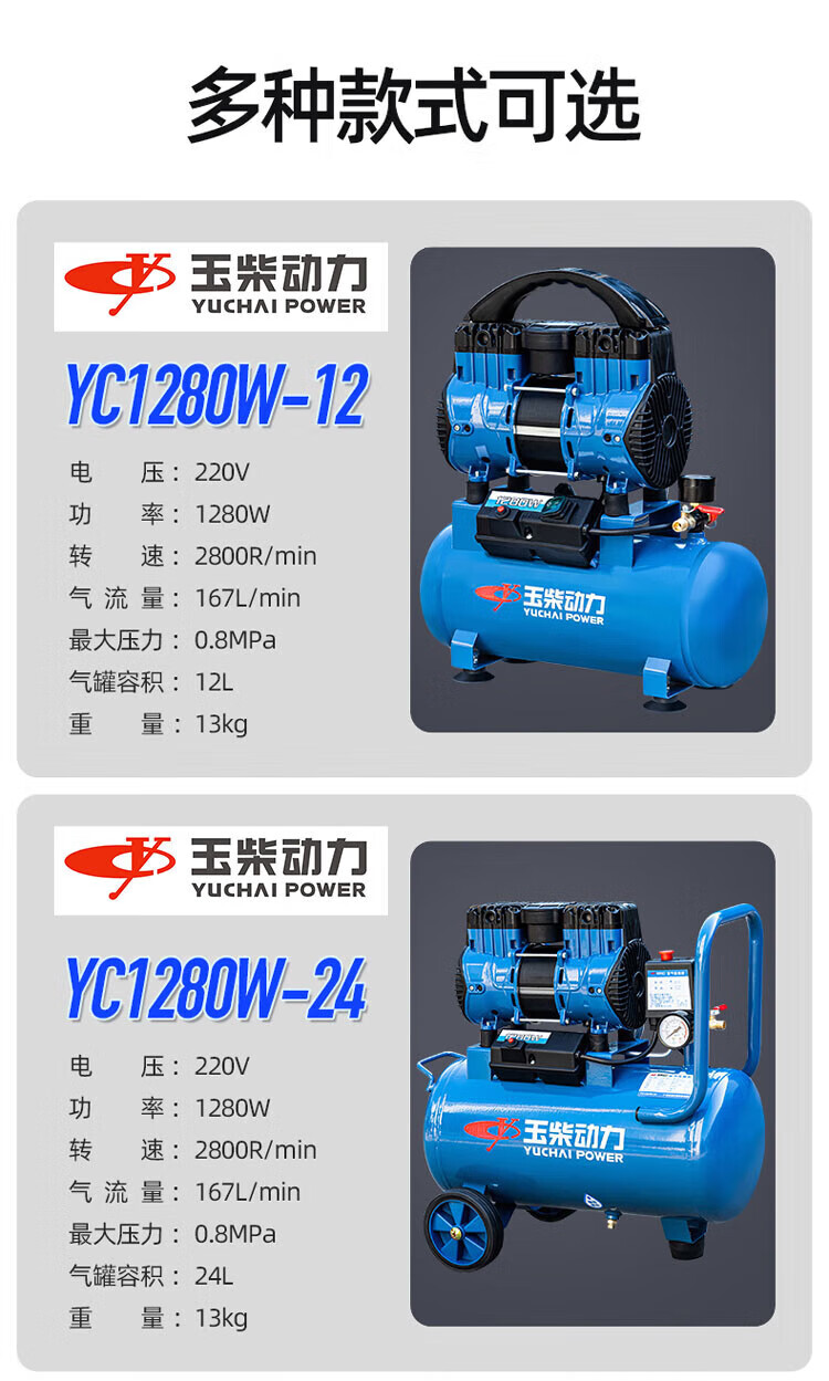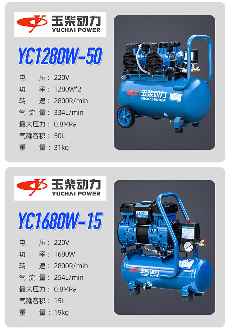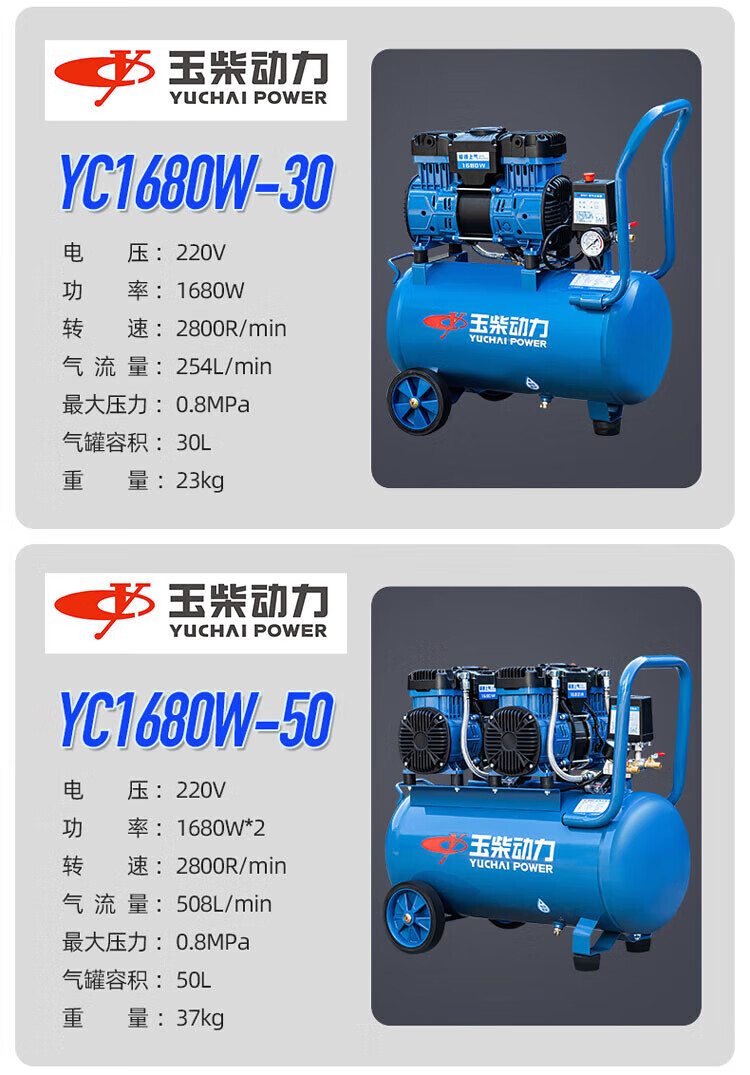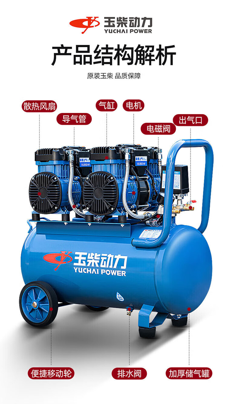 Yuchai Power (YUCHAI POWER) Yuchai air compressor bass oil-free small air pump industrial grade air Yuchai bass oil-free air compressor 12L