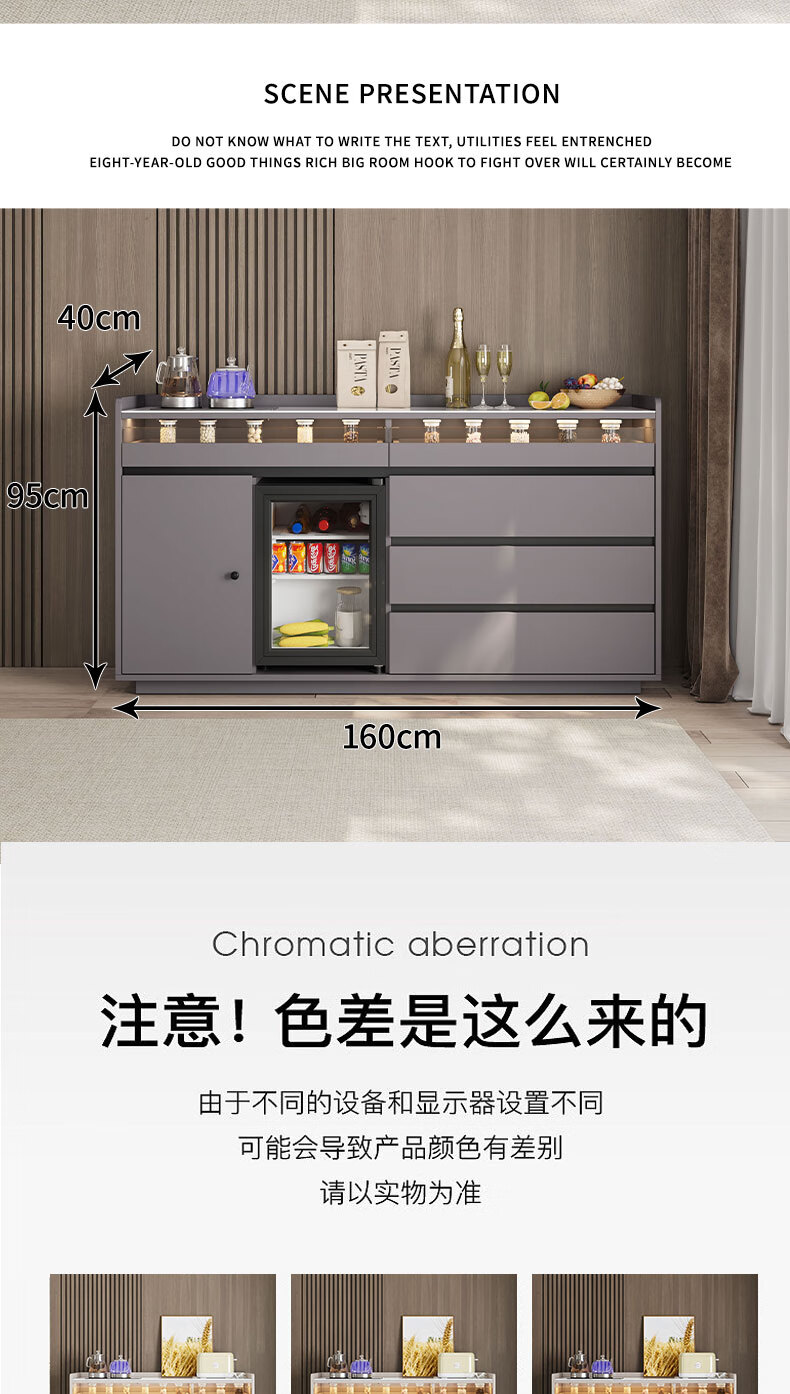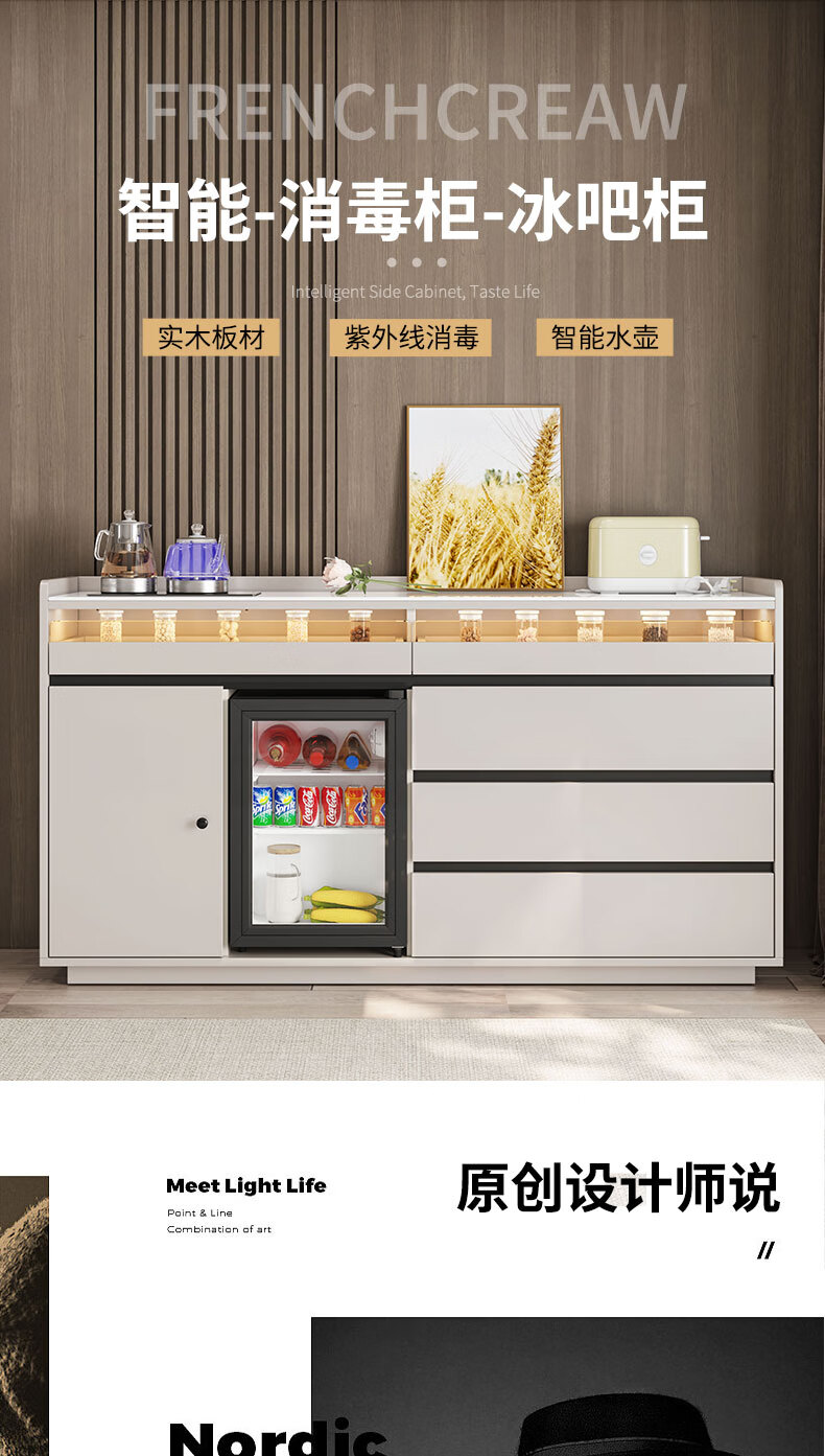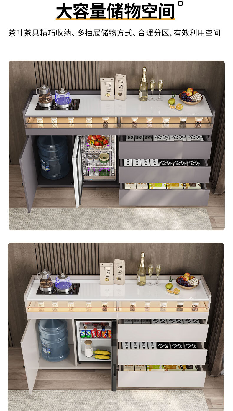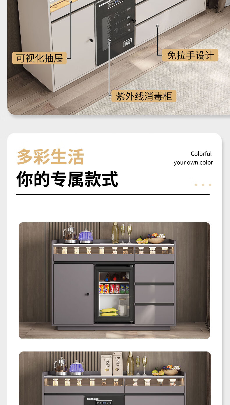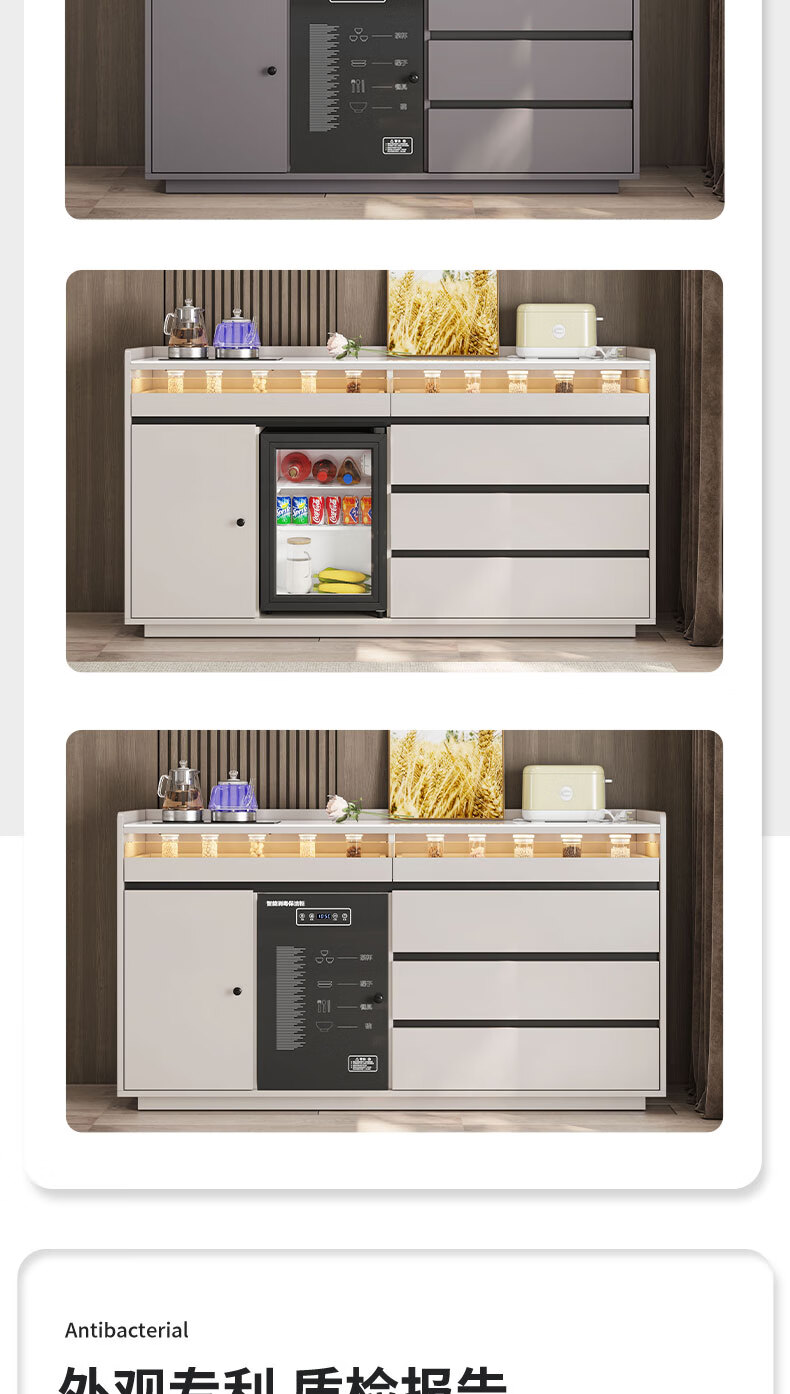 Jingjiangshu tea bar machine with refrigerator integrated cabinet smart ice bar cabinet 2025 new home dining side cabinet small disinfection cabinet gray solid wood tea bar machine 1.6 meters long with ice bar thermostatic kettle 2-3 doors