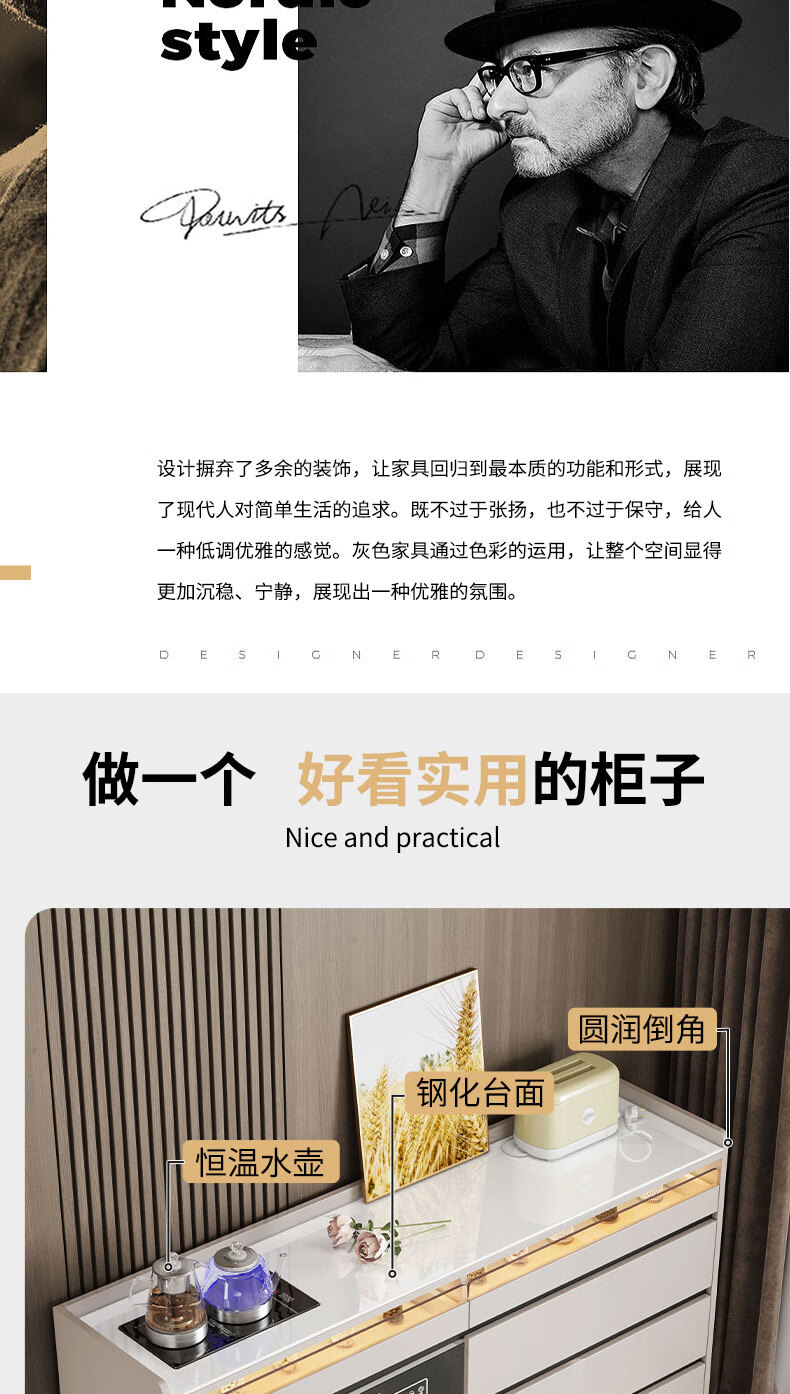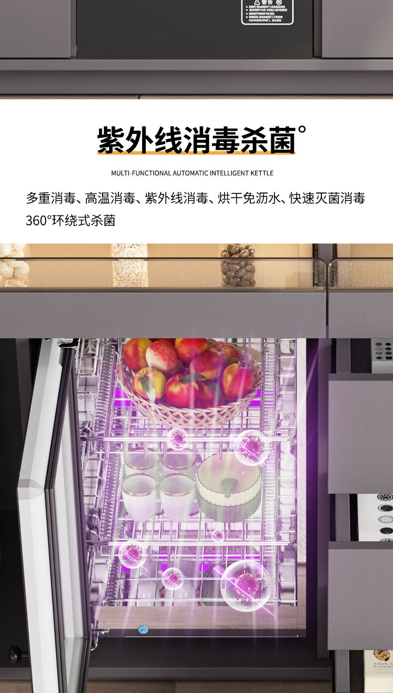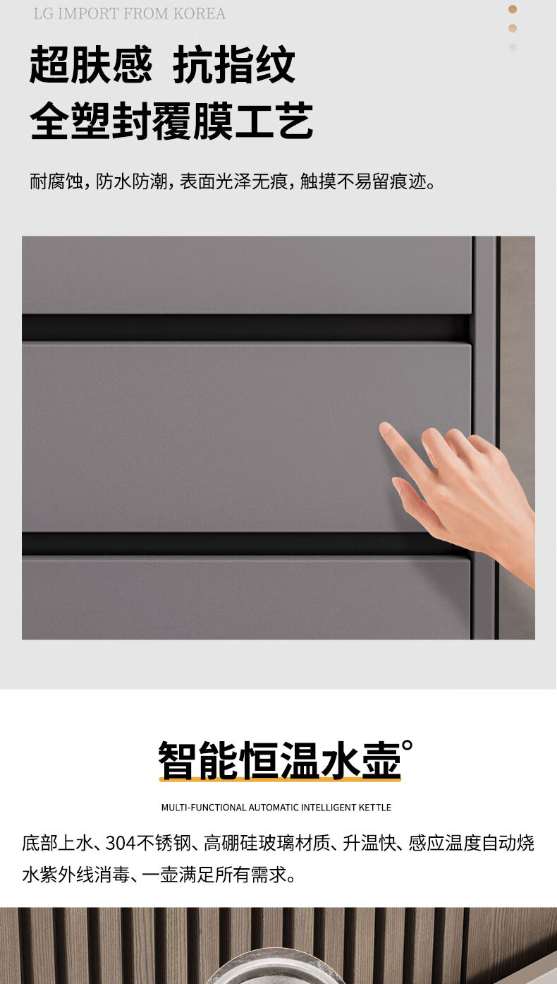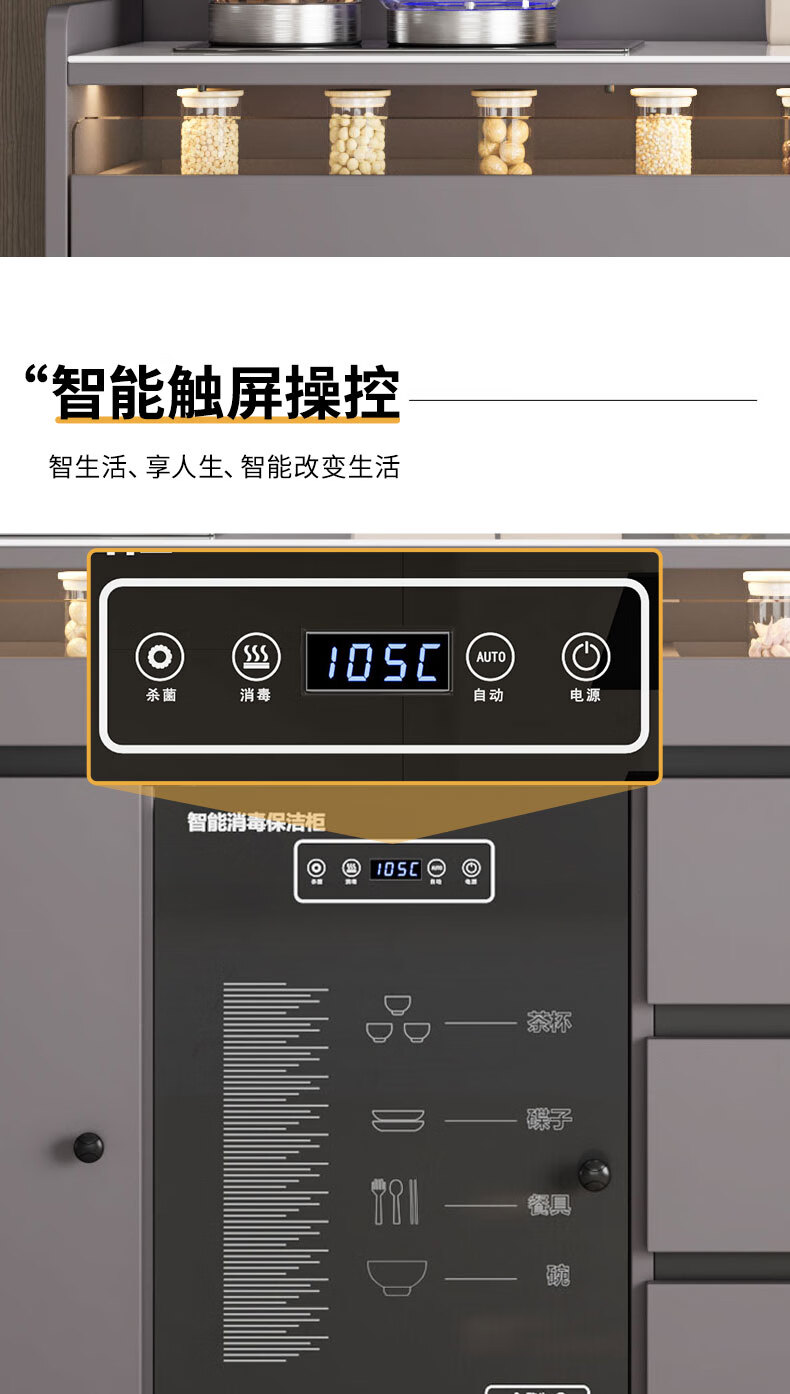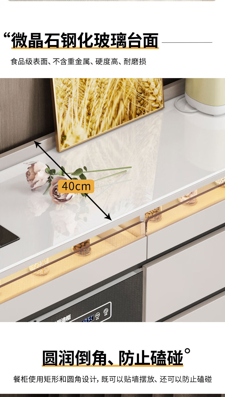 Jingjiangshu tea bar machine with refrigerator integrated cabinet smart ice bar cabinet 2025 new home dining side cabinet small disinfection cabinet gray solid wood tea bar machine 1.6 meters long with ice bar thermostatic kettle 2-3 doors