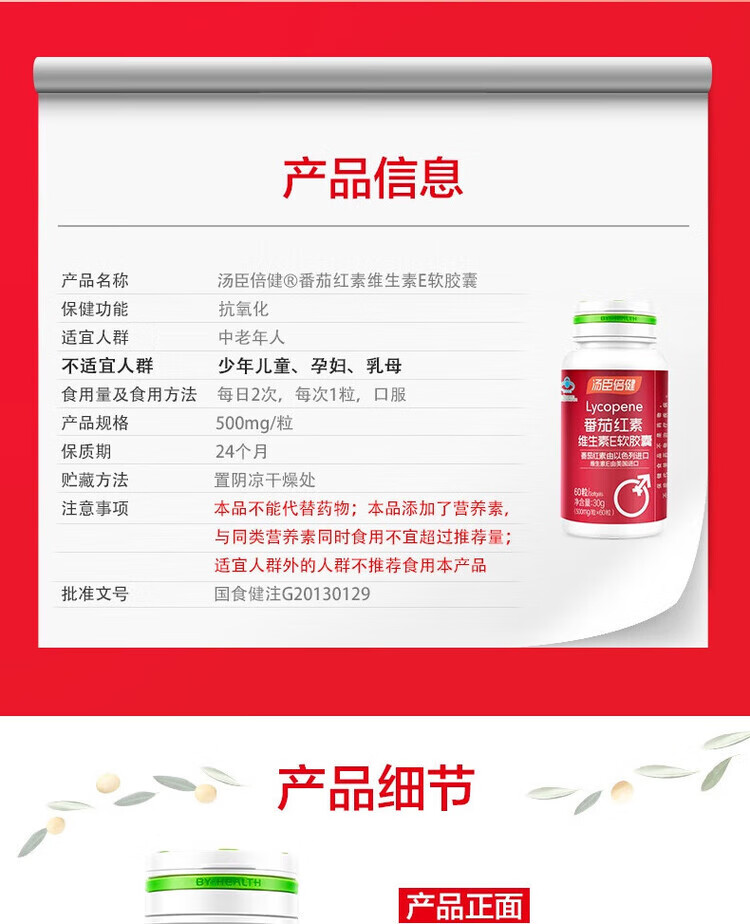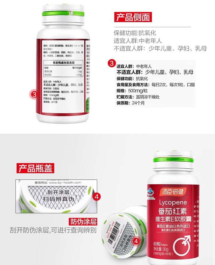 Tomson By-Health Lycopene Vitamin E Soft Capsules 60 Men's Antioxidant 60 Capsules One Bottle New Validity 2 Bottles 120 Capsules Discount Pack
