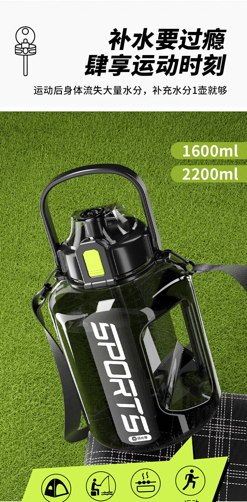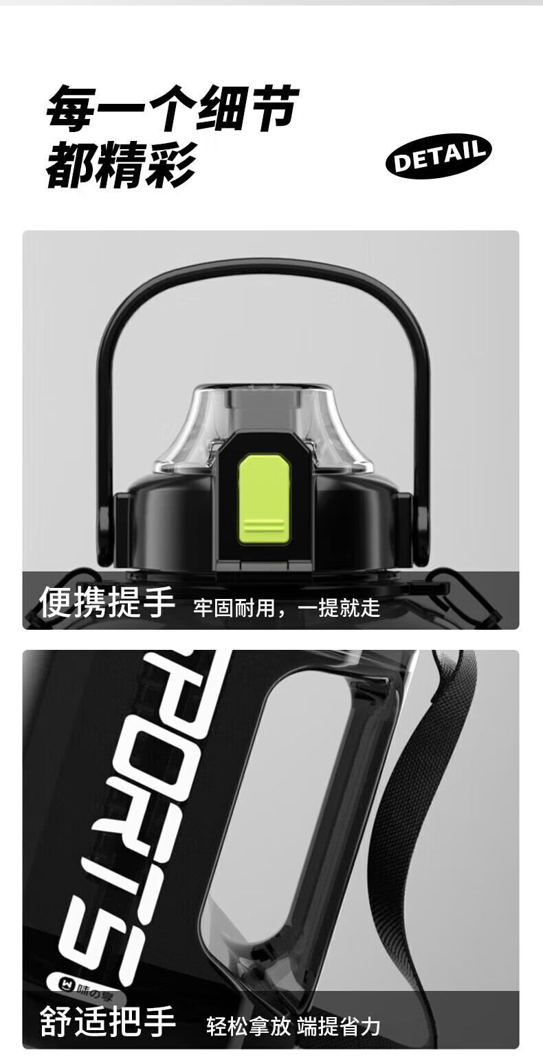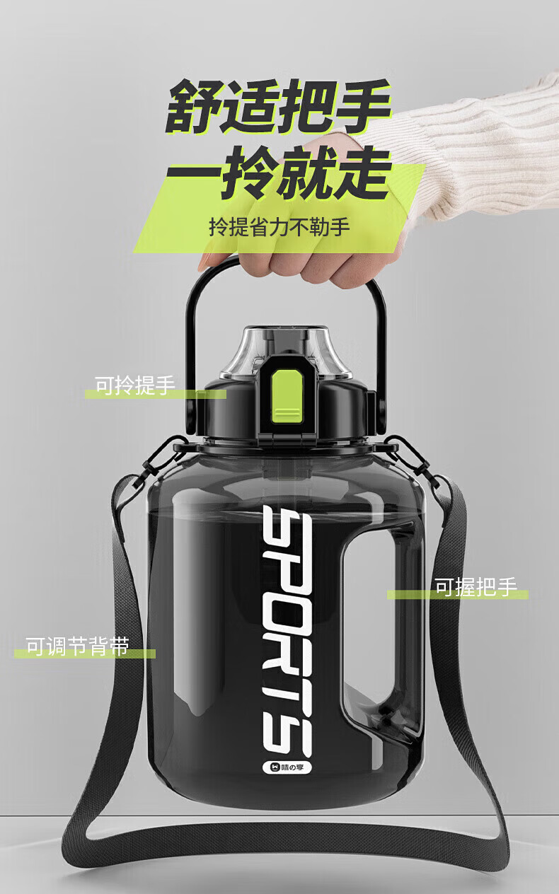 SUPOR Water Cup Large Large Capacity 2025 New Men's Sports Water Bottle Ton Bucket Space Cup Dayton Bucket Big Belly Cup Strap Anti-scalding Sports Black Can Hold 3.0L
