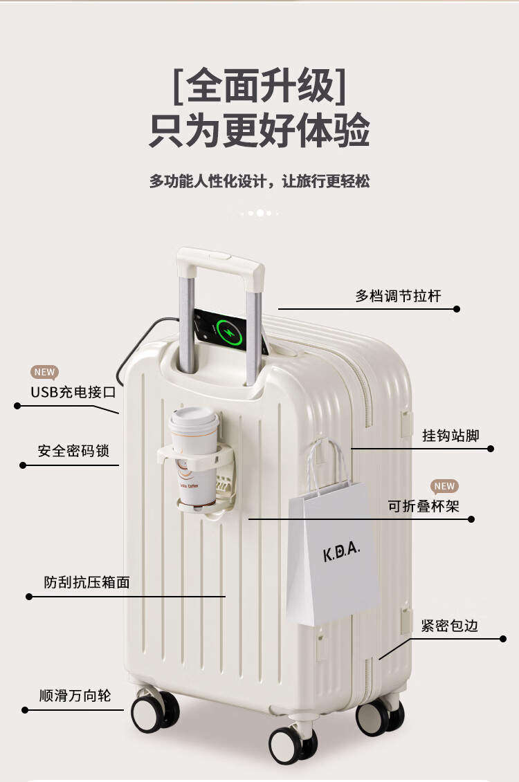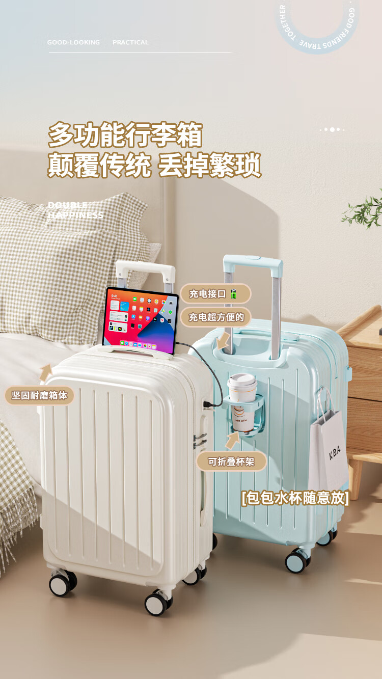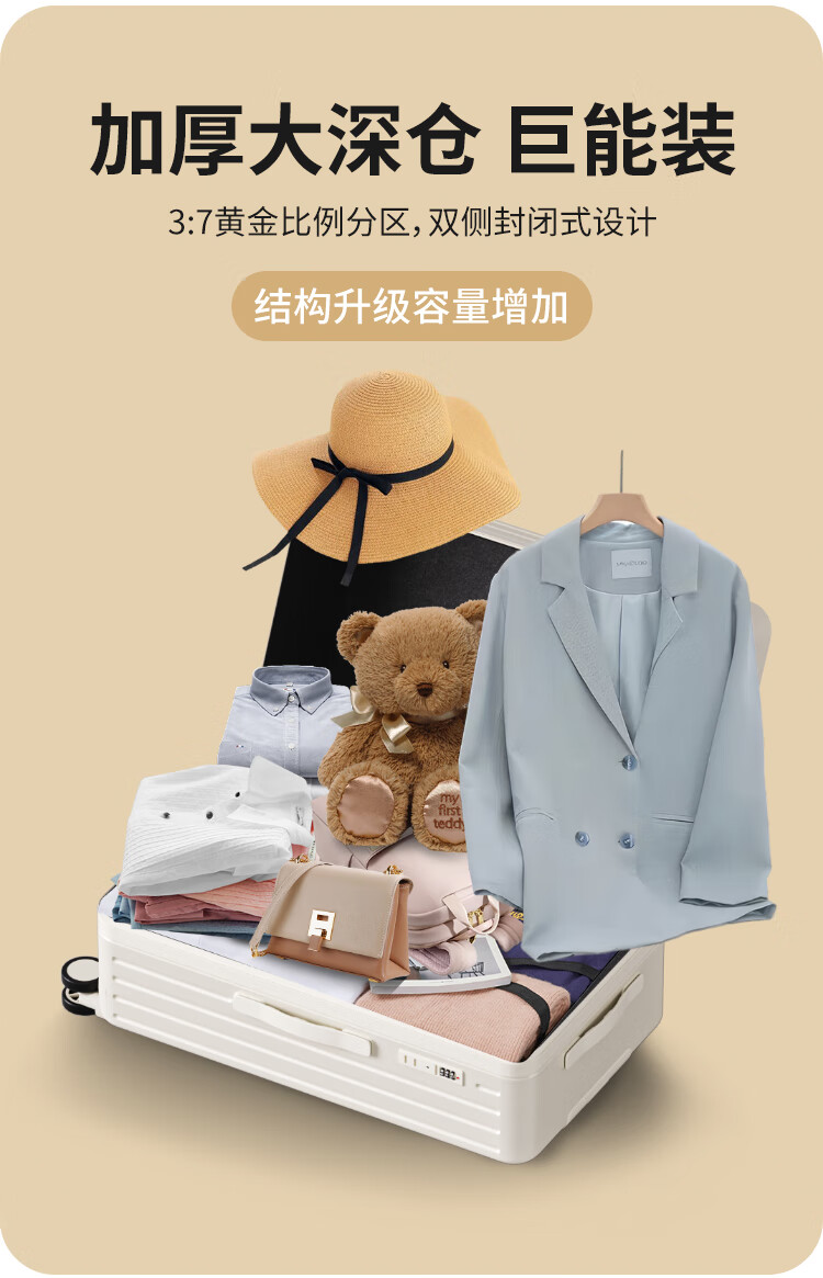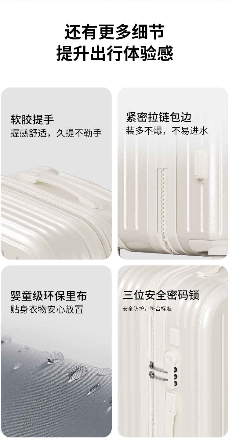 Bamboo Mink Luggage Women's 2025 New Trolley Case Small Boarding Case Male Student Large Capacity Password Box Suitcase Leather Case Shell White Practical Upgraded 20-inch Small Boarding Case