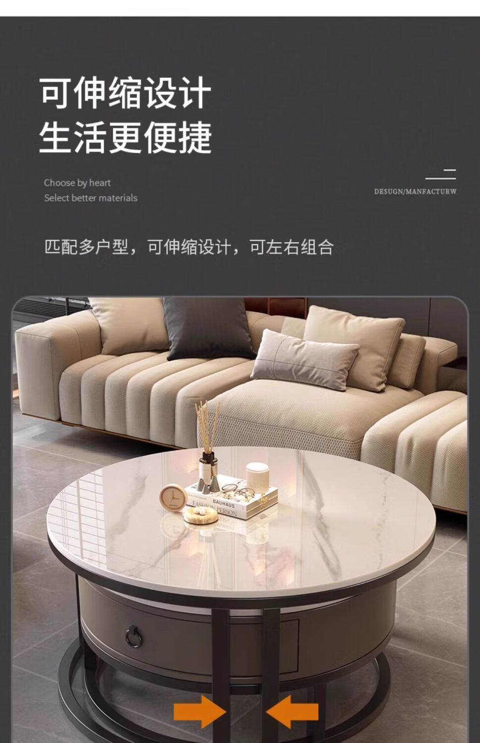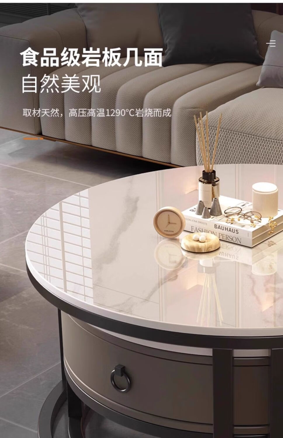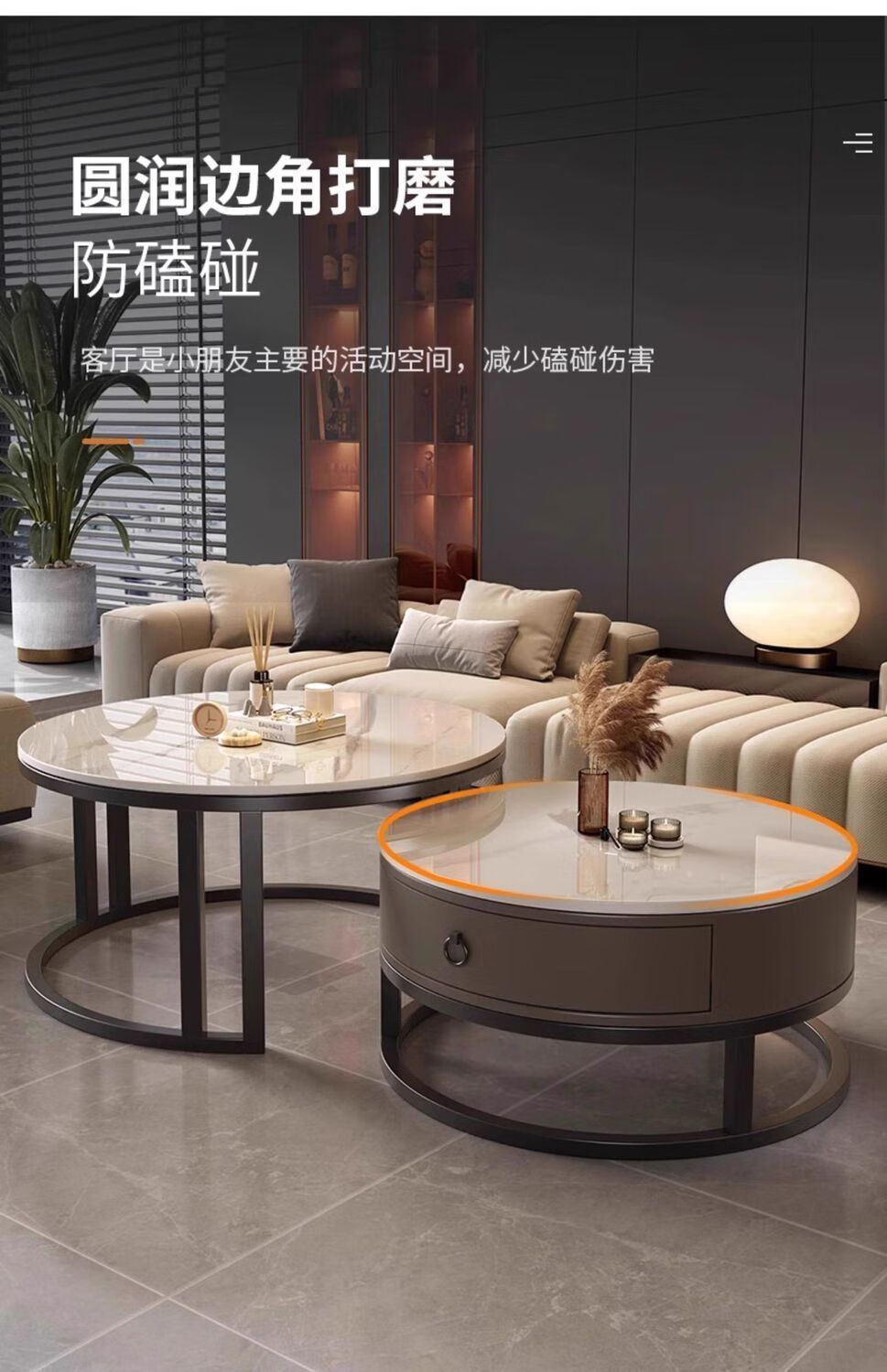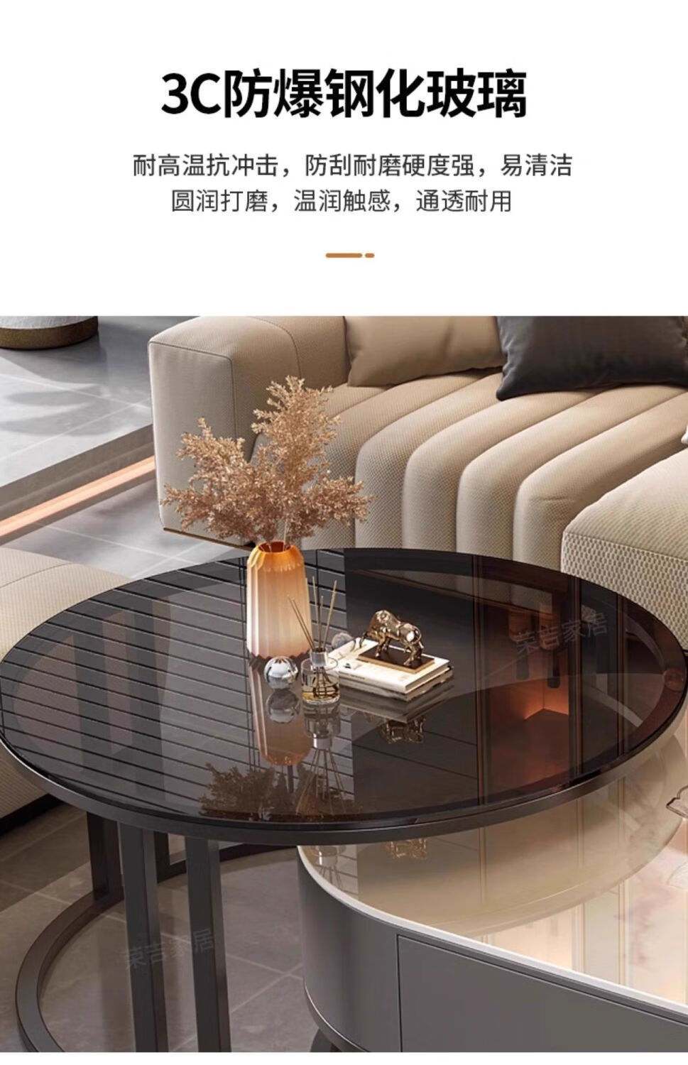 Yusenyi Xinjiang free shipping slate living room home 2025 new small apartment round glass light luxury simple combination coffee table black frame gray cabinet 50 gloss snow mountain white + 70 gloss snow round combination coffee table 卄9mm high gloss slate tabletop