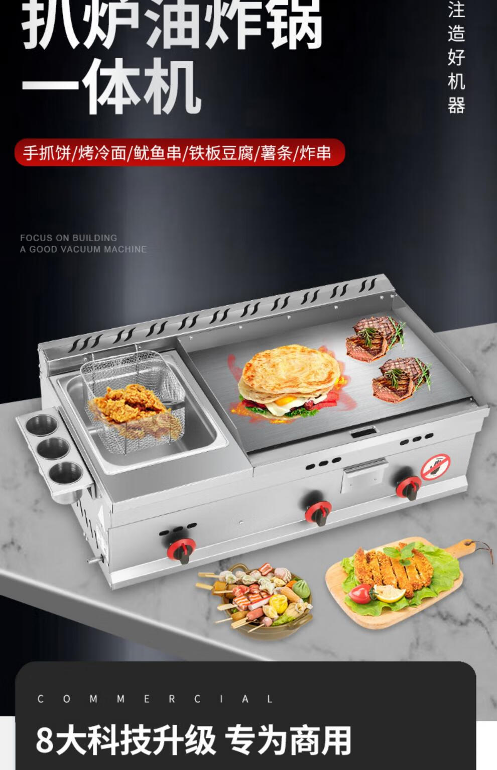 Teppanyaki merchants use hand cake grabbing machines to set up stalls, Teppanyaki fryers, all-in-one griddles, gas fryers, cold noodle machines, 90x50 thickened black iron plate griddles