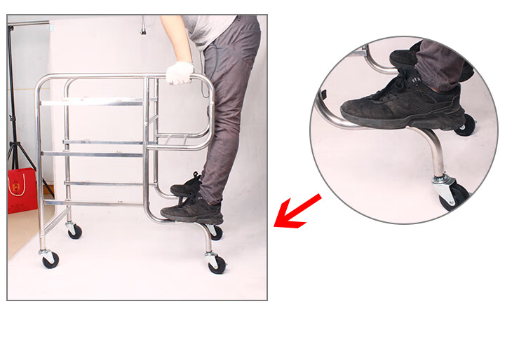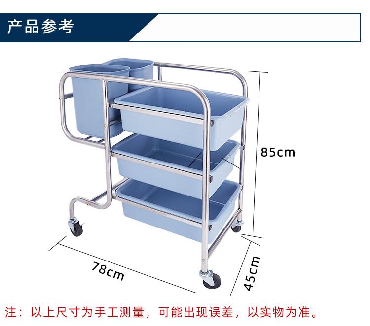 Hotel food collection truck, food removal truck, bowl collection truck with trash can, multi-functional stainless steel restaurant and hotel commercial food delivery truck, thickened round tube straight leg food collection truck with 3 basins and 2 barrels, official standard configuration required