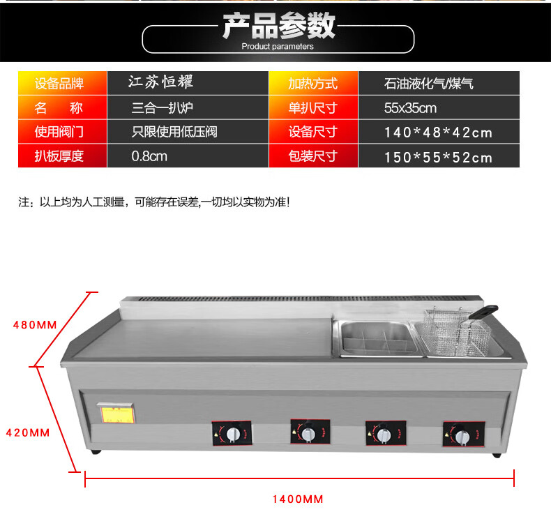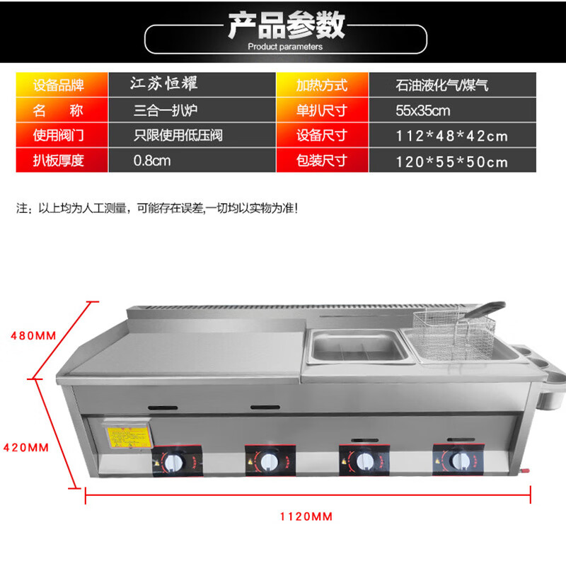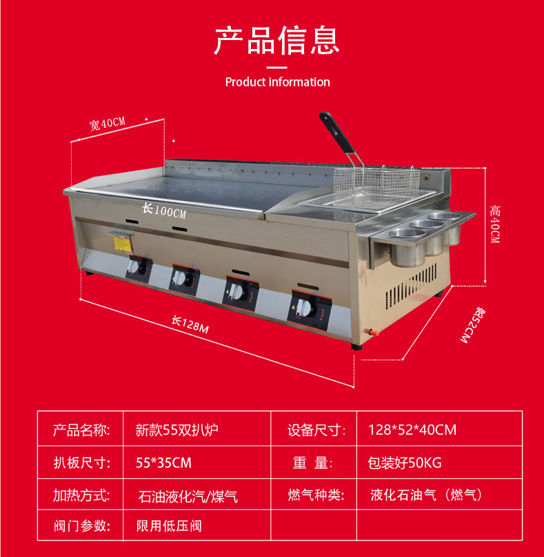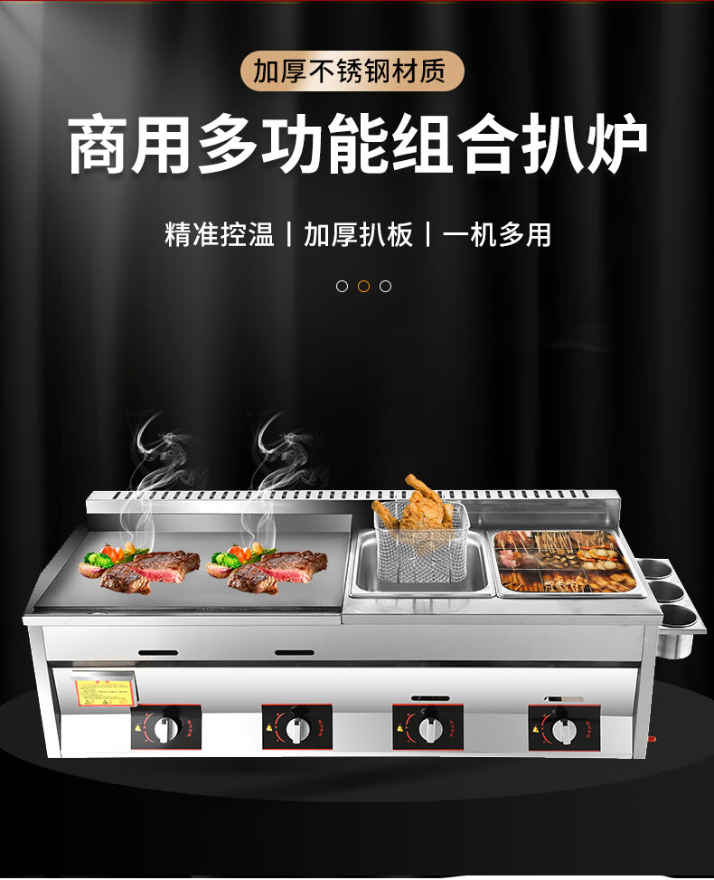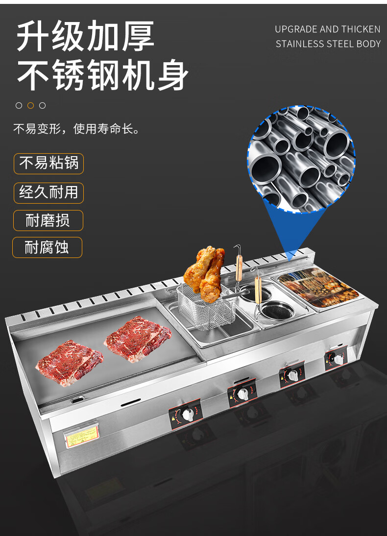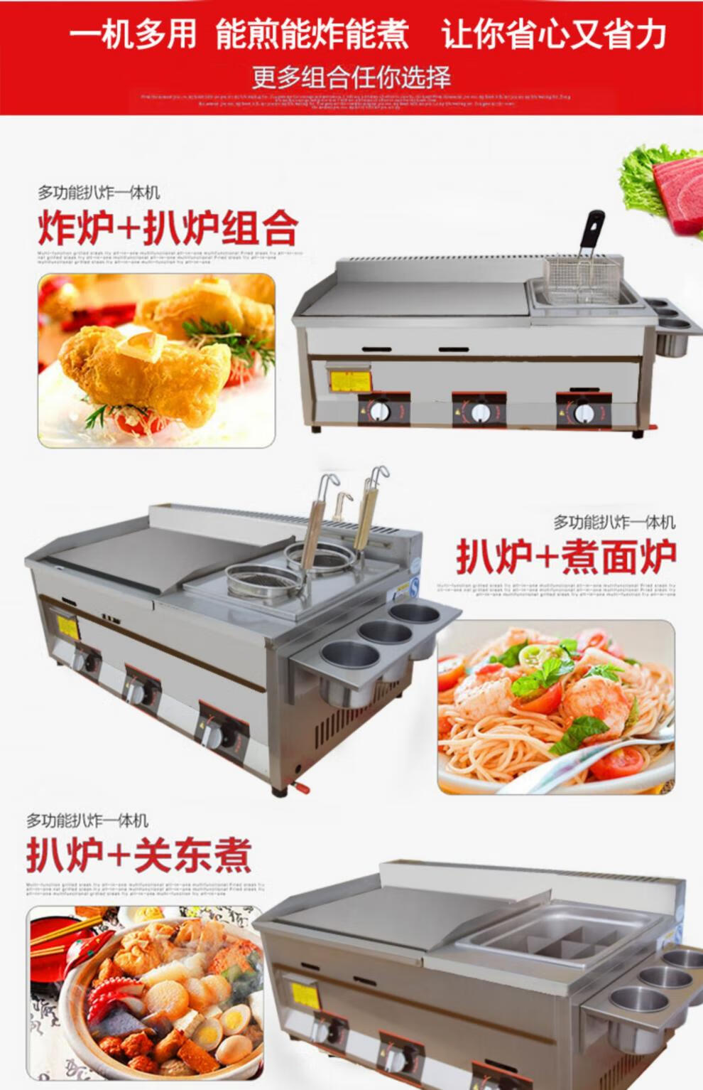 Teppanyaki fryer all-in-one machine commercial stall griddle fryer gas gas hand cake machine cold noodle machine 40 cm 8 mm thick griddle + fryer + oden