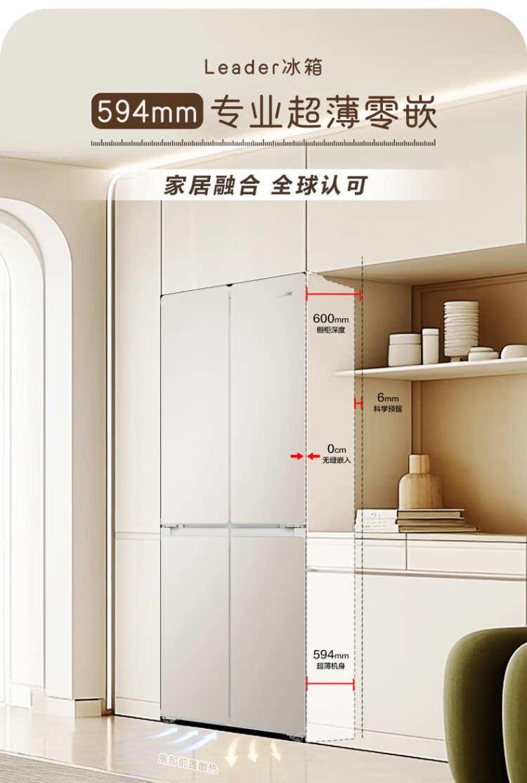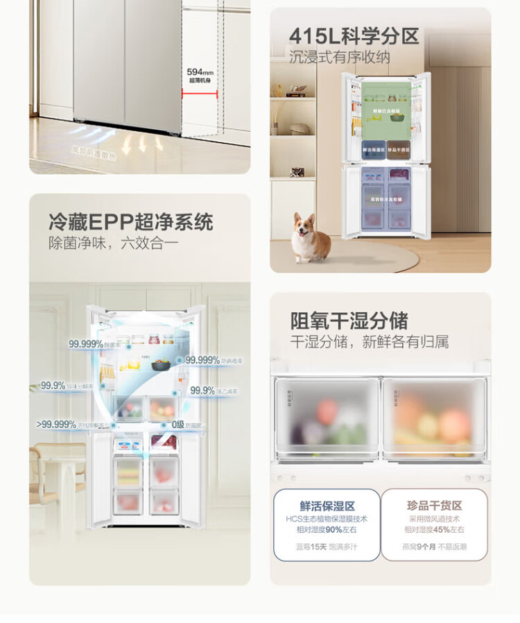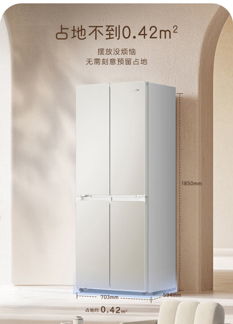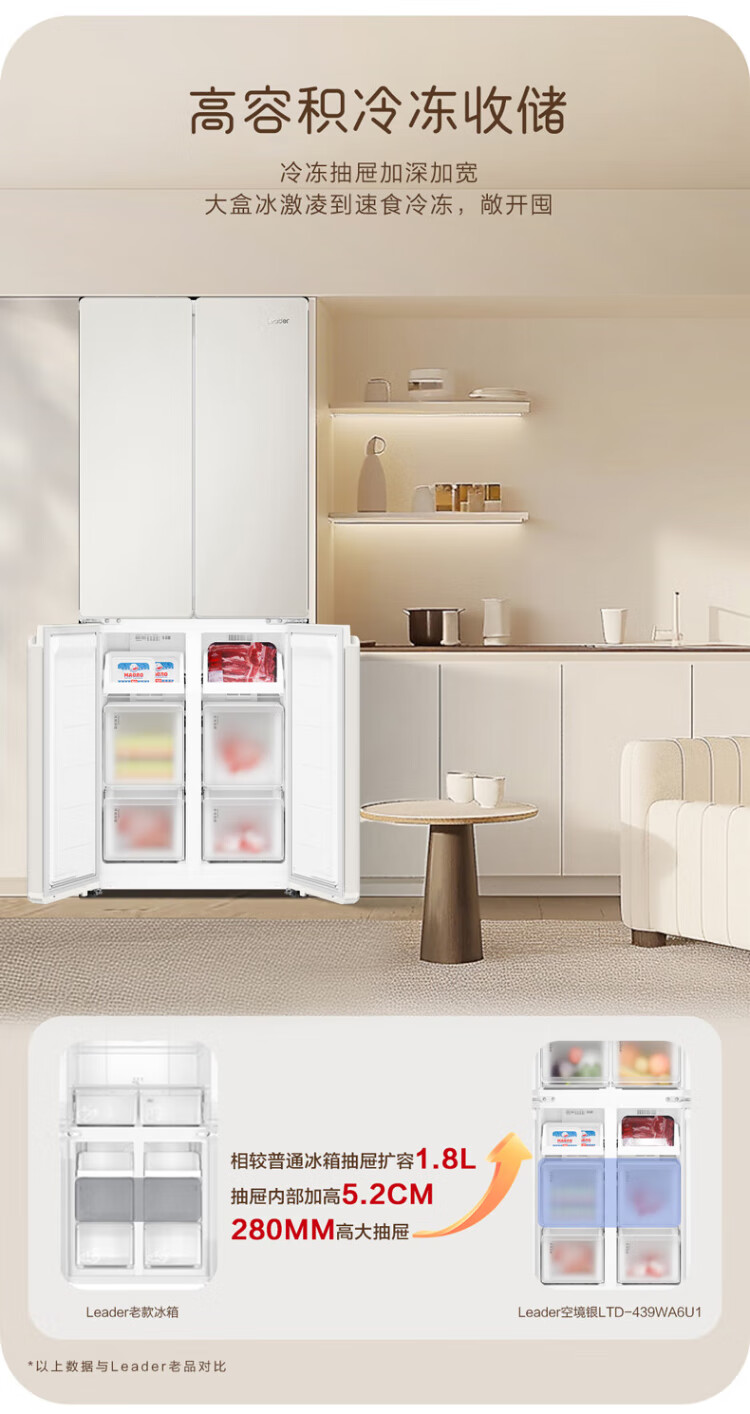 Haier produces Tongshuai Refrigerator 415 liters ultra-thin zero-embedded cross-door four-door double-door first-class energy-efficiency variable frequency air-cooled frost-free smart home refrigerator flagship 439 594mm ultra-thin zero-embedded + EPP ultra-clean system + oxygen-blocking dry and wet storage
