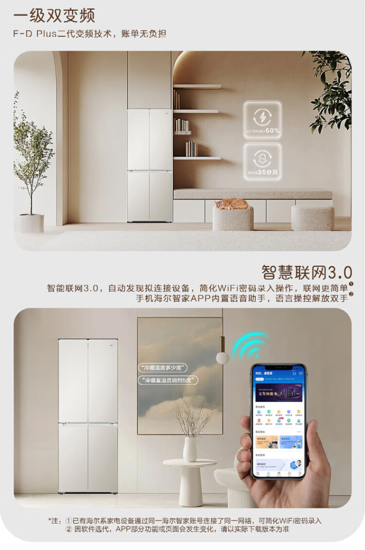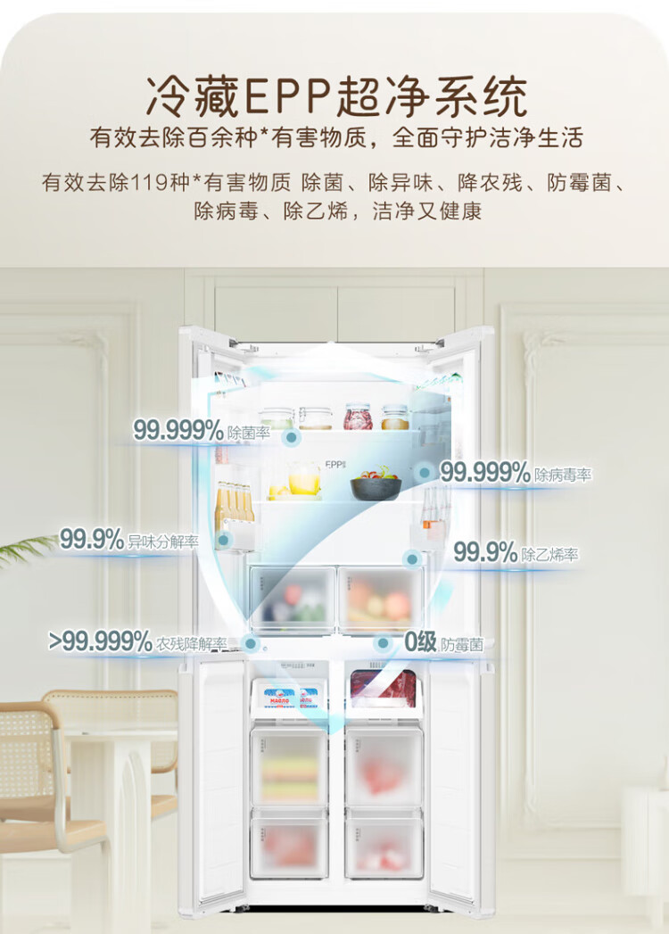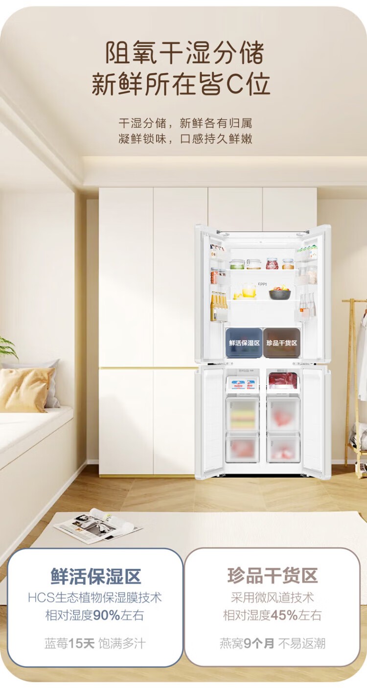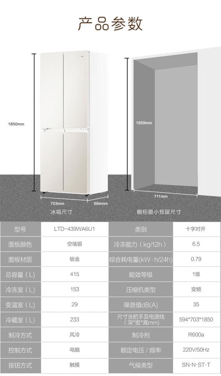 Haier produces Tongshuai Refrigerator 415 liters ultra-thin zero-embedded cross-door four-door double-door first-class energy-efficiency variable frequency air-cooled frost-free smart home refrigerator flagship 439 594mm ultra-thin zero-embedded + EPP ultra-clean system + oxygen-blocking dry and wet storage