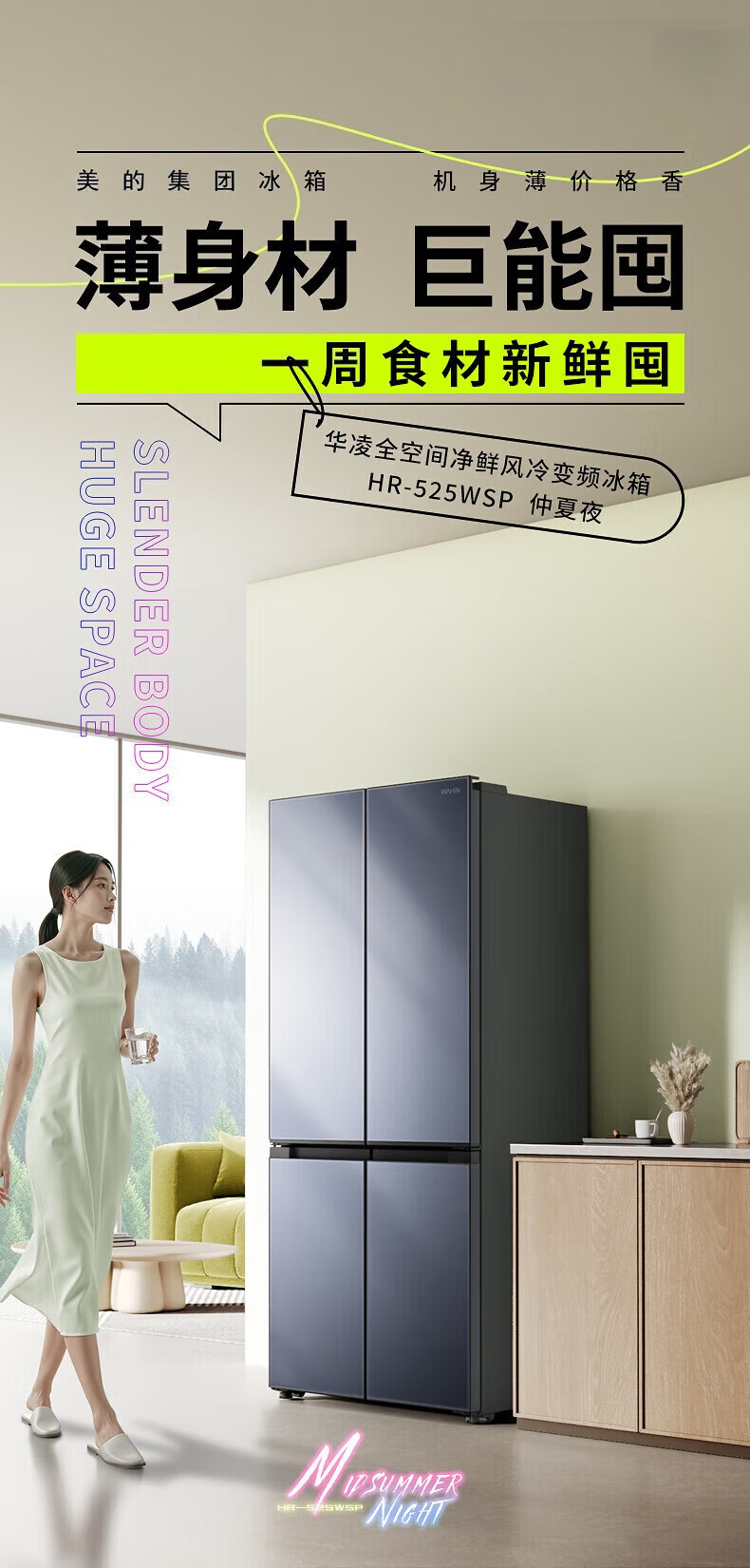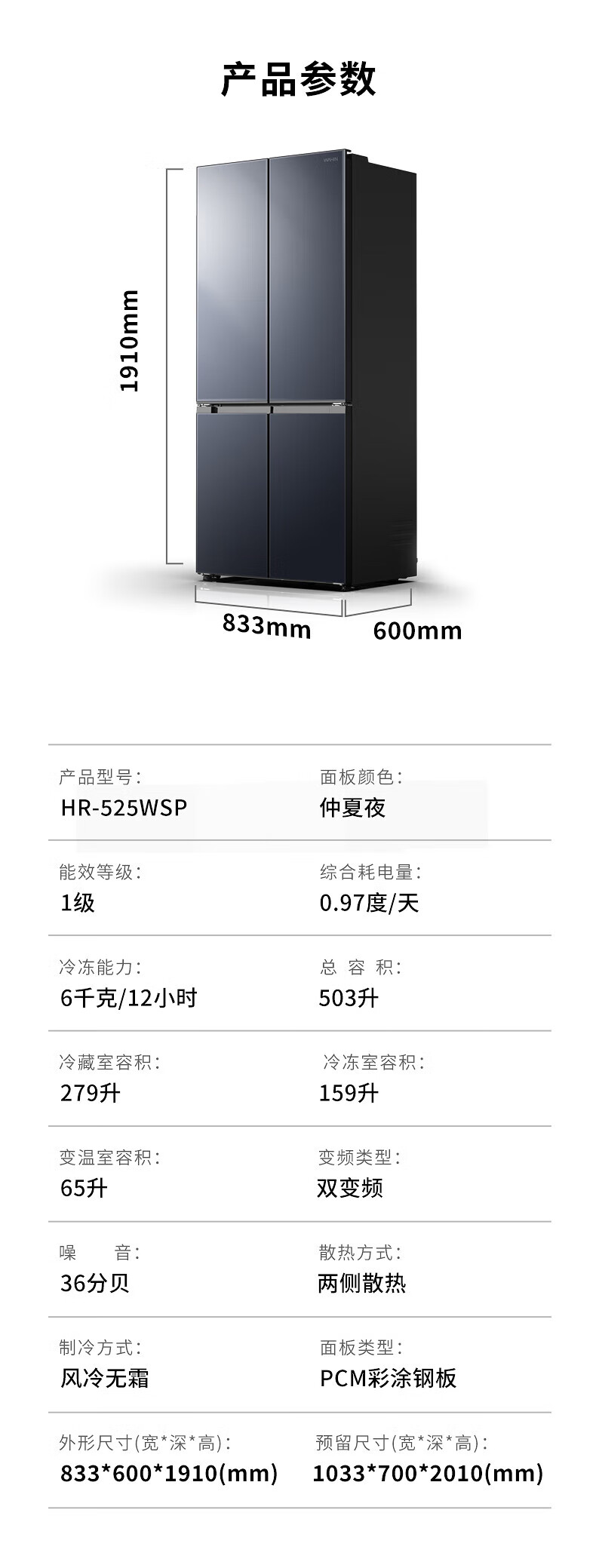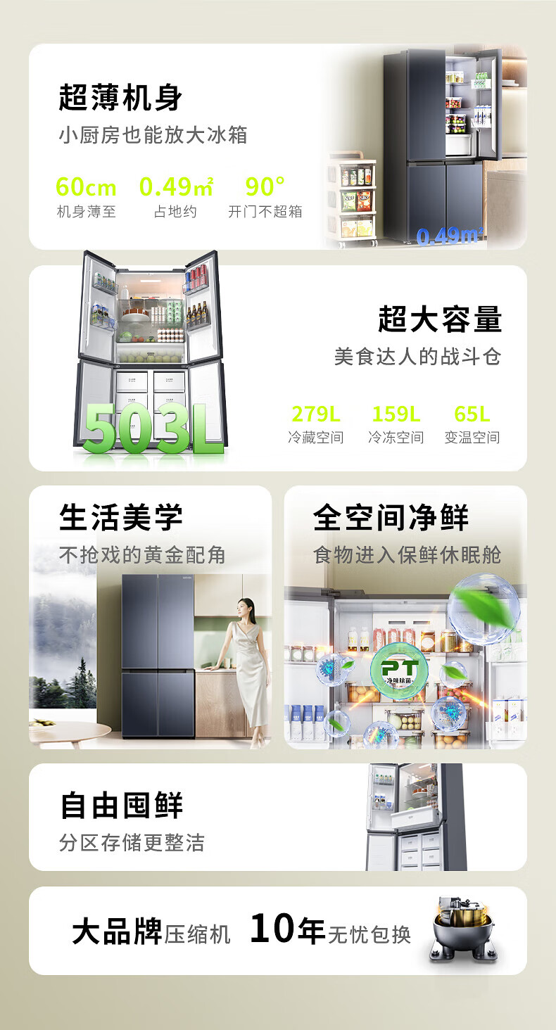 Midea refrigerator 25% subsidy 525 liters household large-capacity first-class energy efficiency air-cooled frost-free cross-door four-door dual-inverter refrigerator 503 upgraded first-class frost-free dual inverter Midea's popular Hualing Shenji