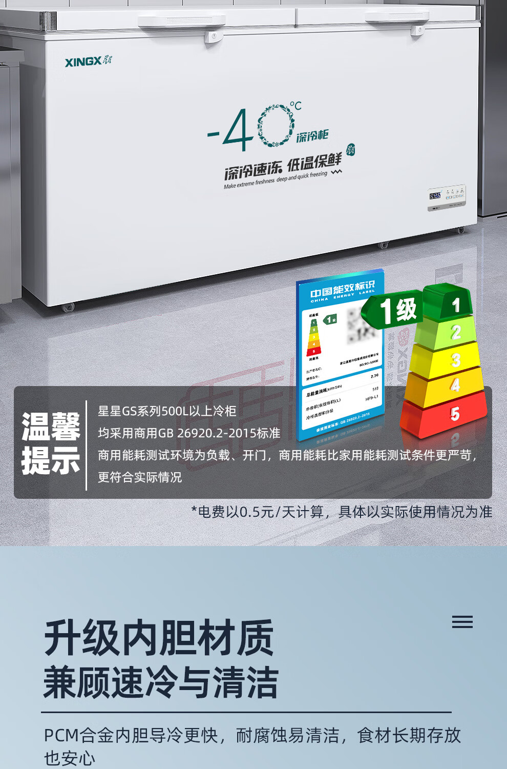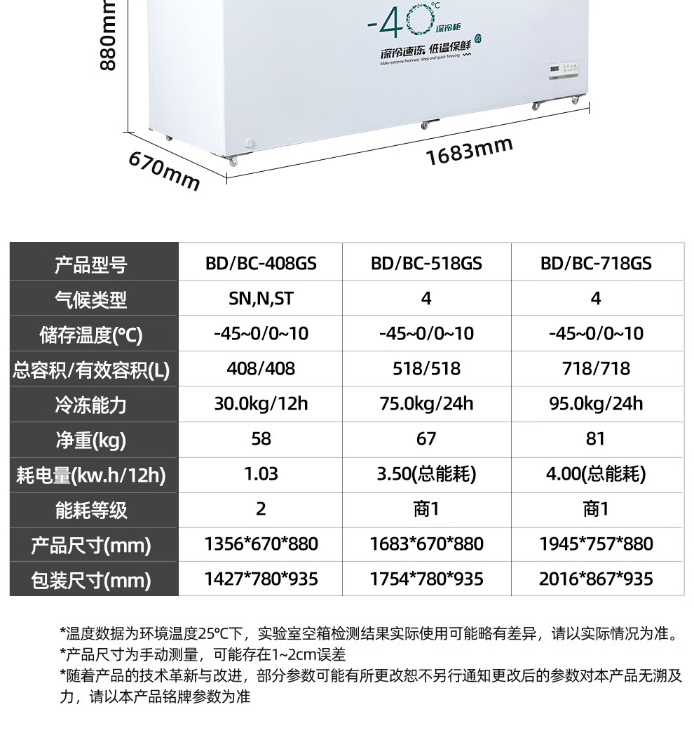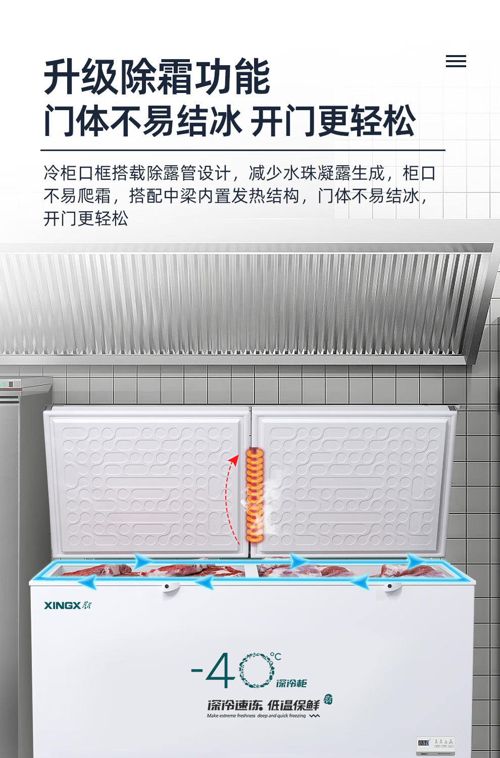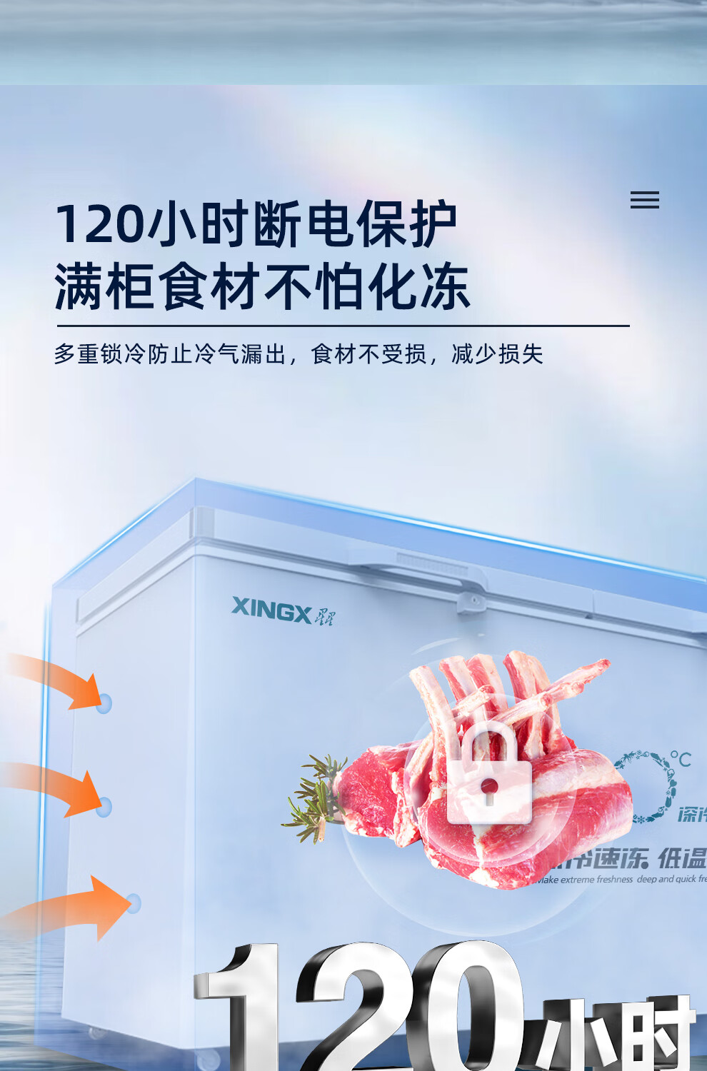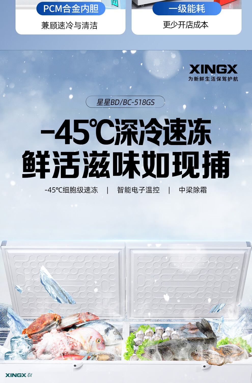 Xingx (XINGX) BD/BC-718GS -40 degree deep cooling quick freezing refrigeration and freezing conversion single temperature horizontal freezer computer temperature control one-click quick freezing 718 liters