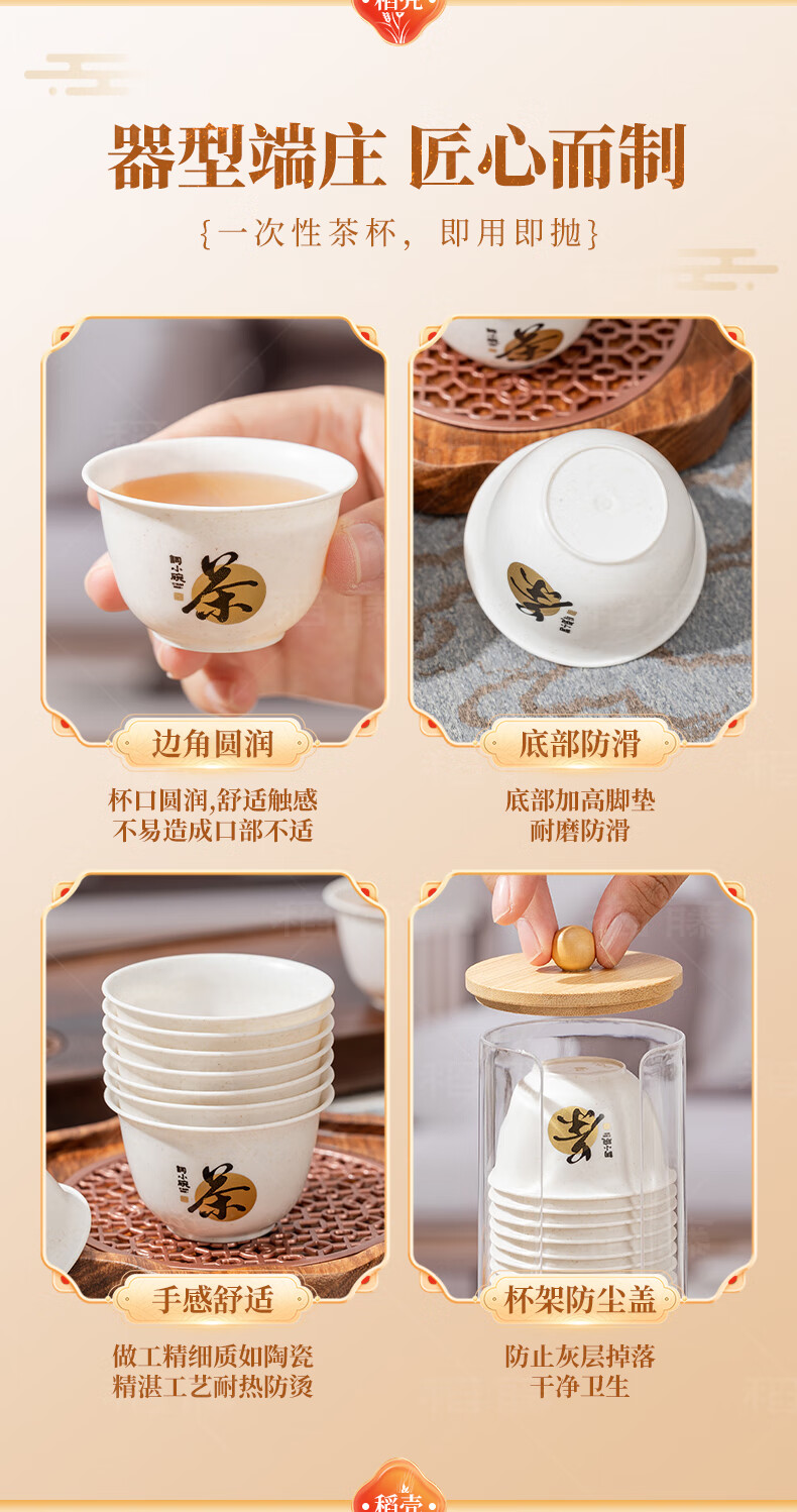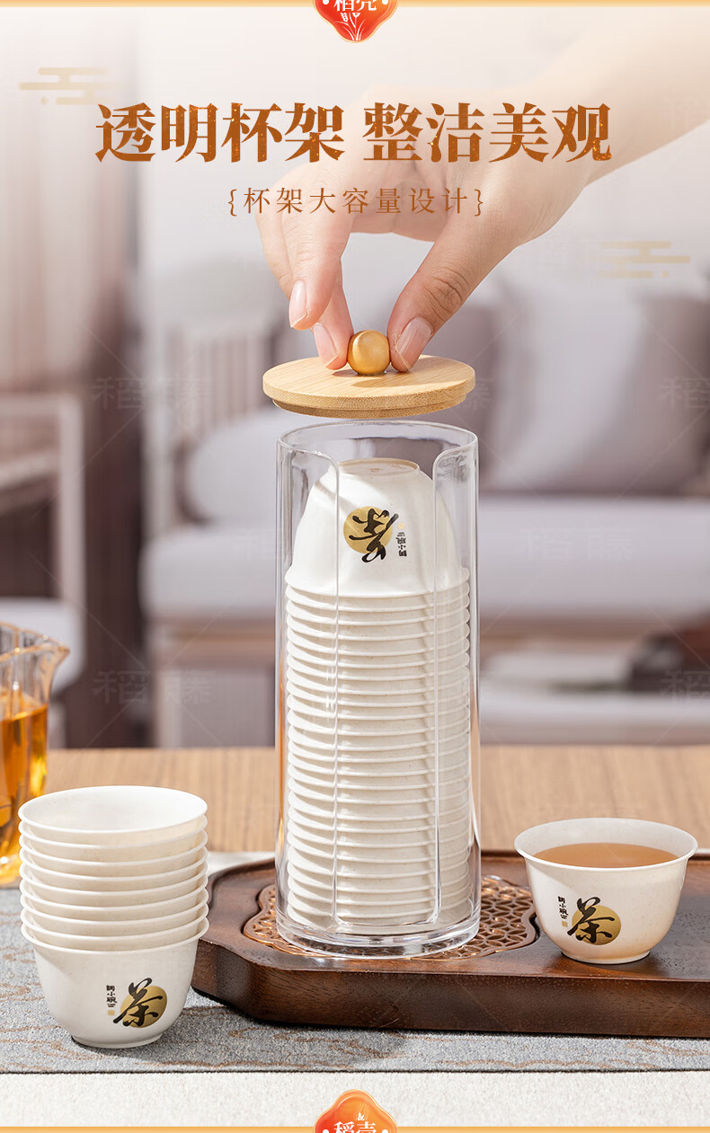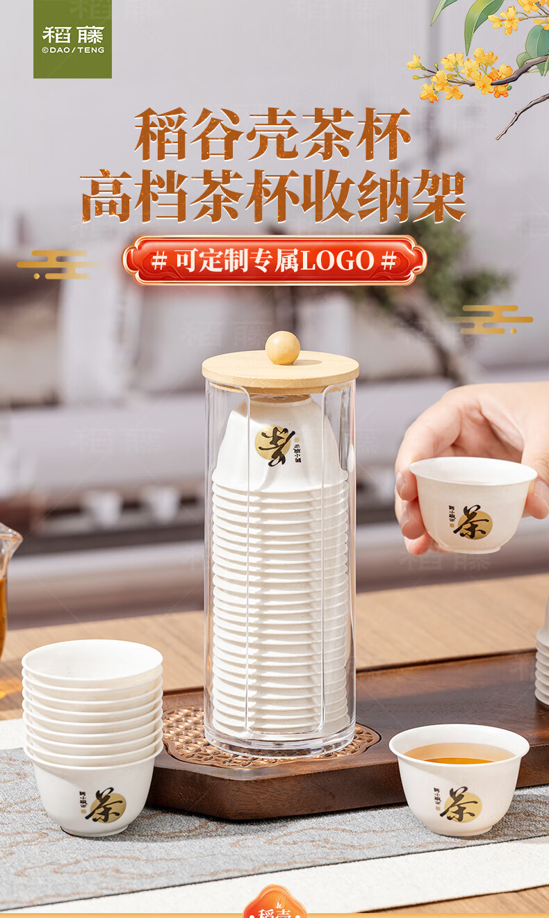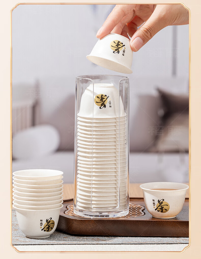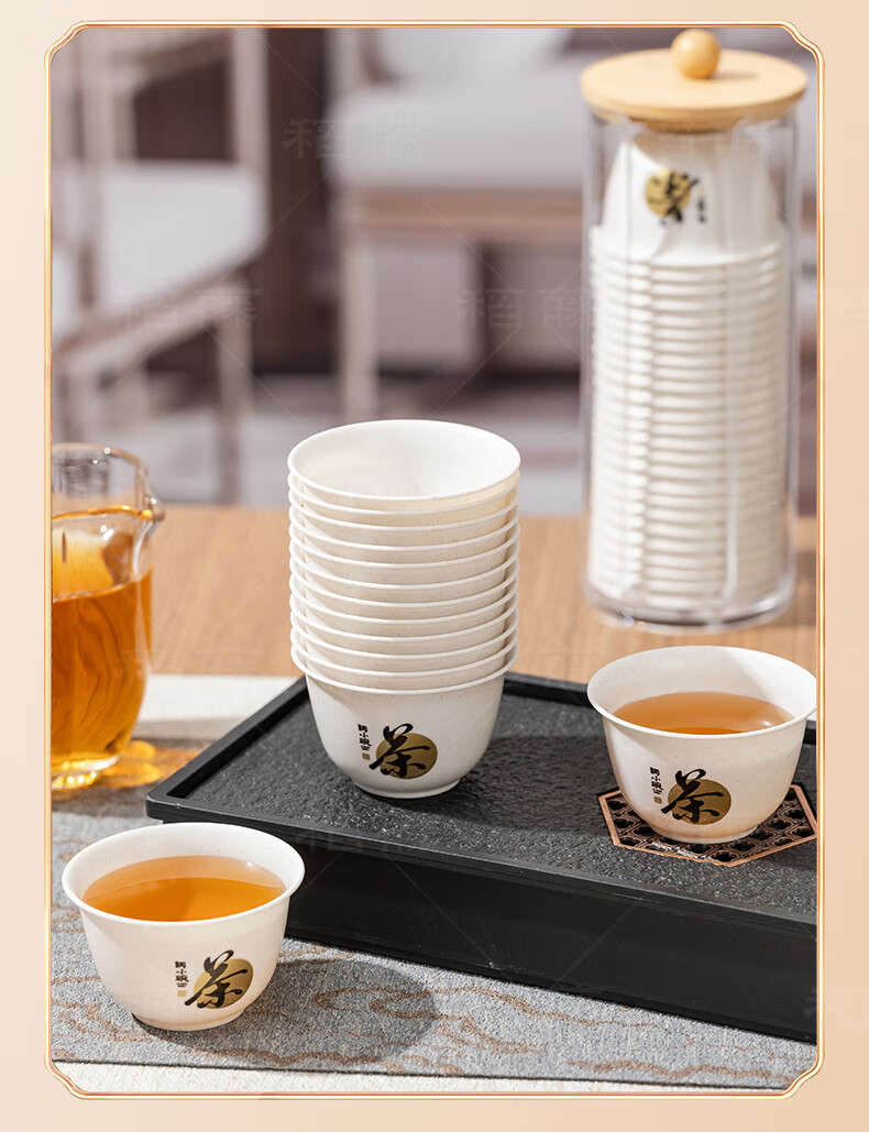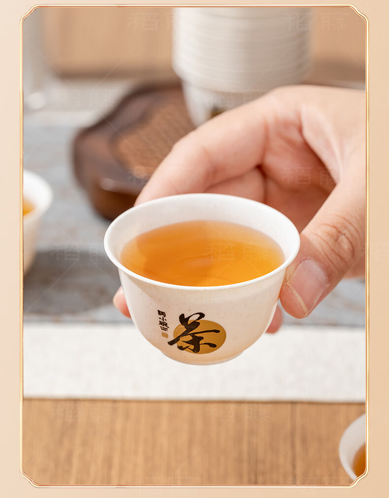 Rice rattan tea set 2025 new one-time gift exquisite business training complete set personalized lazy tea cup 60ml rice fragrant cup 1 pack 50 pieces with gray cup holder