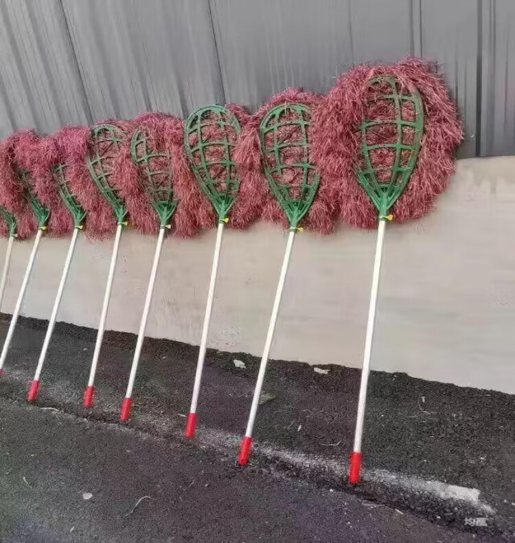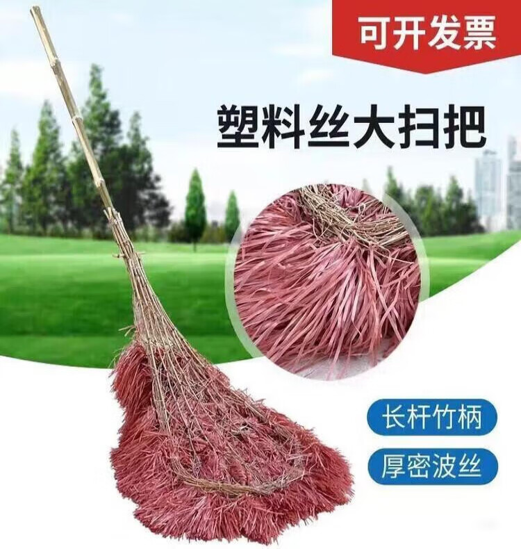 Large broom for road sanitation, durable long pole, home decoration, road outdoor garden worker new sweeping plastic wool broom construction site, bamboo pole handle, plastic wire large broom, 1 pack, strong and durable