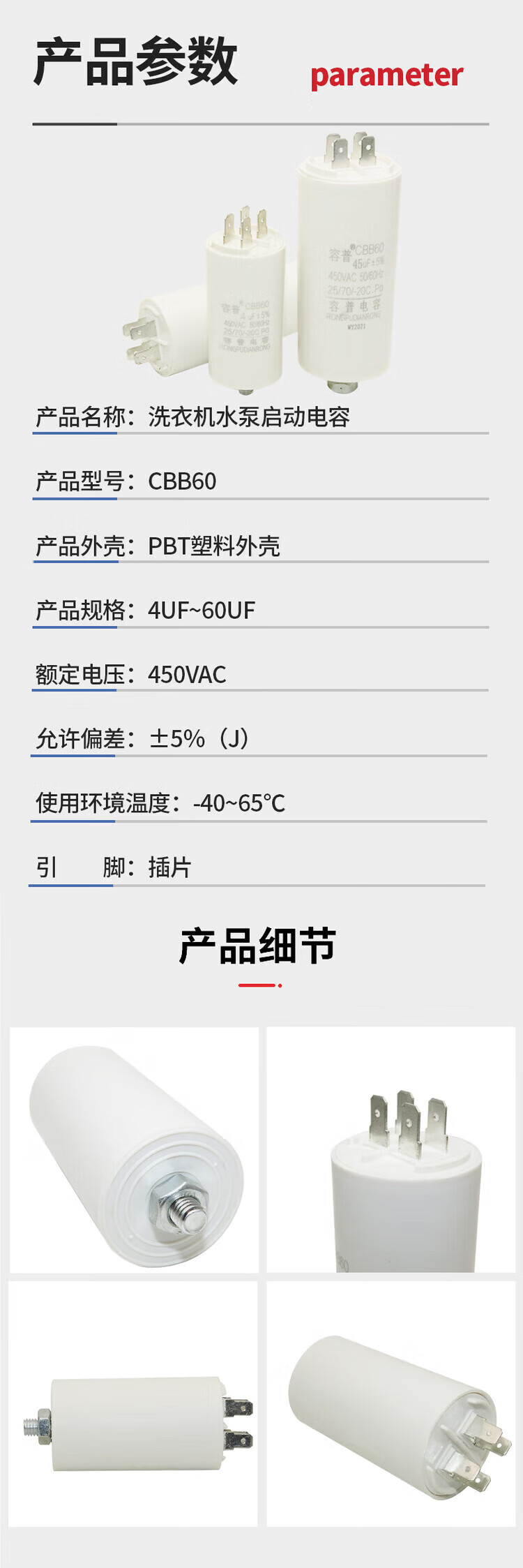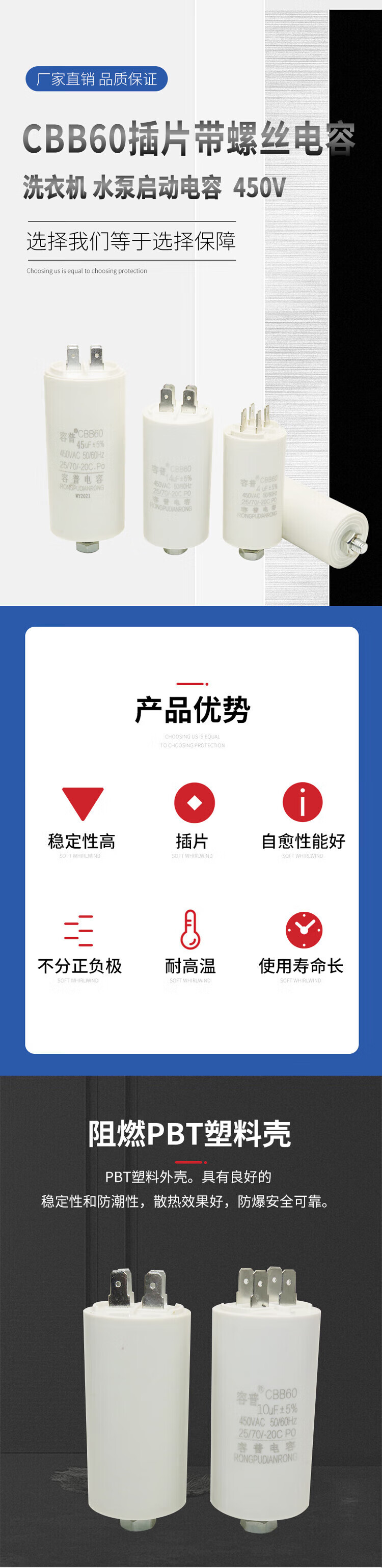 CBB60 capacitor four blades/bottom with screws 4UF5UF8UF10UF121450450V 6UF 450V four blades with screws