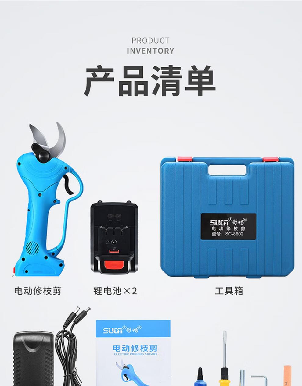 Shuchang electric scissors, fruit tree rechargeable garden pruning, special lithium battery pruning pruning branch electric shears artifact, Shuchang wireless 2.5 cm, one power, one charge, work