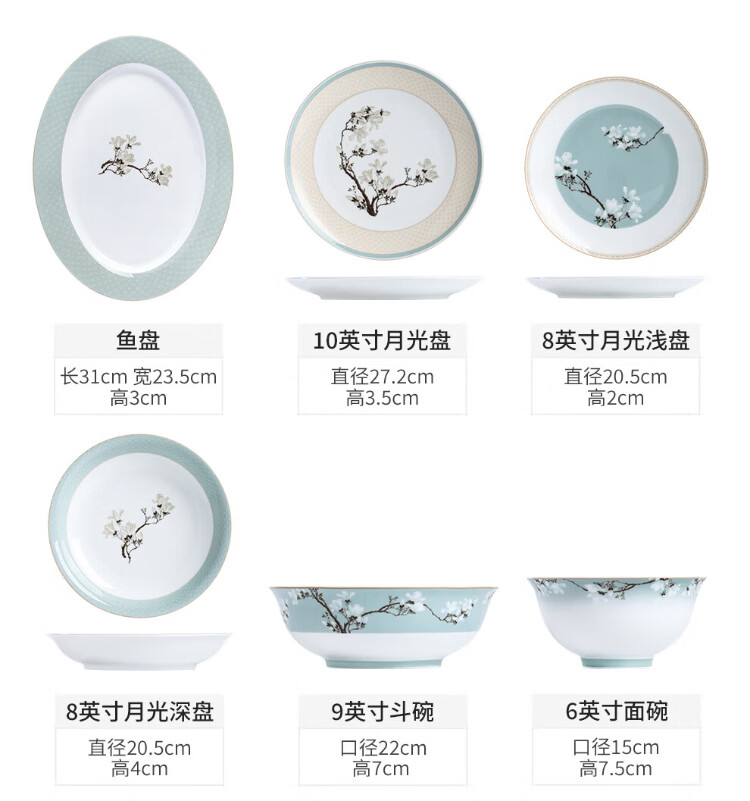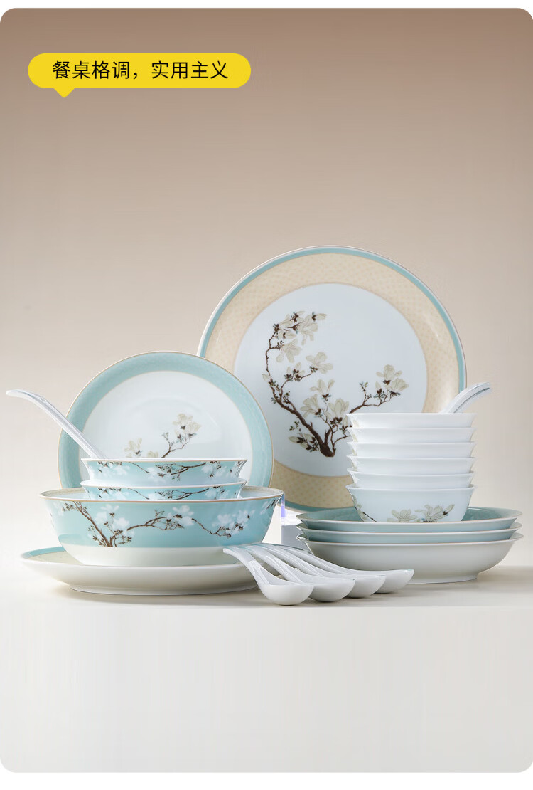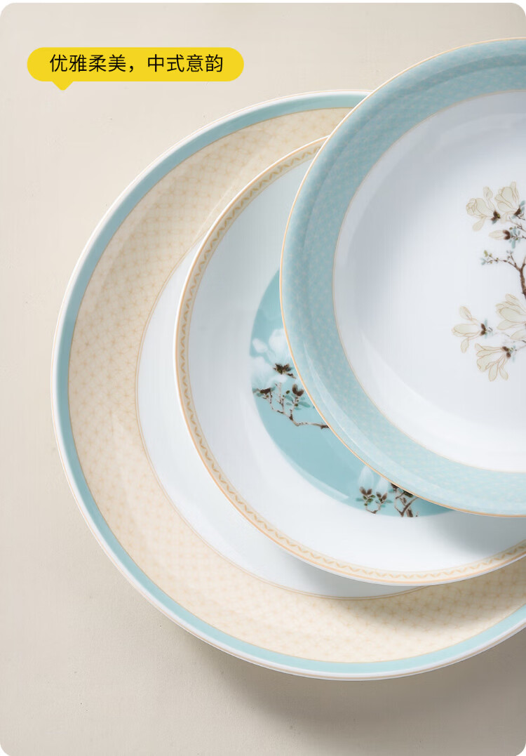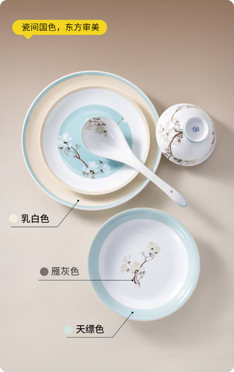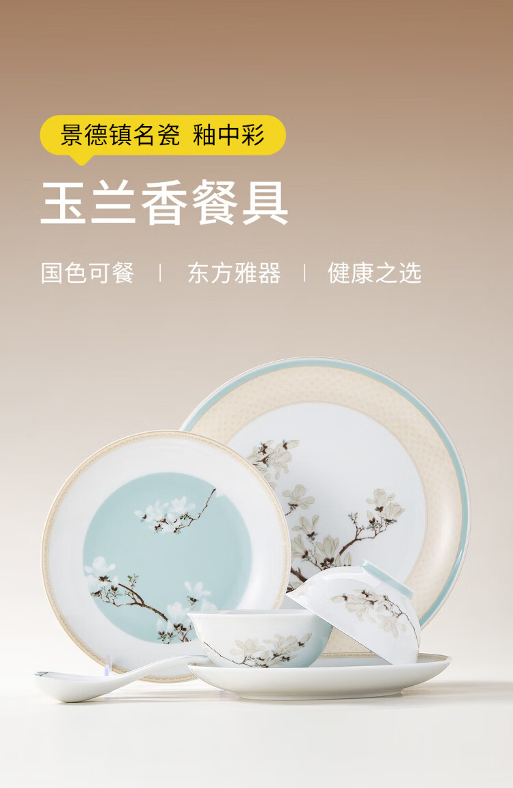 Tao Xichuan CERAMIC ART AVENUE Jingdezhen ceramic Chinese color tableware set Magnolia fragrance national color edible household bowls and plates porcelain housewarming gift Magnolia fragrance 4 people food family version gift box 8 pieces