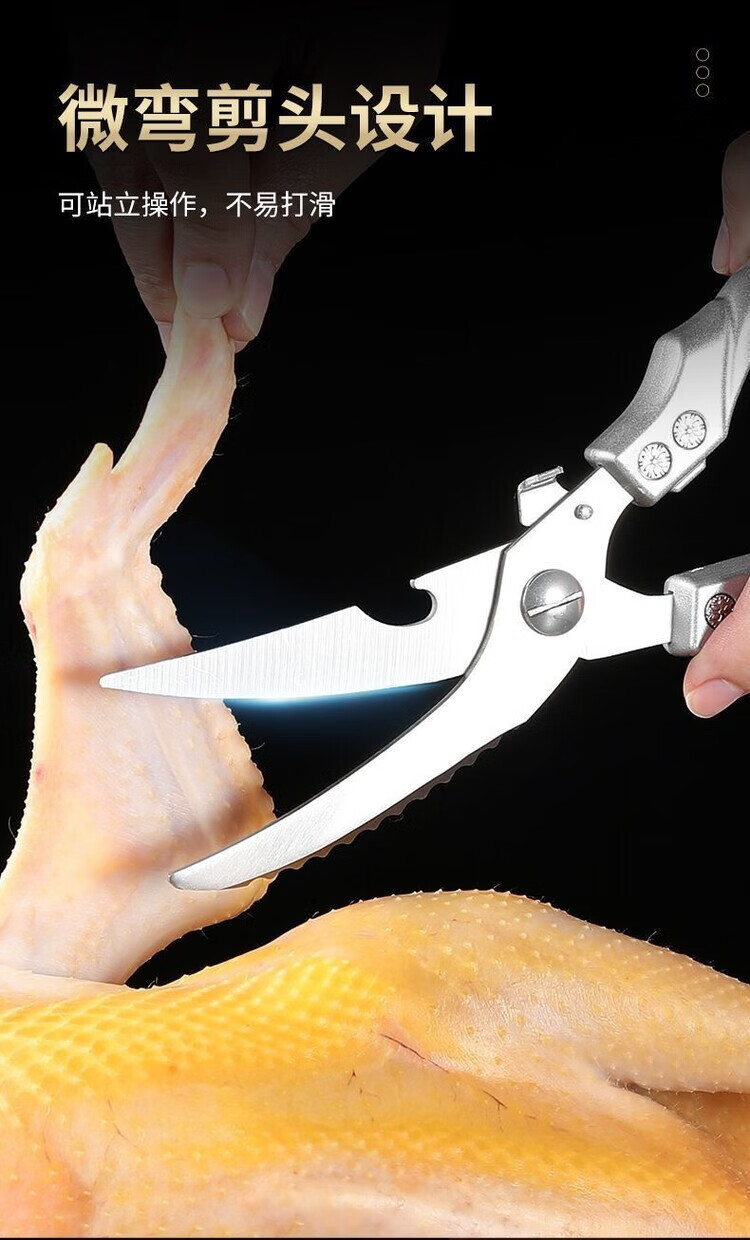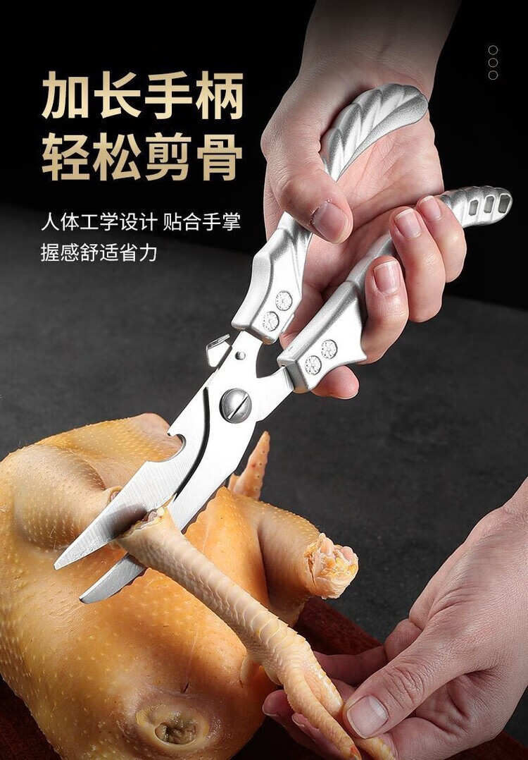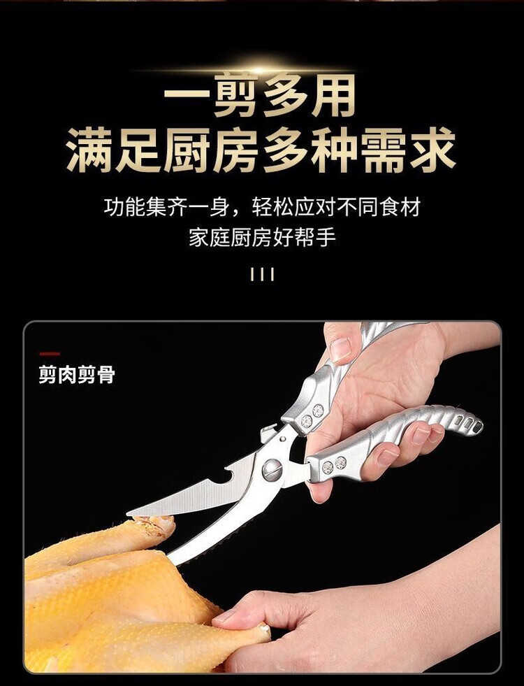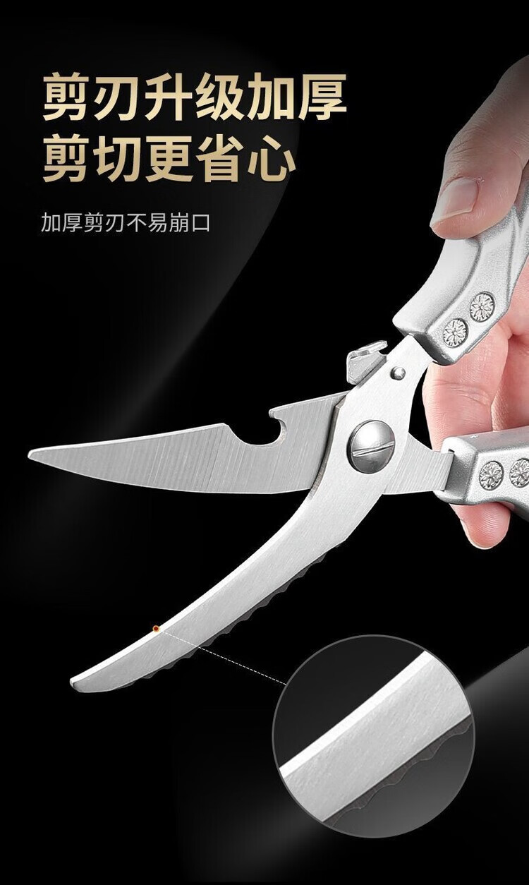 Special large scissors for bone-cutting of steamed buns, chicken bone scissors, imported from Germany, kitchen multi-functional stainless steel, powerful to kill household food, German-style steel, limited time price for newcomers, length 250MM/cutting meat/cutting vegetables/cutting bones/powerful scissors