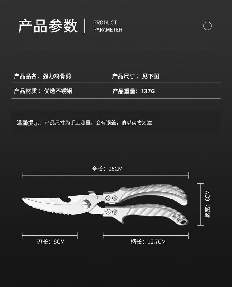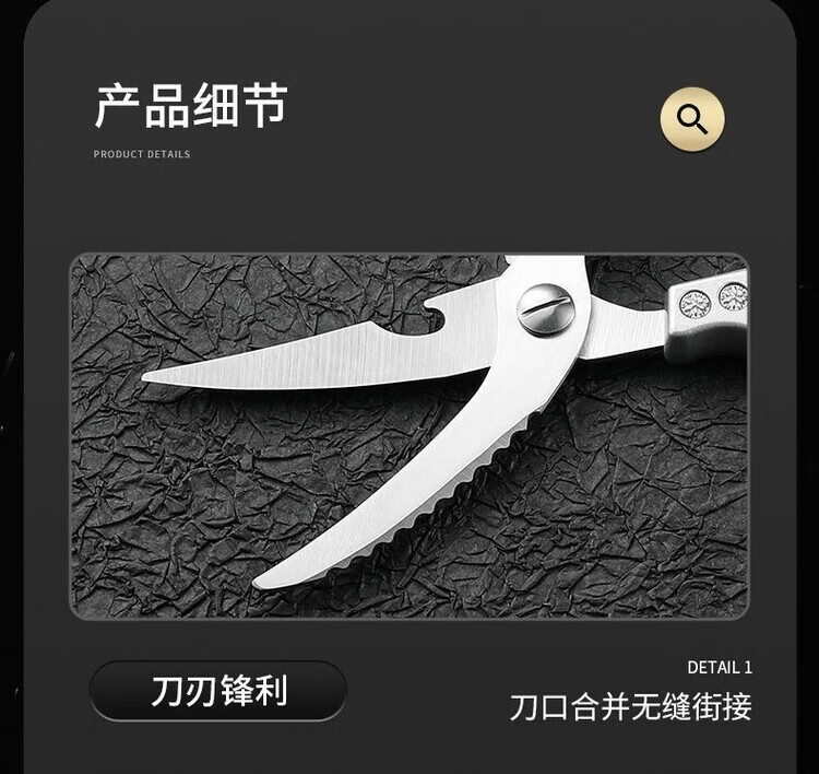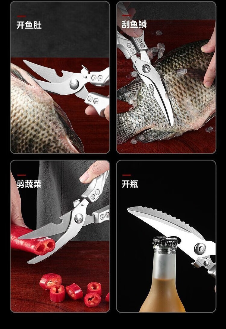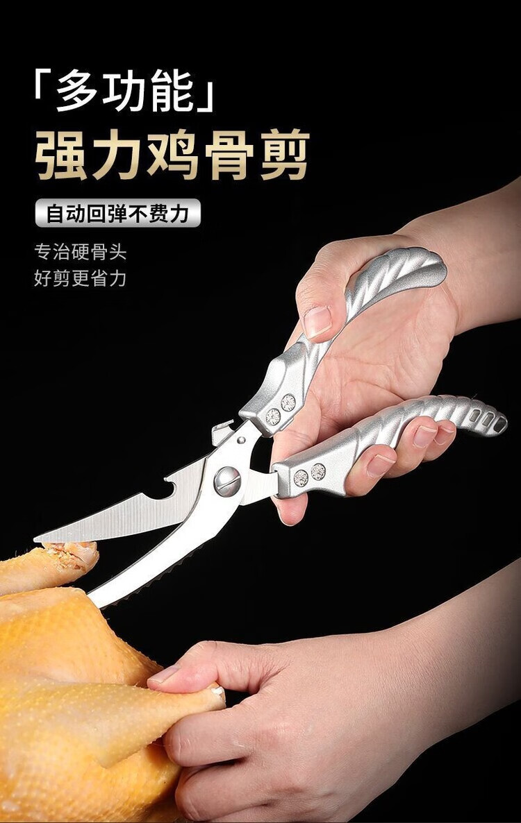 Special large scissors for bone-cutting of steamed buns, chicken bone scissors, imported from Germany, kitchen multi-functional stainless steel, powerful to kill household food, German-style steel, limited time price for newcomers, length 250MM/cutting meat/cutting vegetables/cutting bones/powerful scissors