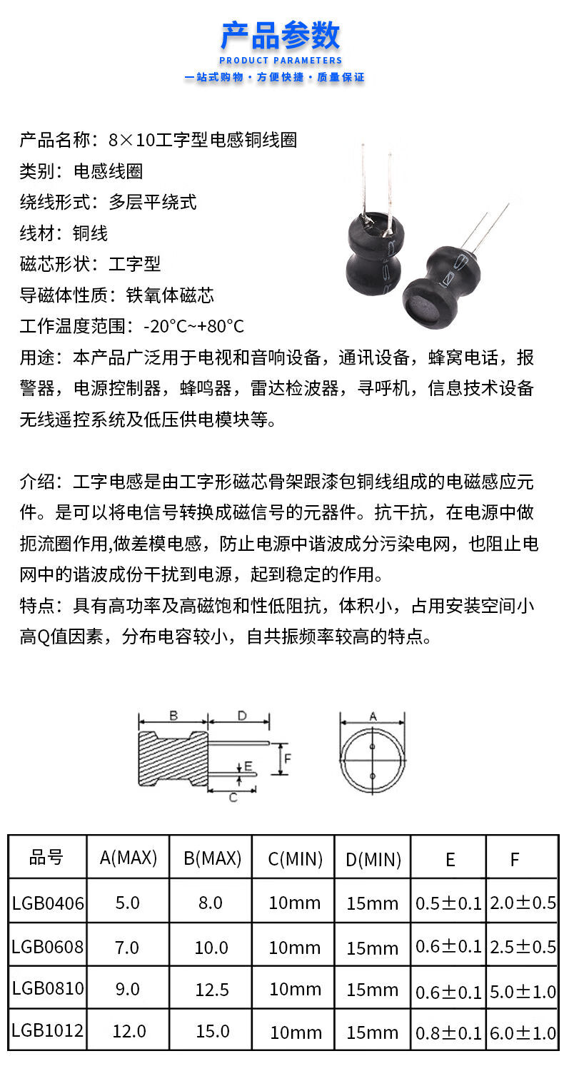 I-shaped 8*10 power inductor coil 1UH/2.2/3.3/47/68/100/220/470/10MH 470UH (5 pieces)