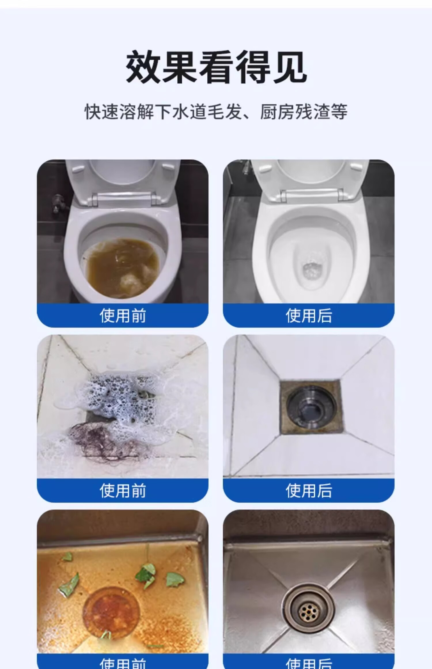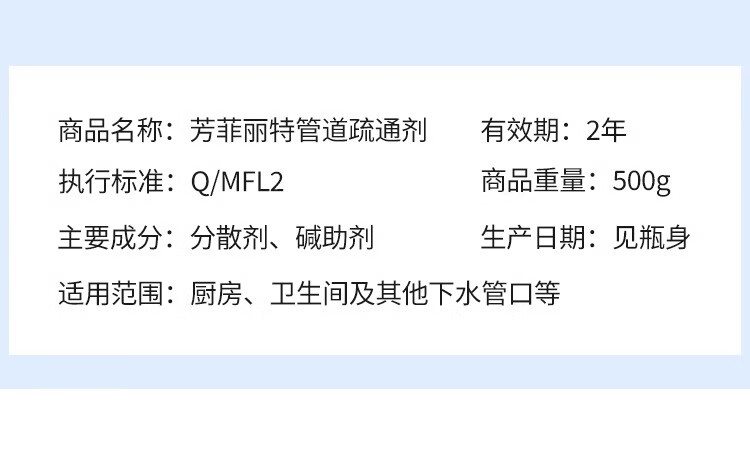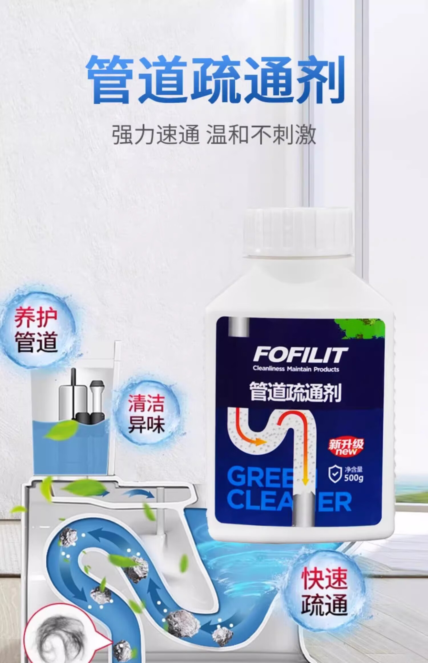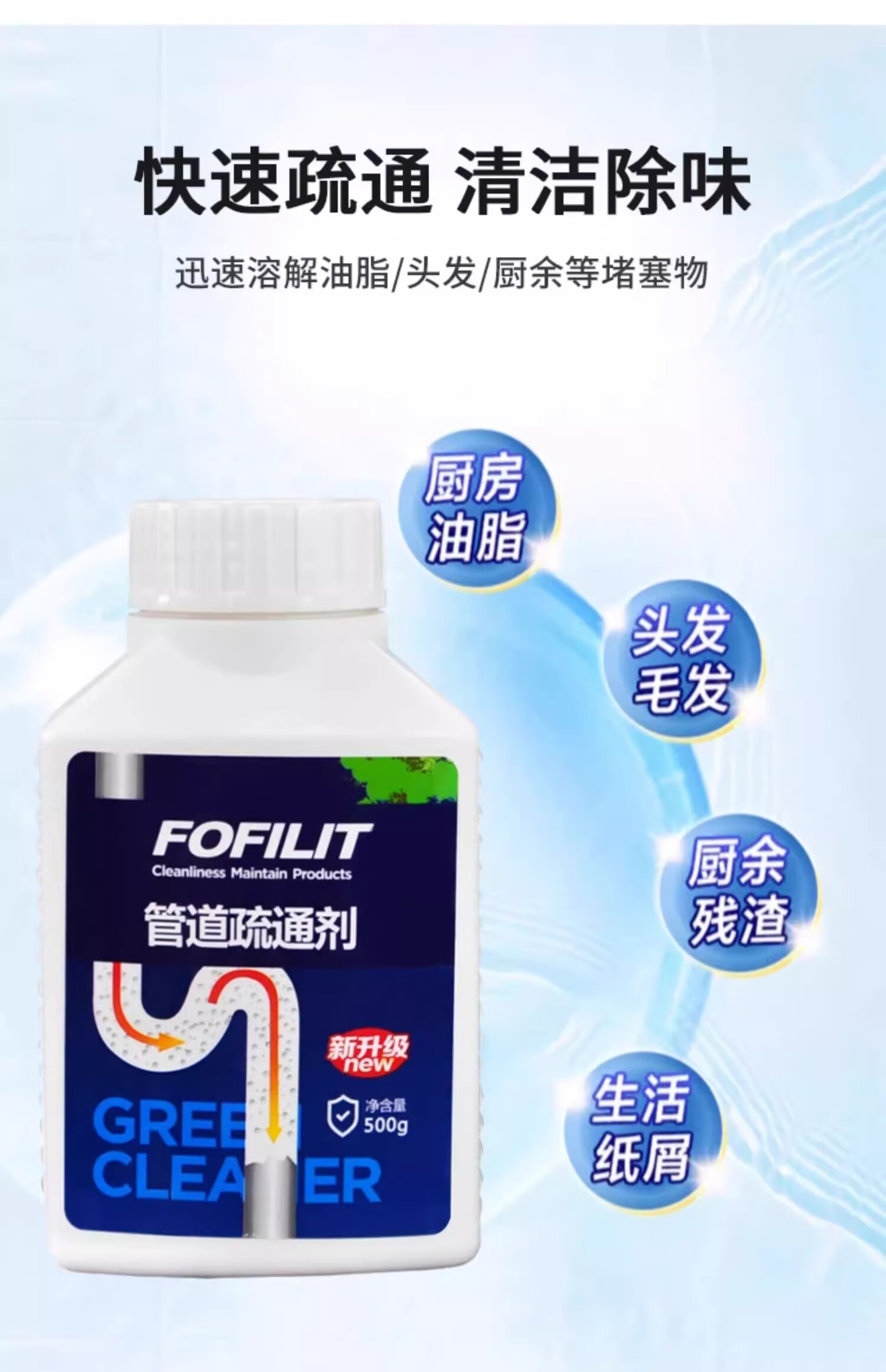 Fangfeilite pipe dredging agent kitchen bathroom floor drain sewer deodorizing strong dissolving dredging agent 500g*3 bottles