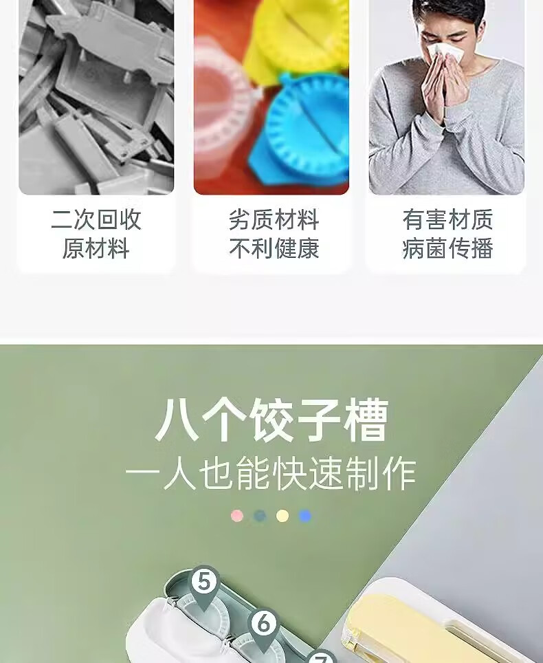 Jingga dumpling making new home special tool for lazy people, multi-functional dumpling wrapper mold, dumpling making device, upgraded balsam green, 8 pieces at a time, free water bottle