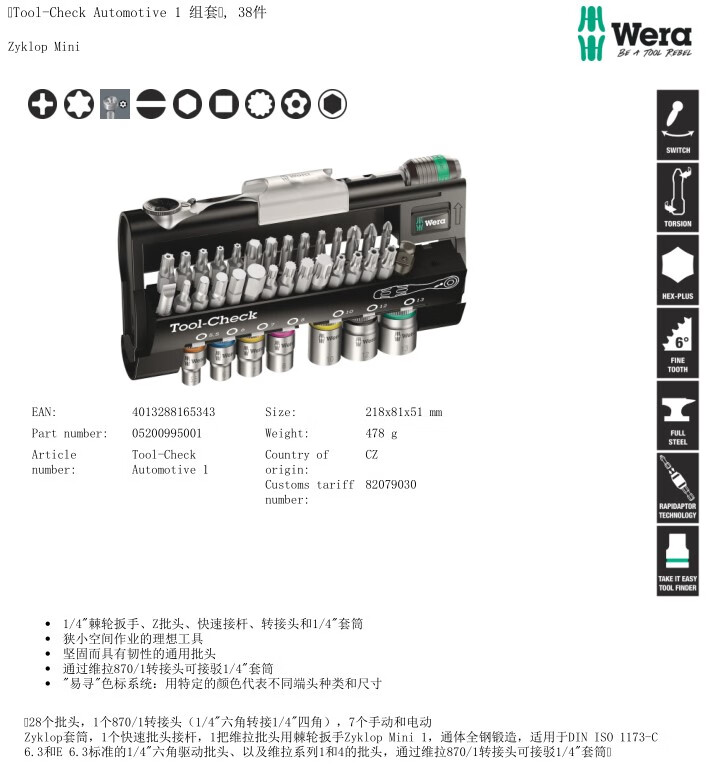 WERA 39 pieces 8001A mini auto repair bicycle set socket ratchet screwdriver wrench 39 pieces TOOLCHECKPLUS