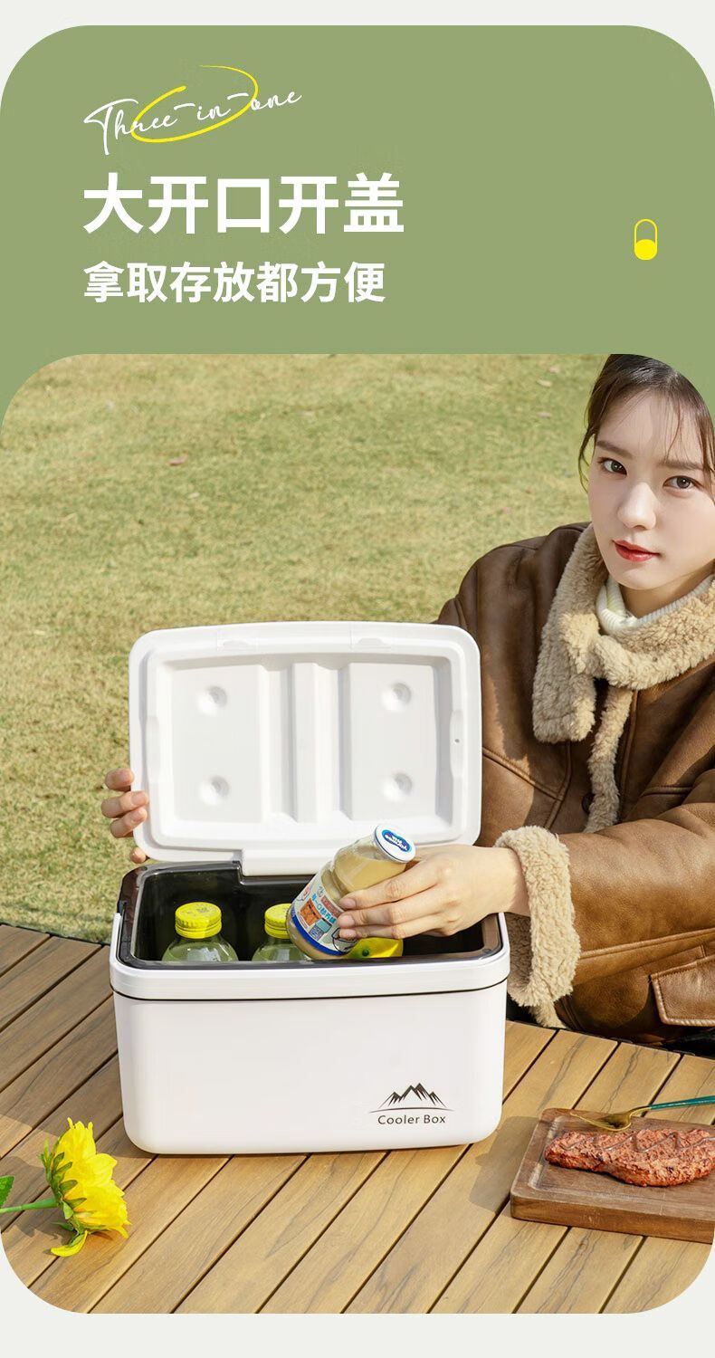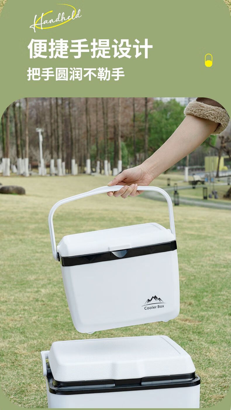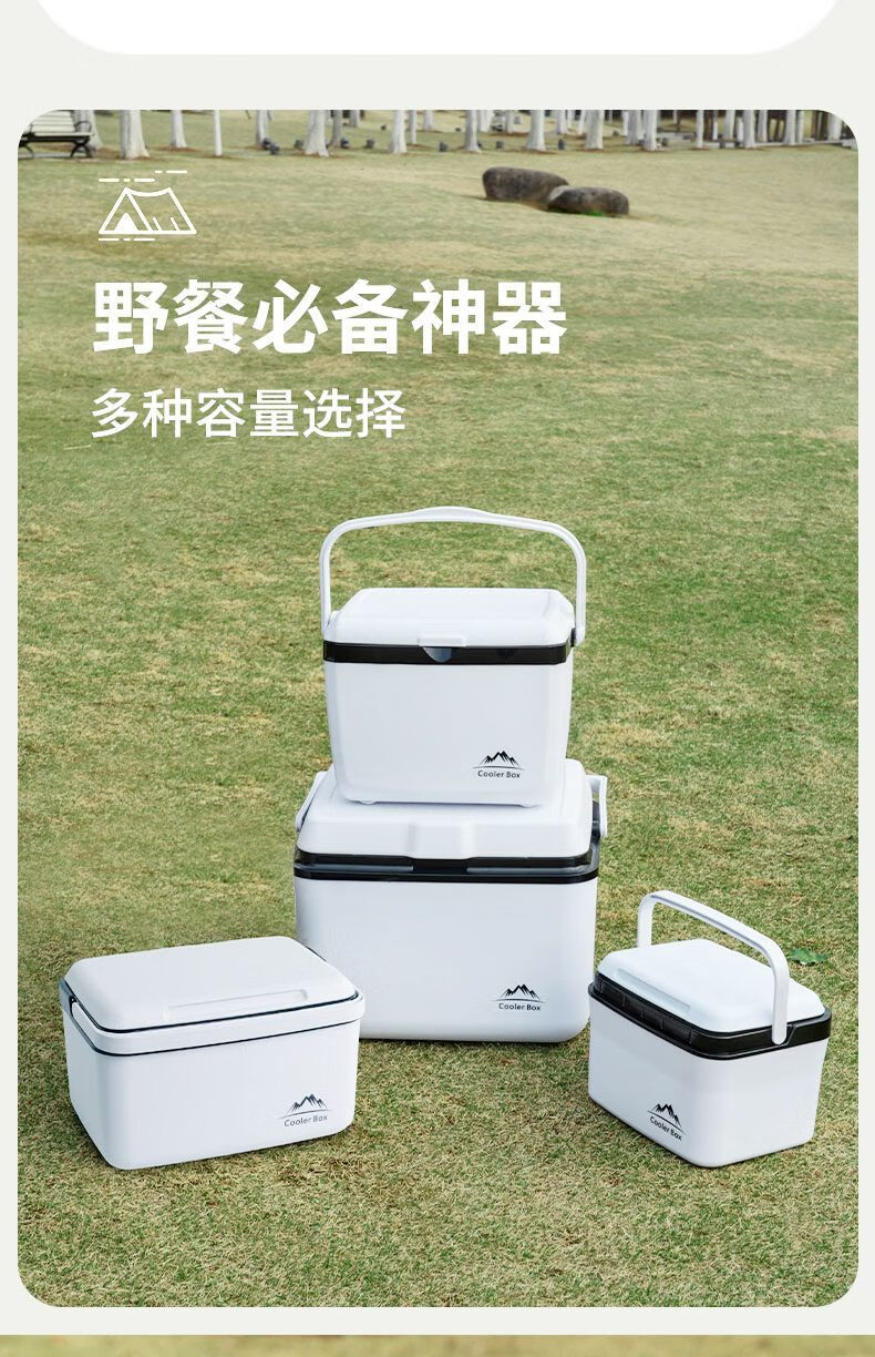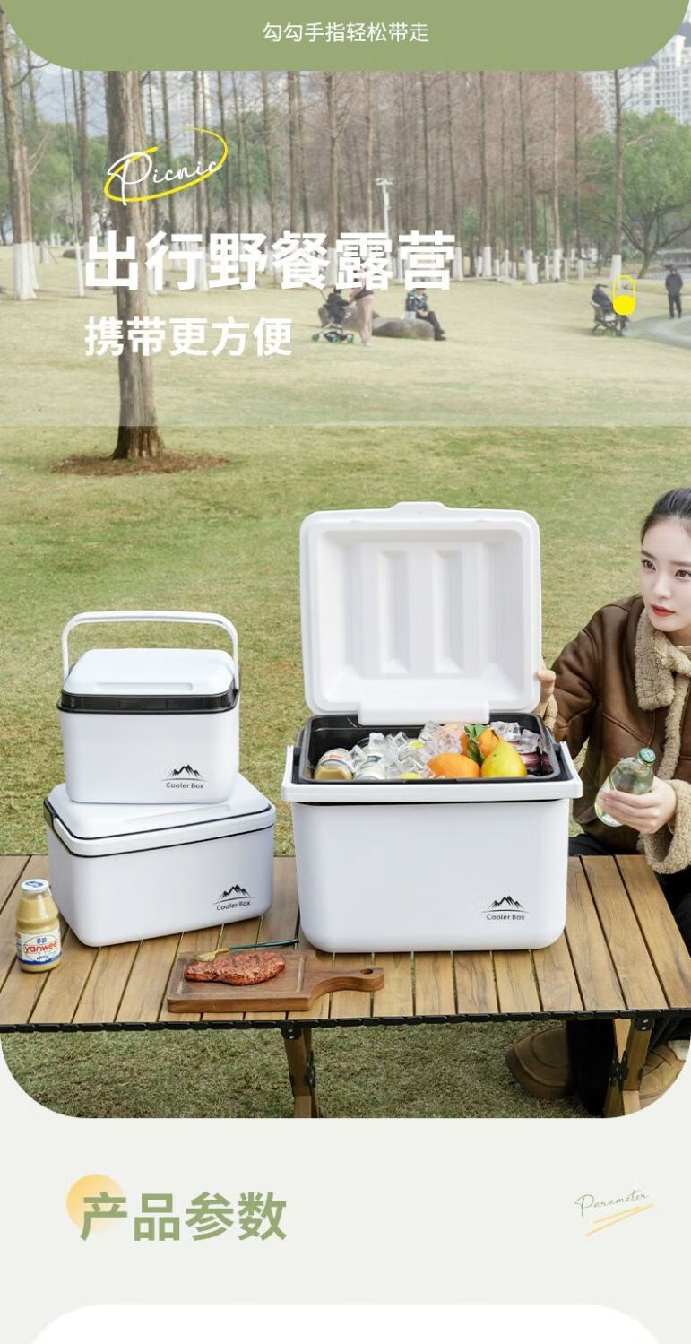 Free ice pack, insulated box, commercial stall, portable car, outdoor camping, fresh-keeping, picnic, portable cold storage, 18 liters, white - insulated box, free 2 ice boxes + 8 ice bags