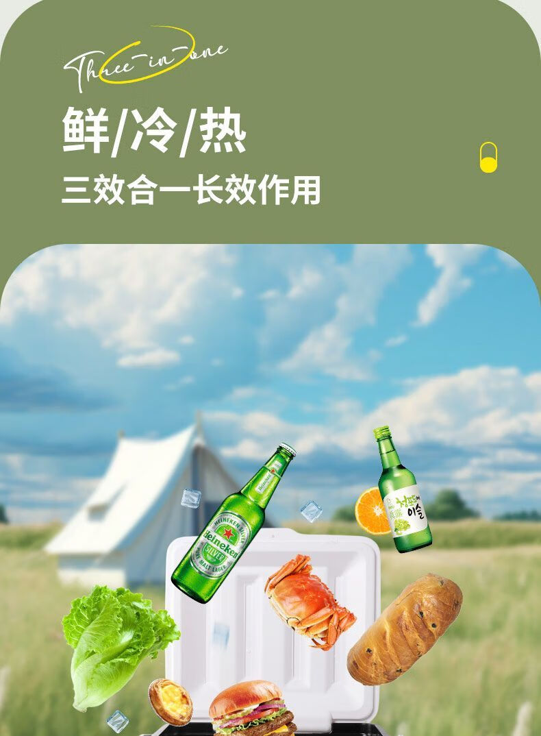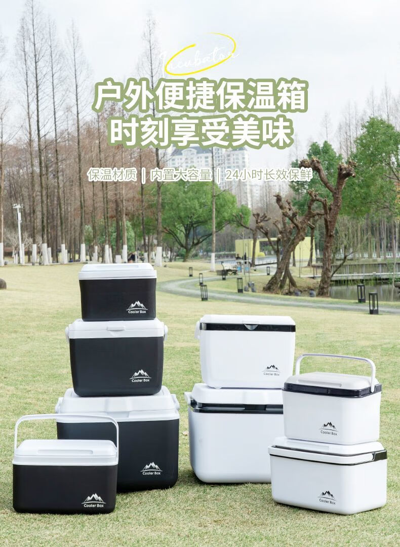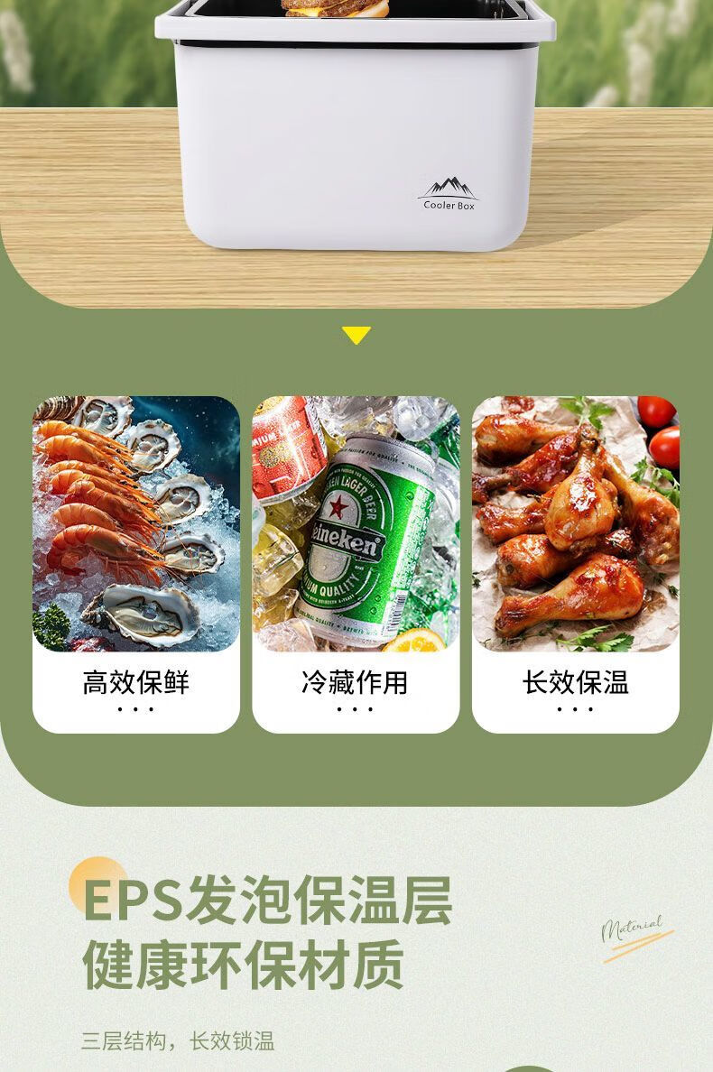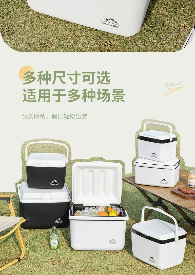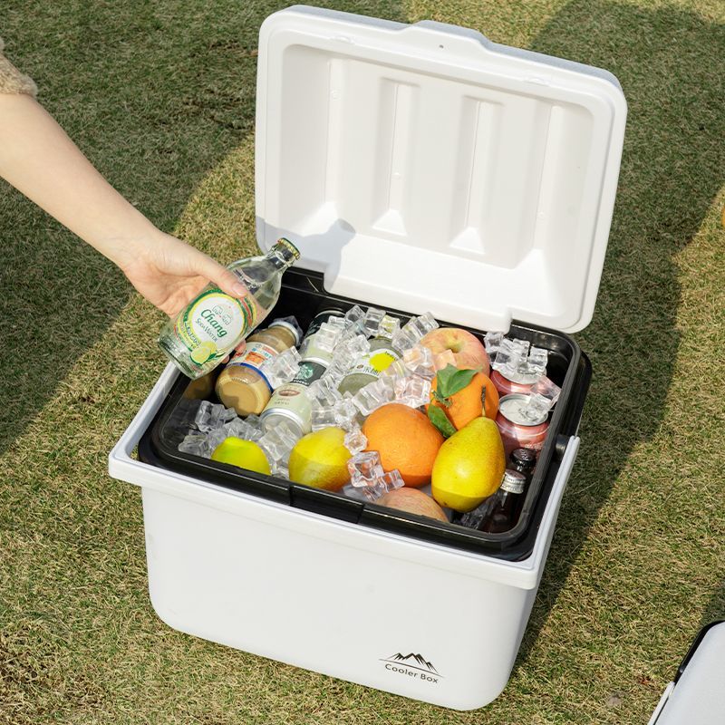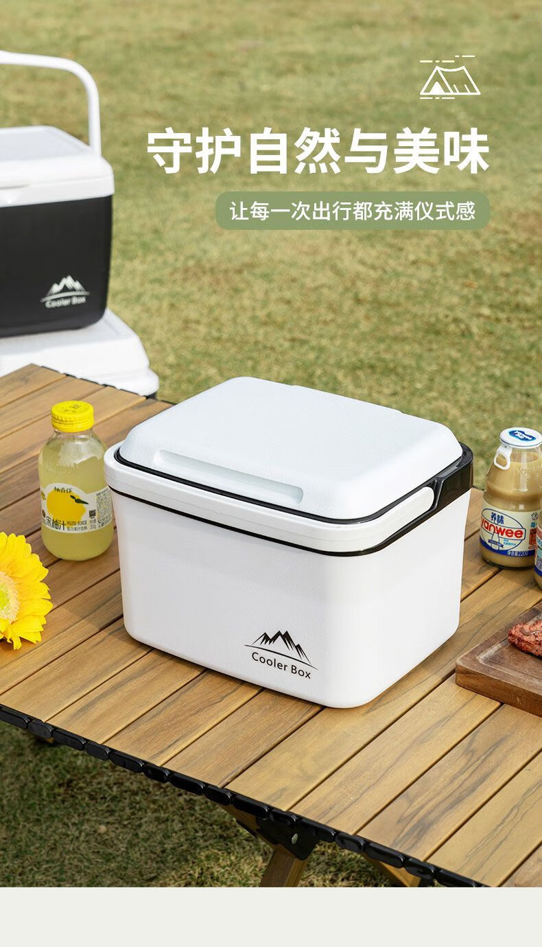 Free ice pack, insulated box, commercial stall, portable car, outdoor camping, fresh-keeping, picnic, portable cold storage, 18 liters, white - insulated box, free 2 ice boxes + 8 ice bags