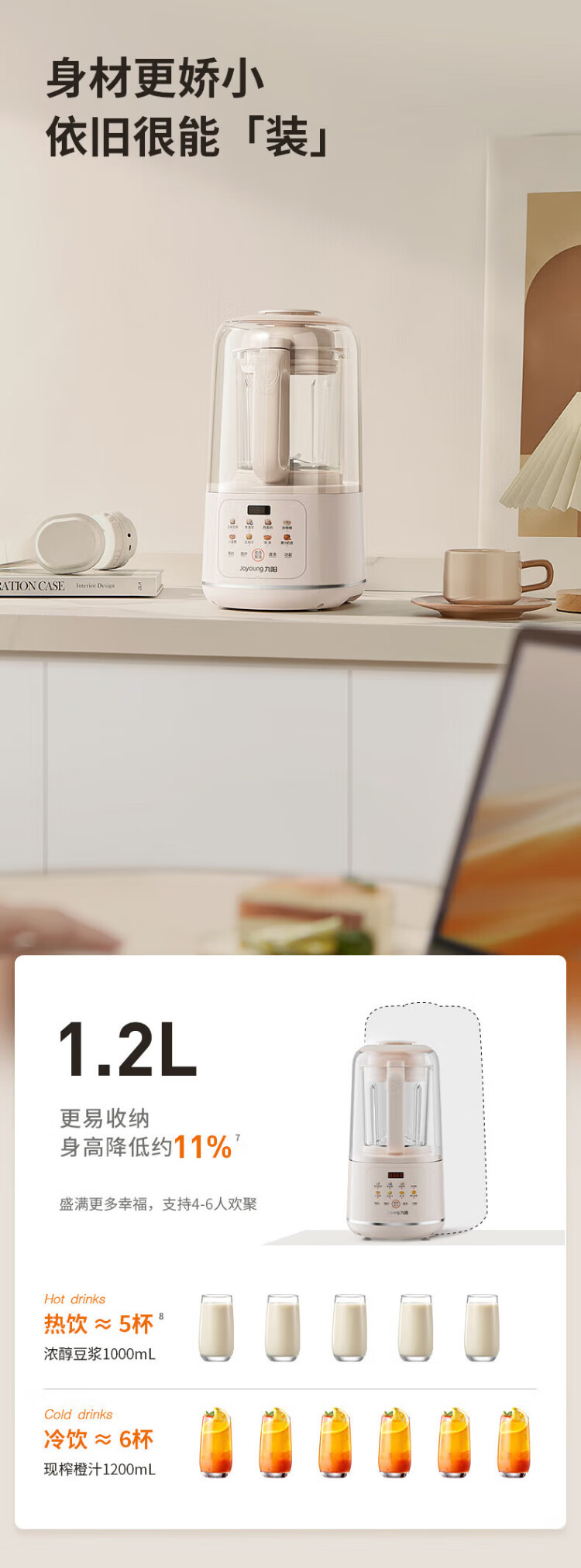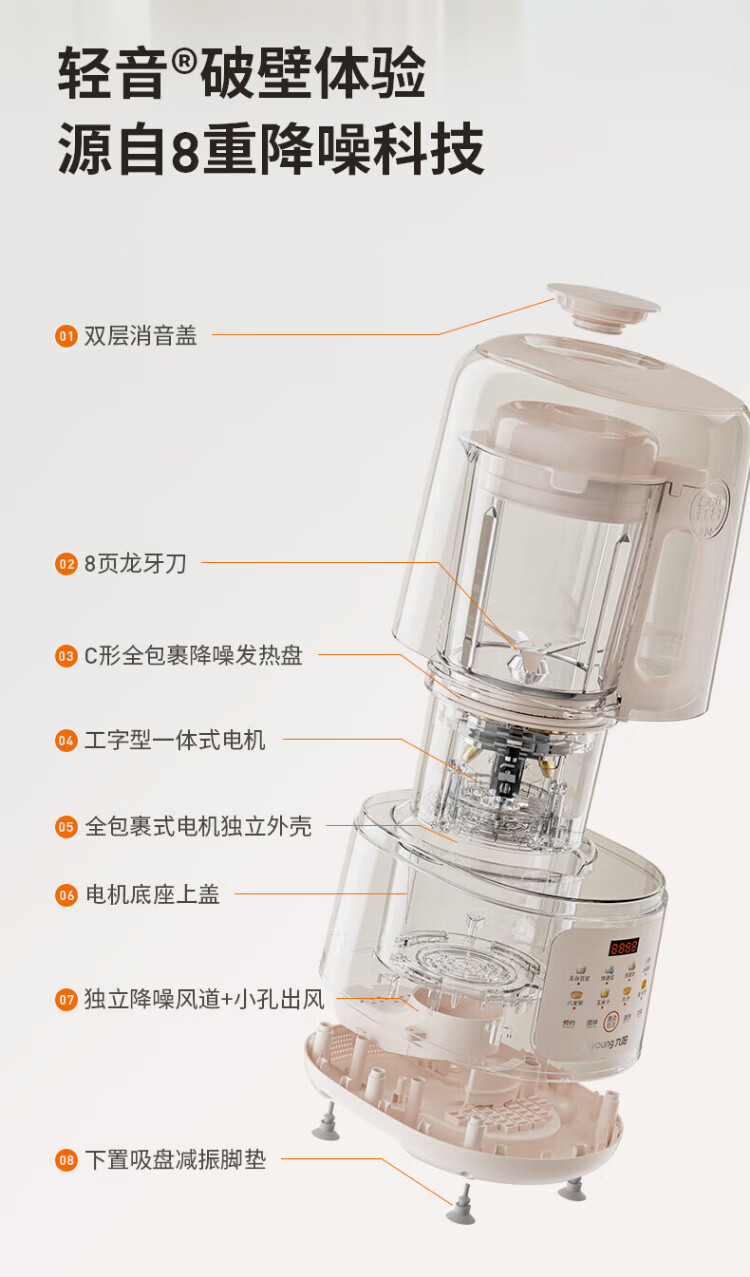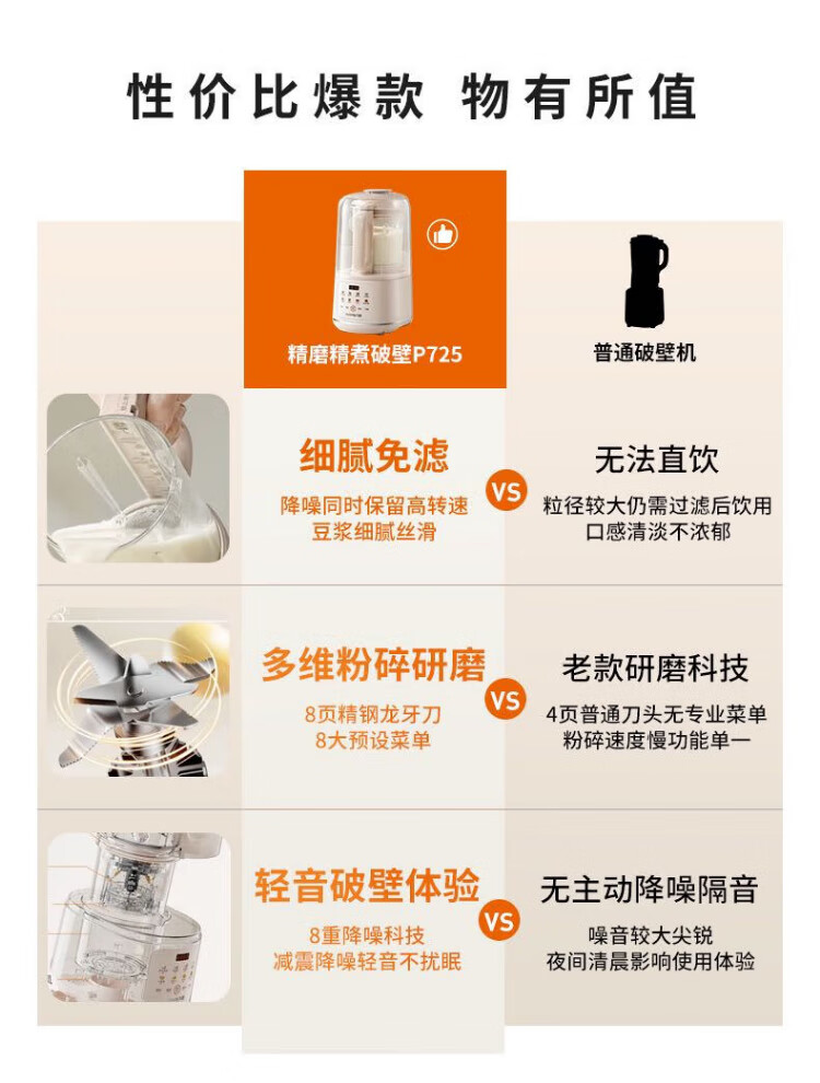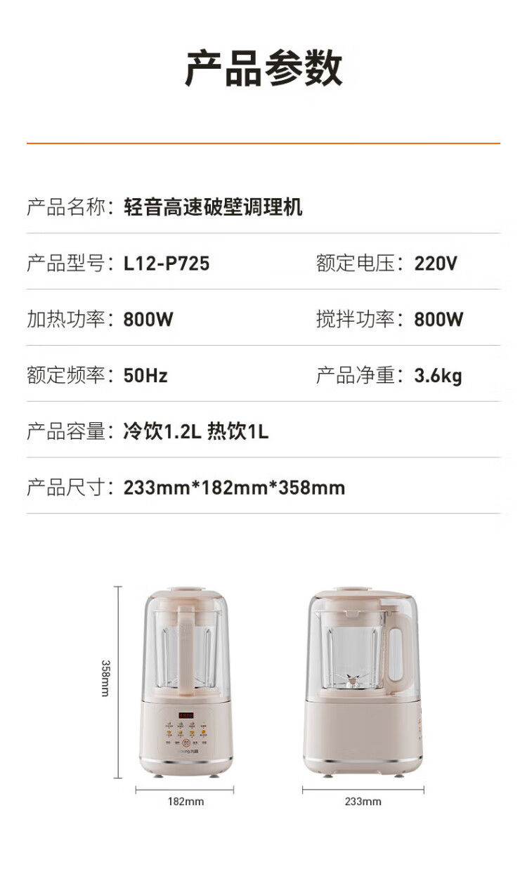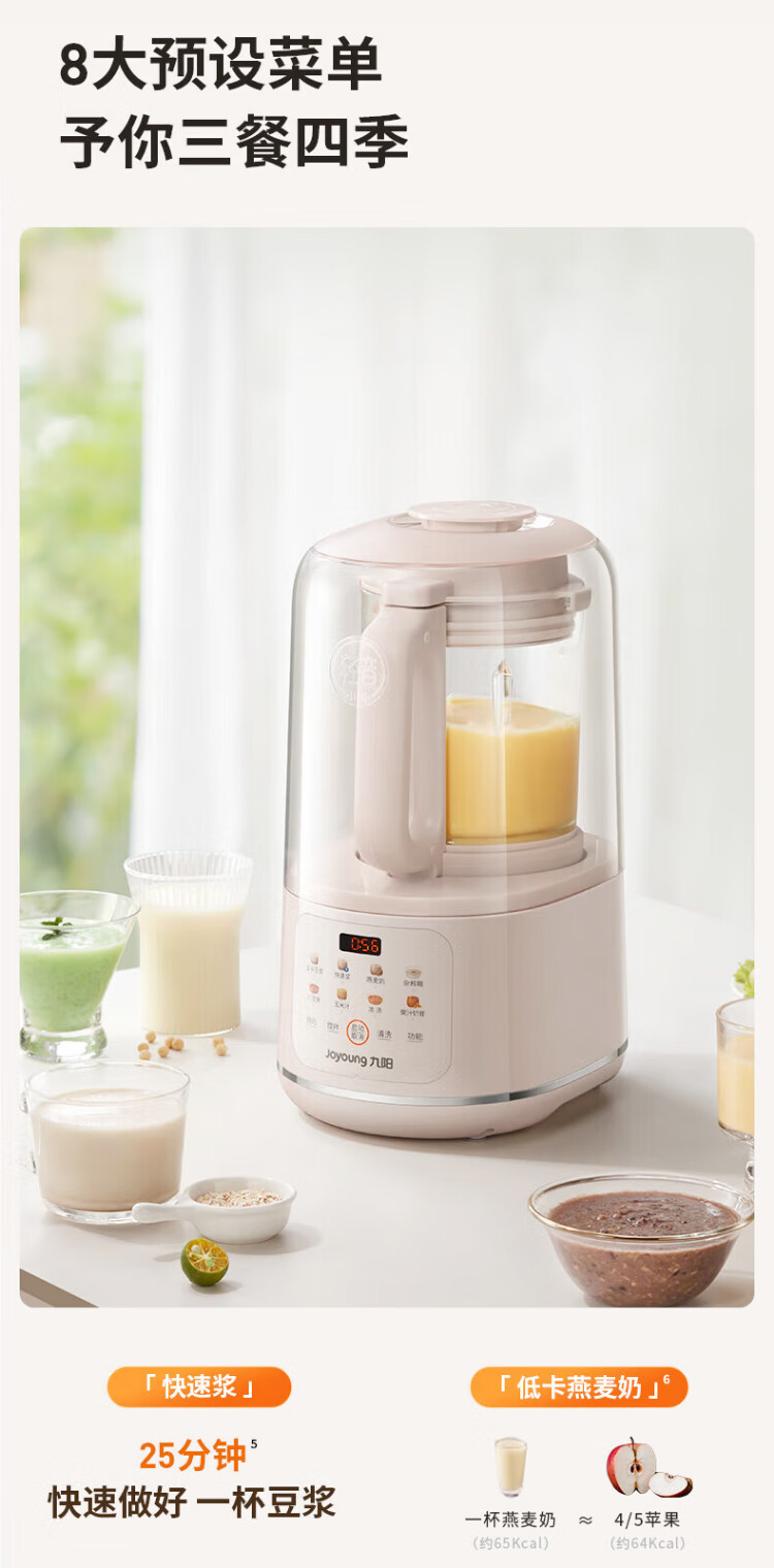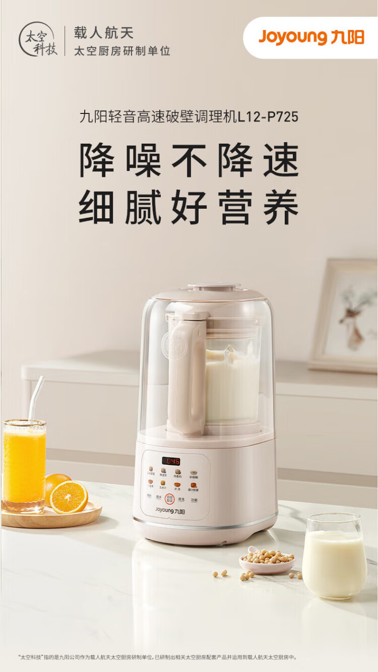 Joyoung wall breaker 2025 new soundproof cover, light noise reduction, household soymilk machine, fully automatic no-cooking, no-filtering, large-capacity breakfast machine, juicer, P725, fine grinding, fine cooking, touch color screen, compact and easy to store